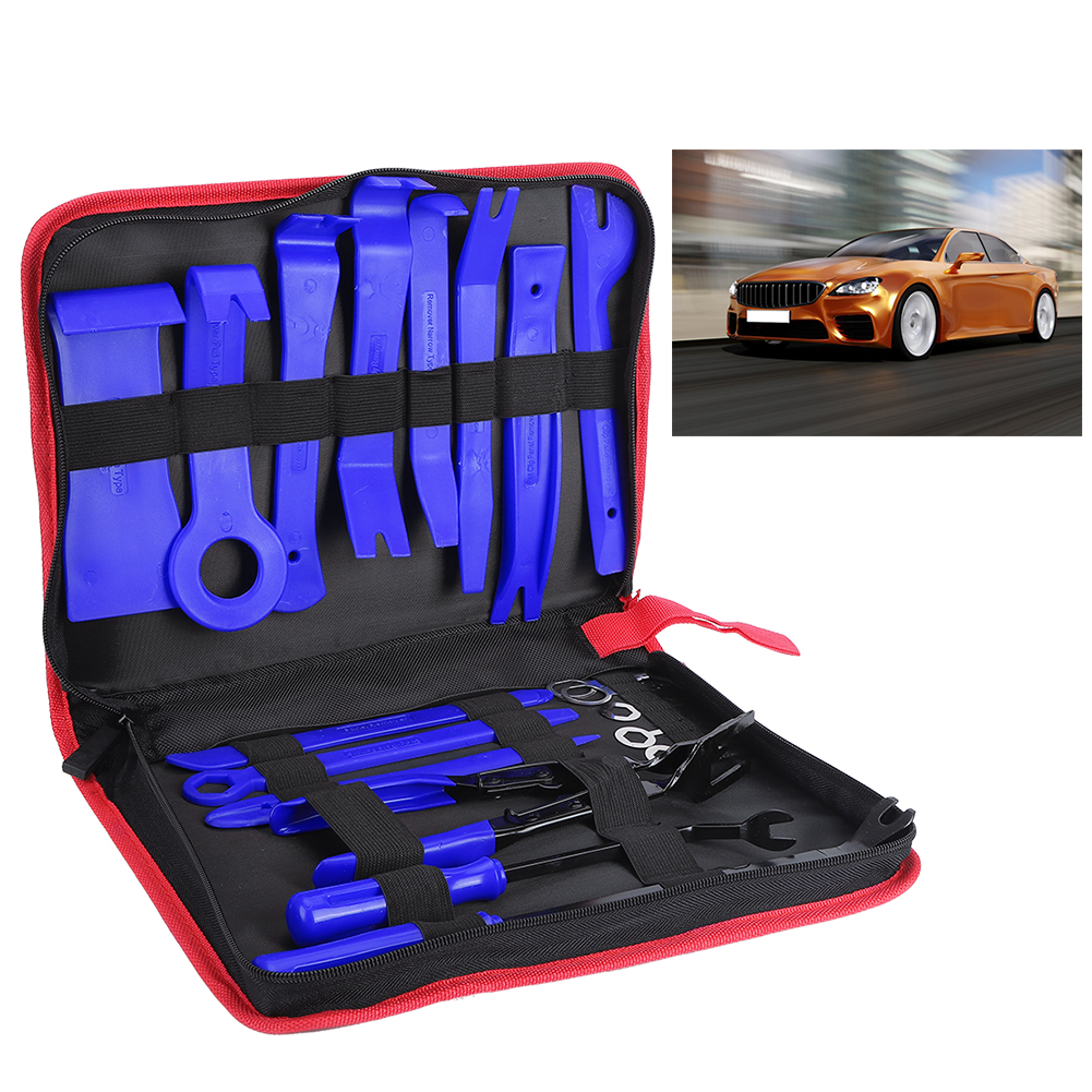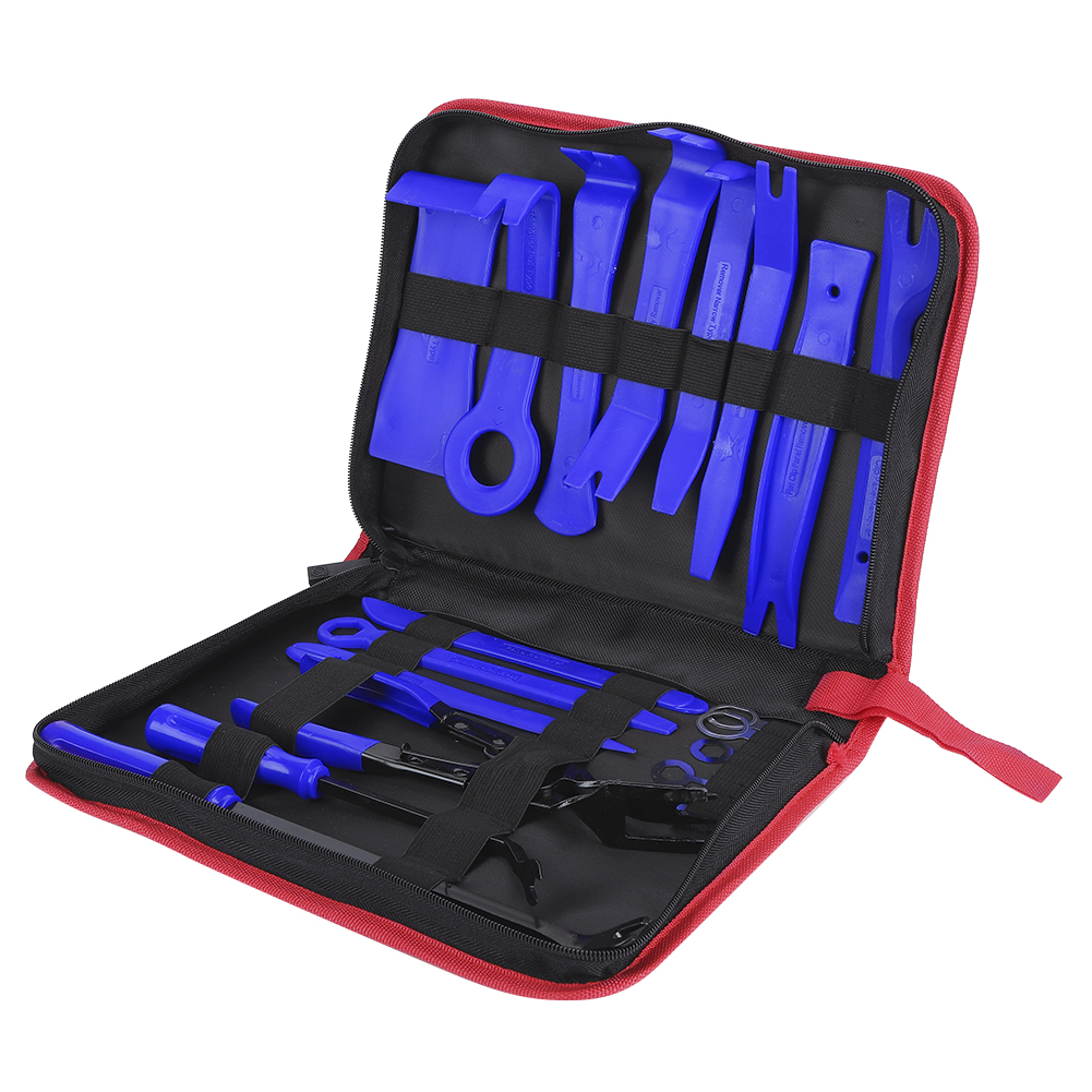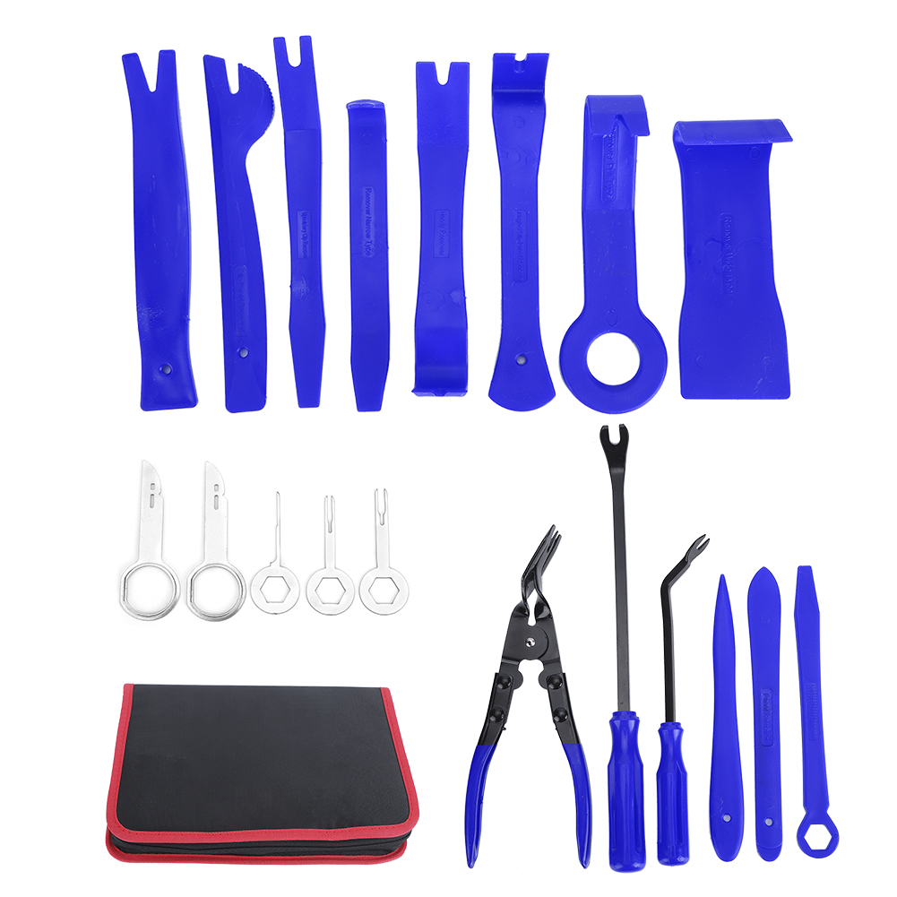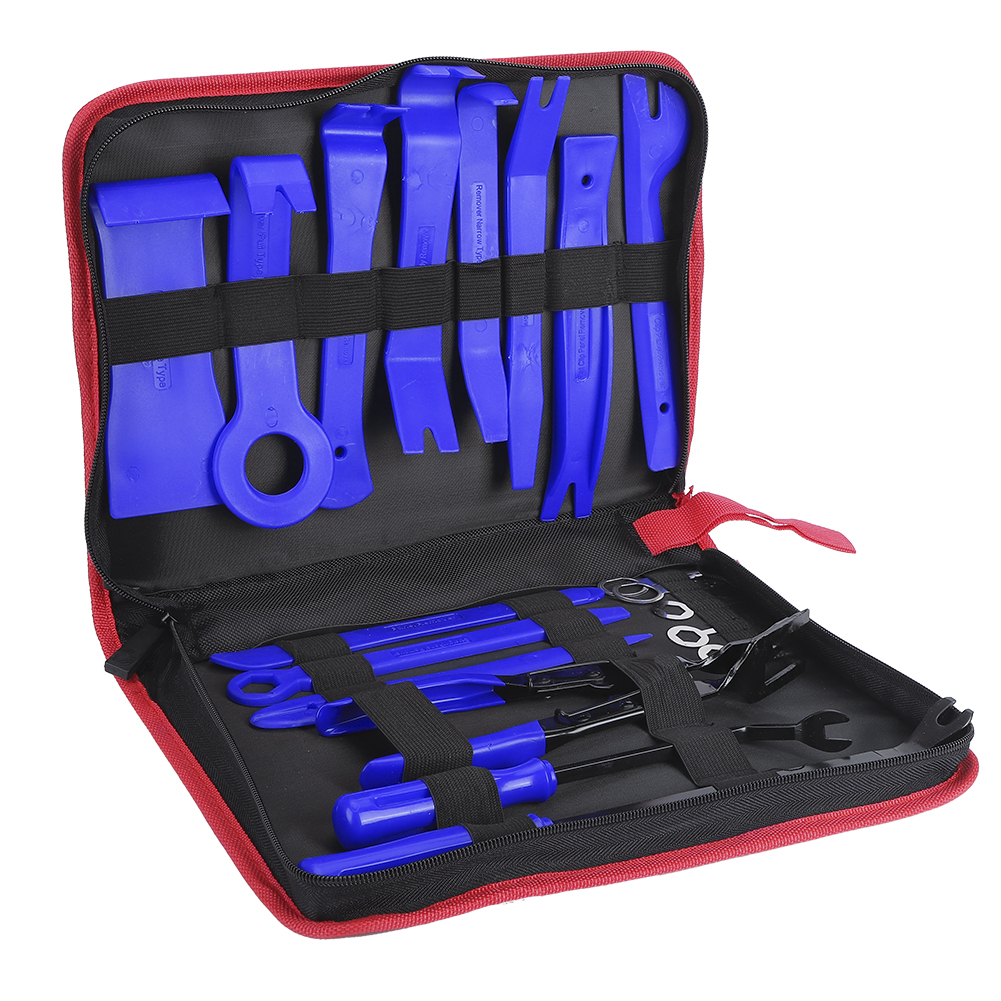 1、This removal tool features with non‑toxic, anti‑breakage, wear‑resistant, corrosion‑resistant, and durable. 2、With convenient storage and zipper bag. Every tool can be stored properly so that you don't misplace or lose them. 3、The special hand strap design lets your hands perform other tasks freely and improve its portability. 4、With an ergonomic design, it can easily be holden in hand to fit hard to reach spaces and effectively help to save effort when you remove and install the devices. Help you to handle various interior and exterior decorations easily and efficiently. 5、This multi‑functional car trim removal kit set is adapted to all types of car modifications. Perfect for dismantling of car audio / radio, door panel, dashboards, fixing clips, roof lights, windows, interior accessories, etc. 6、Constructed of durable and impact‑resistant material, with better performance and will not break like ABS.