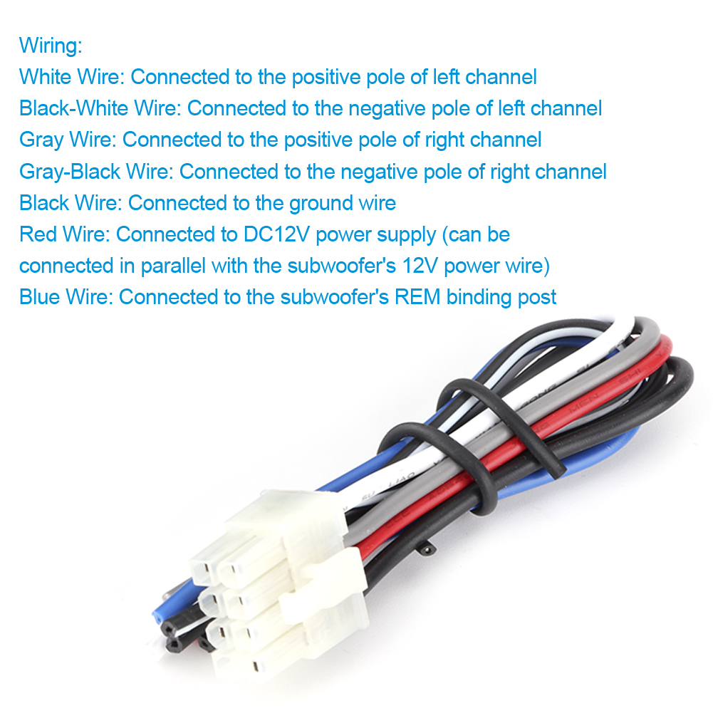 Red Wire: Connected to DC12V power supply (can be connected in parallel with the subwoofer's 12V power wire)