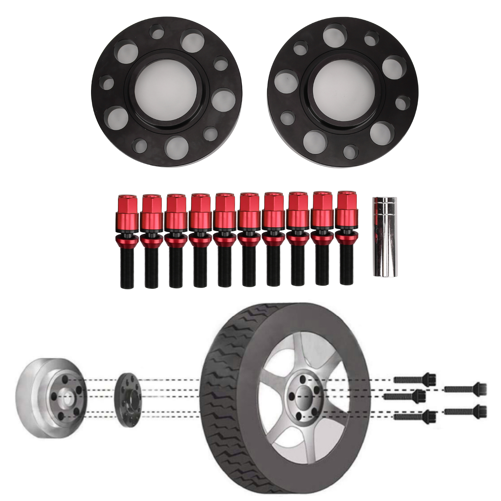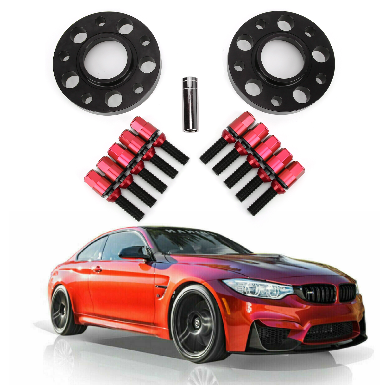 Car Hub Centric Wheel Spacers Kit Maintenance Modification Replacement for 1 Series F20/F21 2014‑2019Red