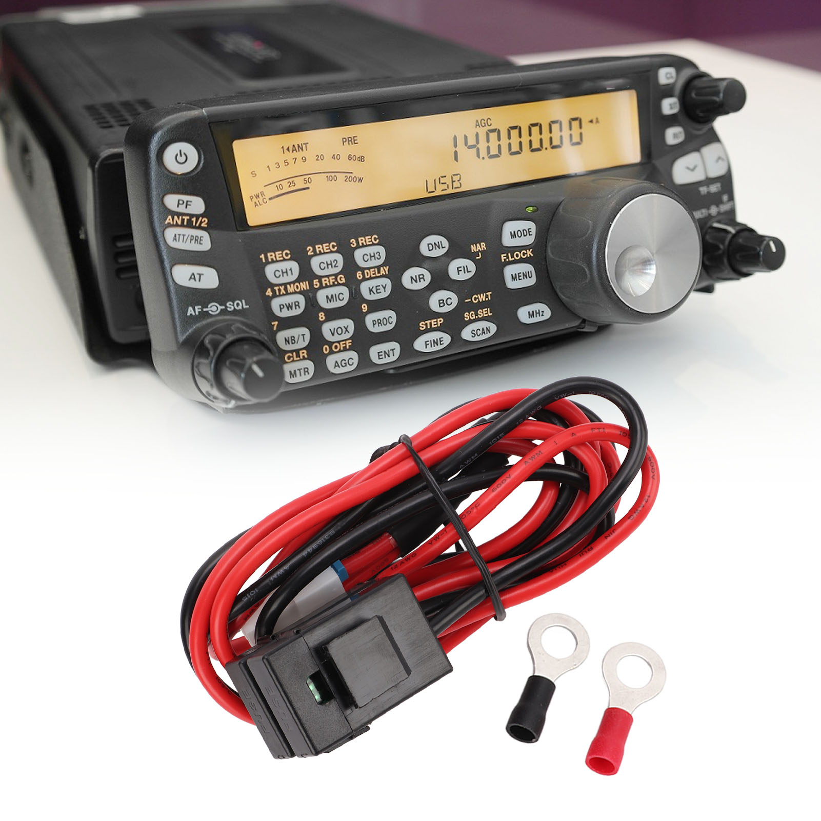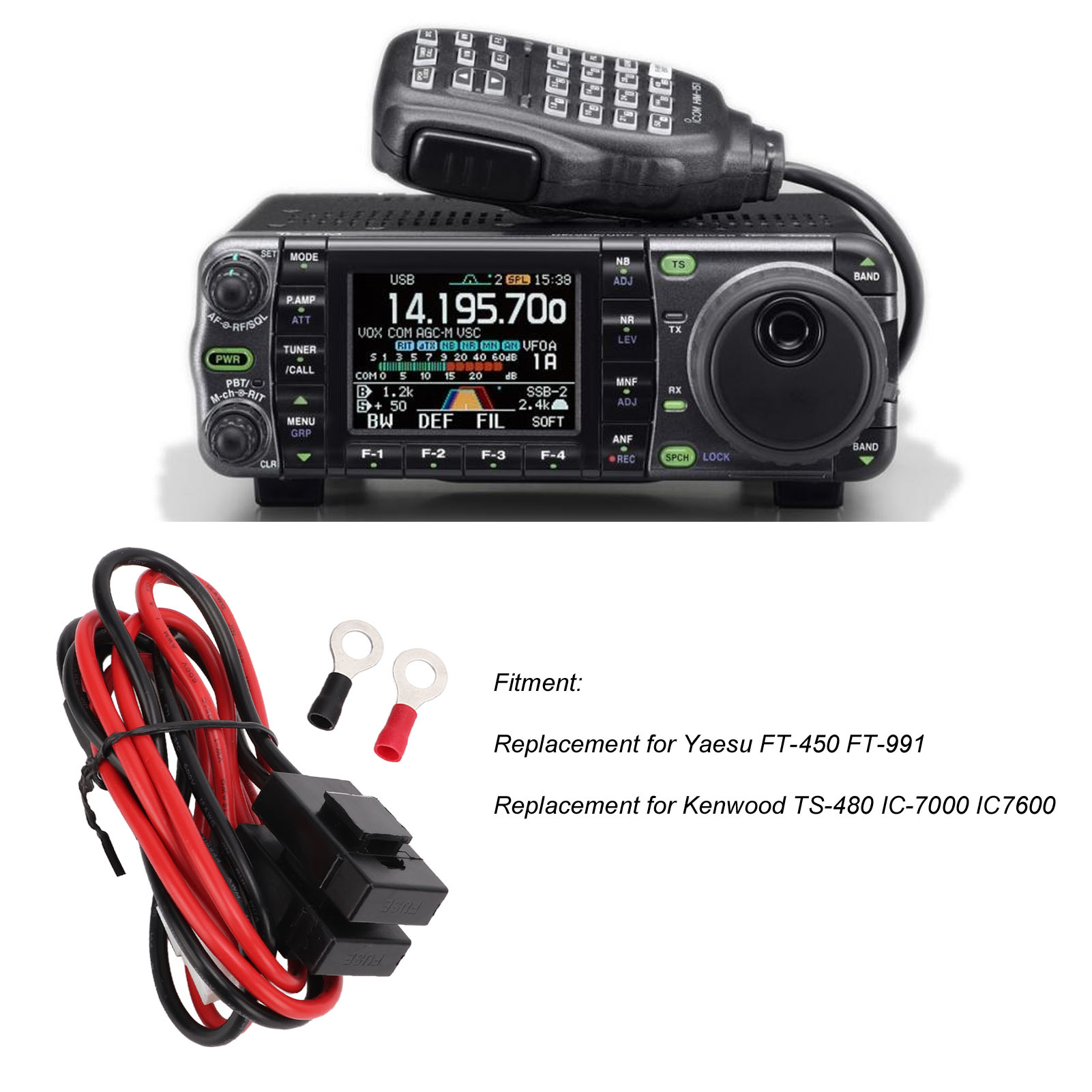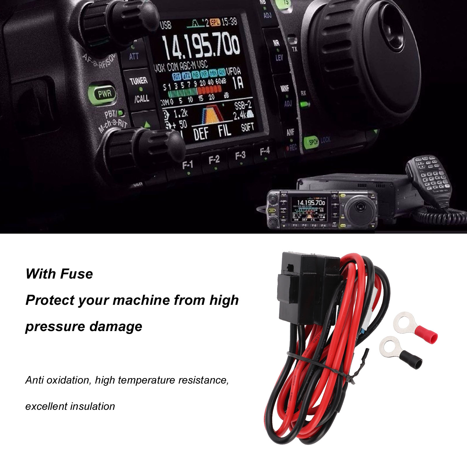 1、High Compatibility: The mobile radio power cable is a replacement for Yaesu FT‑450 FT‑991 and replacement for Kenwood TS‑480 IC‑7000 IC7600. 2、With Fuse: The mobile radio power cord is designed with a special fuse to protect your machine from high pressure damage, more reliable in use. 3、Excellent Performance: The transceiver power cable features stable performance, anti oxidation, high temperature resistance, excellent insulation, durable in use. 4、85cm Long: The transceiver power cord is approximate 85cm/33.5in long enough to meet your various demands without being constrained by distance any more. 5、Easy to Use: The mobile radio power cable is designed with simple and durable structure, convenient to use, just plug and play without breaking.