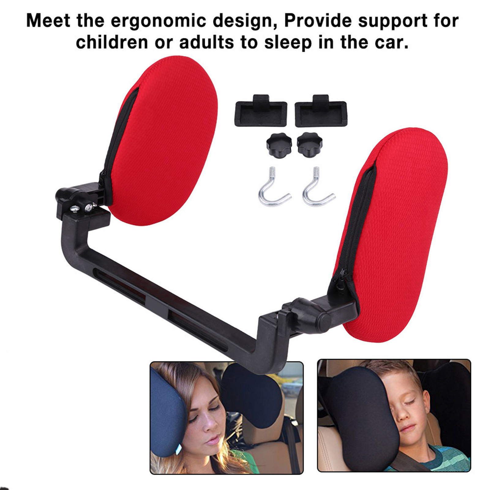 Car Seat Neck Resting Headrest Sleeping Pillow Cushion Head Support (Red)
