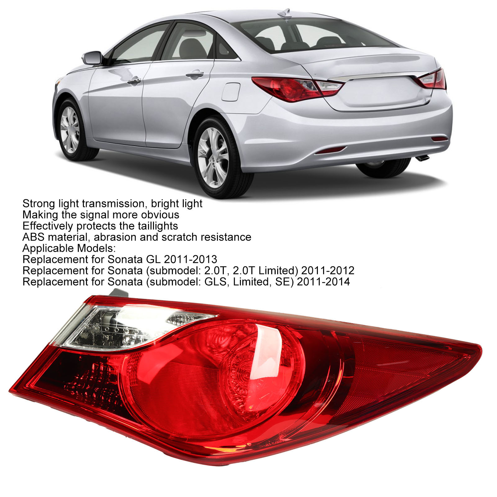 1、Fitment: Car tail light assembly is replacement for Sonata GL 2011‑2013, replacement for Sonata (submodel: 2.0T, 2.0T Limited) 2011‑2012, replacement for Sonata (submodel: GLS, Limited, SE) 2011‑2014. 2、Bright Light: The light can emit the light of the original bulb very well, with strong light transmission, making the signal more obvious. 3、Cool Style: This light housing not only effectively protects the taillights, but also serves as a cool decoration to make your car more unique. 4、Performance: ABS material, abrasion and scratch resistance, and can be used for a long time in the outdoor cross country. 5、Easy Install: Direct replacement, no programming required, the hole position is exactly the same as the original car installation, easy and convenient.