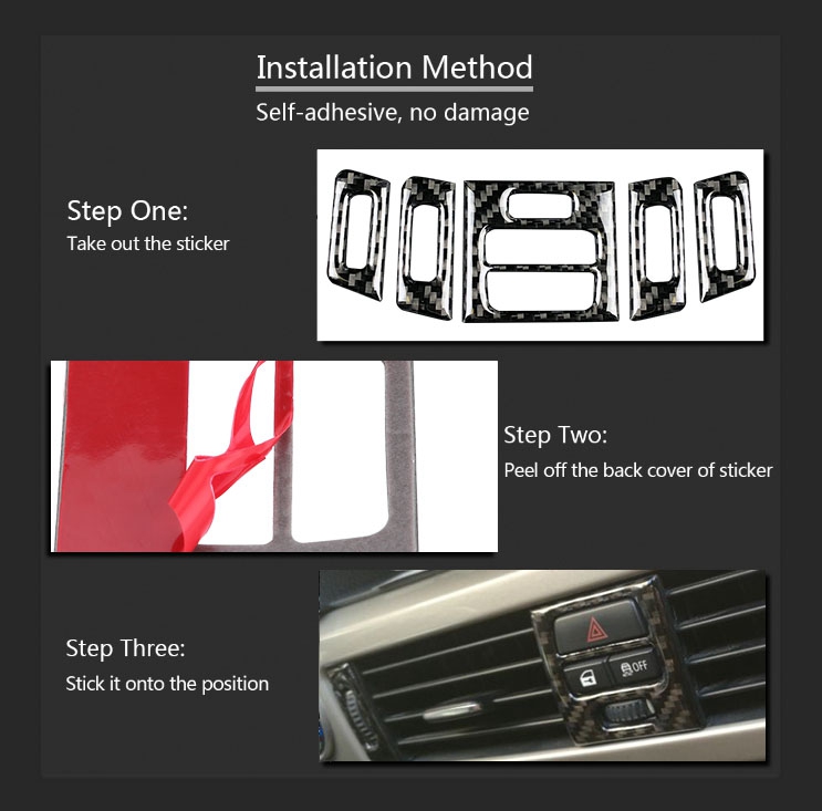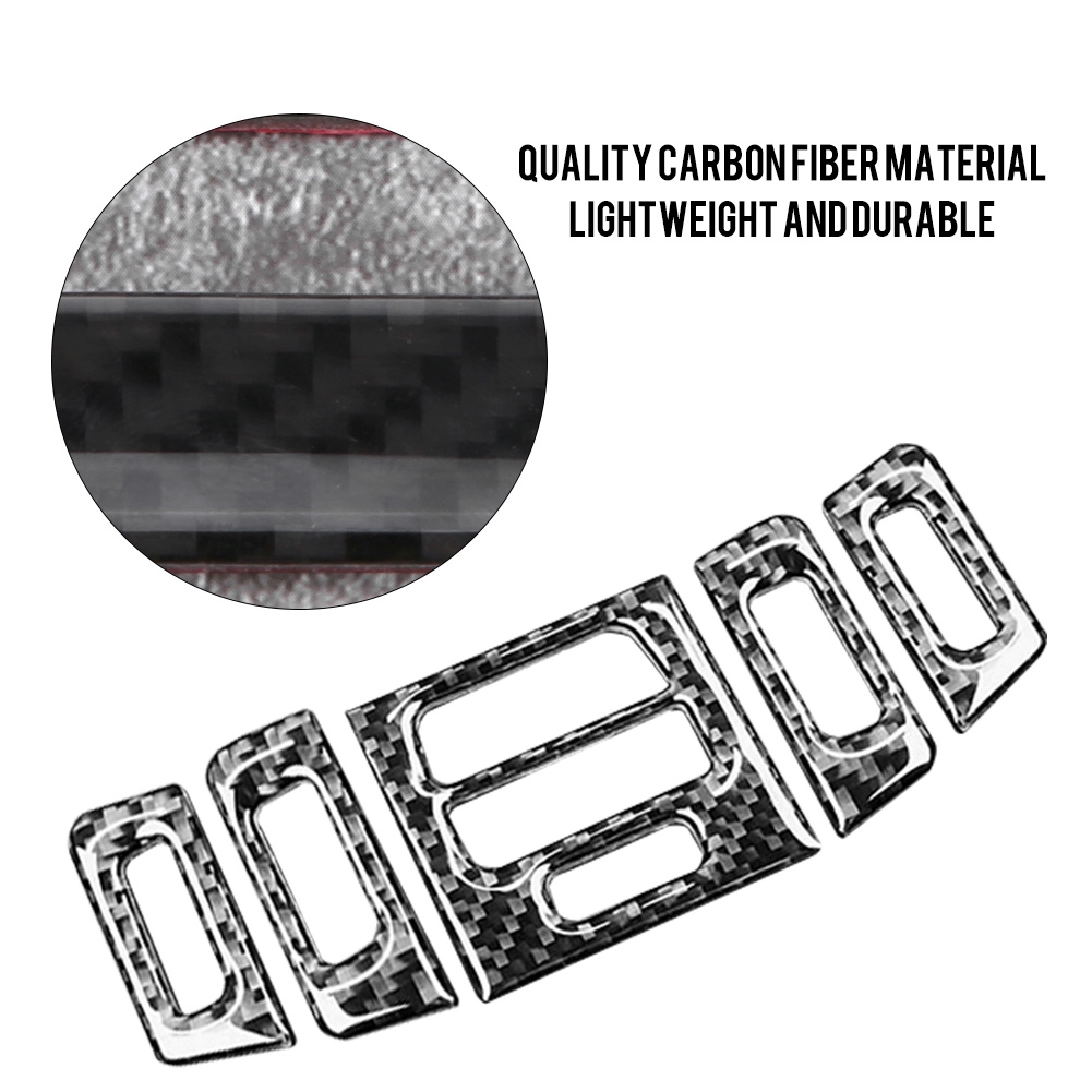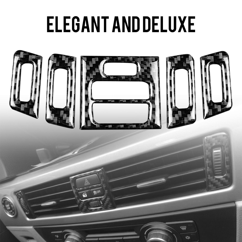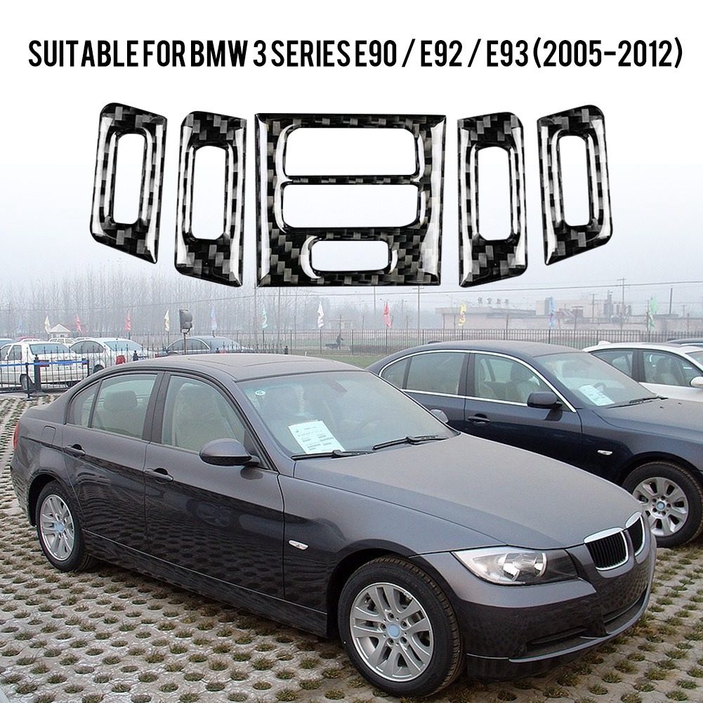 1、This item is made of quality carbon fiber, lightweight, anti-rust, colorfast and durable 2、Self adhesive design, easy to attach it to air conditioner outlet 3、Fine surface processing creates gloss appearance, adding deluxe and elegant sense to it 4、Can prevent the surface of car air conditioner from scratches, dust, etc 5、Nice car interior decorative accessory for BMW E90 / E92 / E93, this kit includes 5 cover trims, with hard and soft types for you to choose