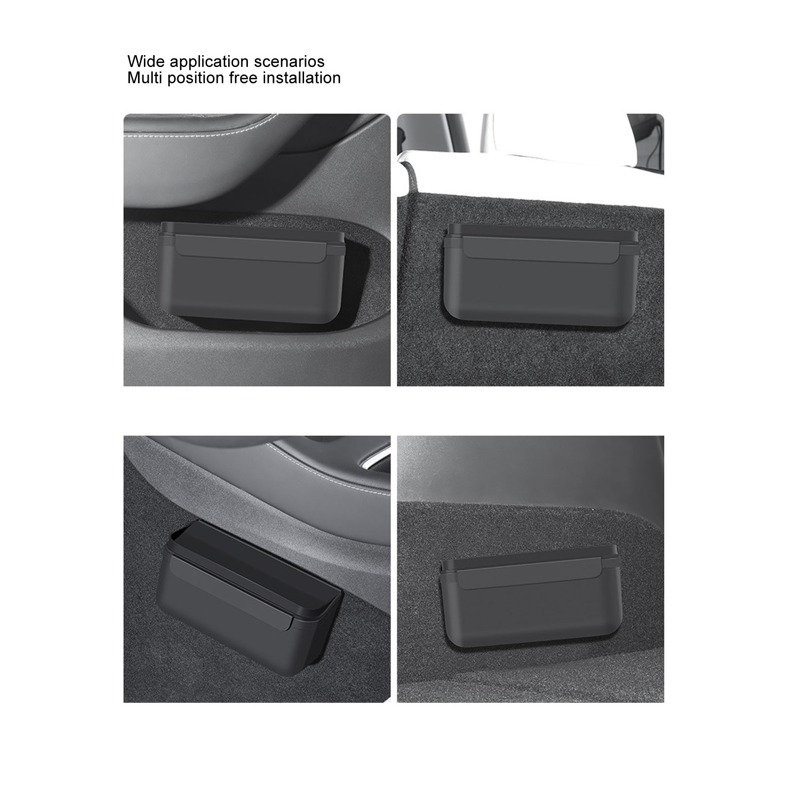 1、Vehicle Fitment: Center console side organizer is replacement for Tesla Model 3 Model Y, which is made according to the prototype of the car. 2、Expanding Space: Storage boxes can increase interior storage space, you can put sunglasses, cell phones, coins, cosmetics, cards and other small items. 3、Neat Storage: Storage holder can guarantee the neatness of the items in the car, convenient for you to take and store items at any time. 4、Multi Position Installation: The box can be installed in the door slots, under the side of the center console, on the seat backs and on the side of the trunk. 5、Easy Operation: The back of the box has hook and loop fasteners, you can stick it on the flocked surface of the car and without damage the car.