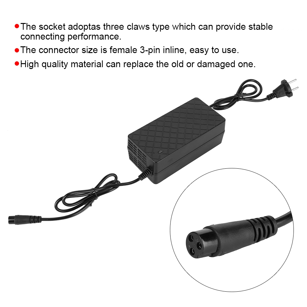 1、Fine workmanship can make sure the stability and durability of the product. 2、The socket adopts three claws type which can provide stable connecting performance. 3、The connector size is female 3-pin inline, easy to use. 4、High quality material can replace the old or damaged one. 5、This charger can fit for RAZOR E100 E200 E300 E125 E150 E500