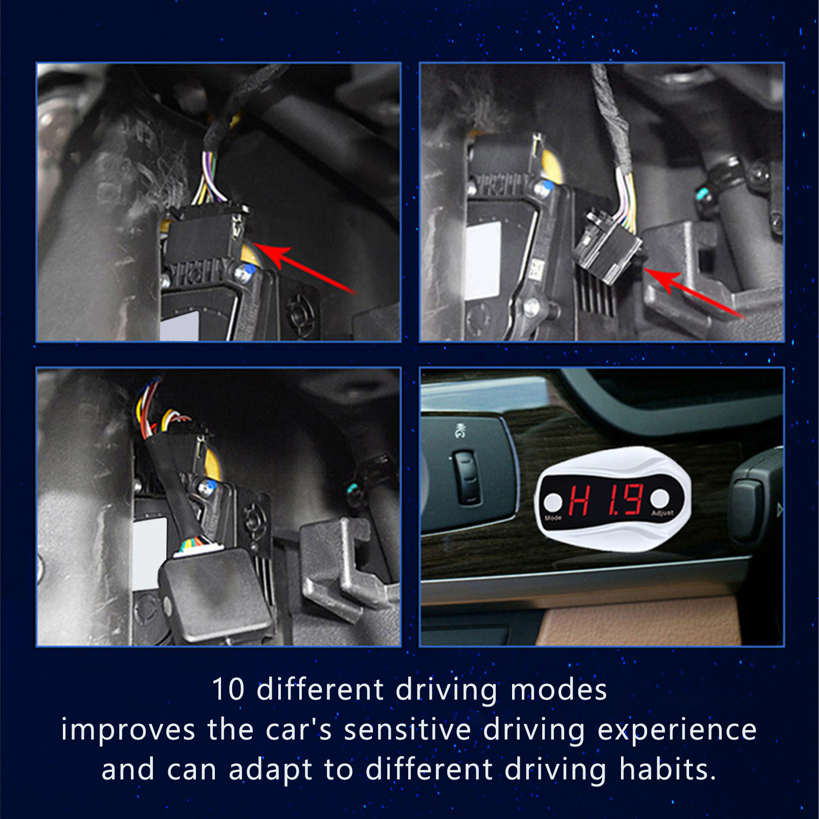 1、Fitment: Replacement for MAZDA 5(CW) 2011‑2021, replacement for MAZDA BT‑50(UP) 2011‑2021, replacement for MUSTANG 2011‑2021, replacement for MUSTANG 2011‑2021. 2、Multimode: The electronic throttle response controller contains 10 different driving modes, which improves the car's sensitive driving experience and can adapt to different driving habits. 3、LED Display: Electronic racing accelerator booster, display larger, ultra clear LED display, convenient and quick to read. You can also see the mode number and intensity level on the display. 4、Big Buttons: The electronic throttle response controller has two sensitive big buttons for easier operation. The two buttons can be operated in multiple modes, and you can use the buttons to easily adjust various modes. 5、Easy to Install: Install this accelerator when the car is powered off. According to the user manual or installation photos, plug and play, which is very convenient.