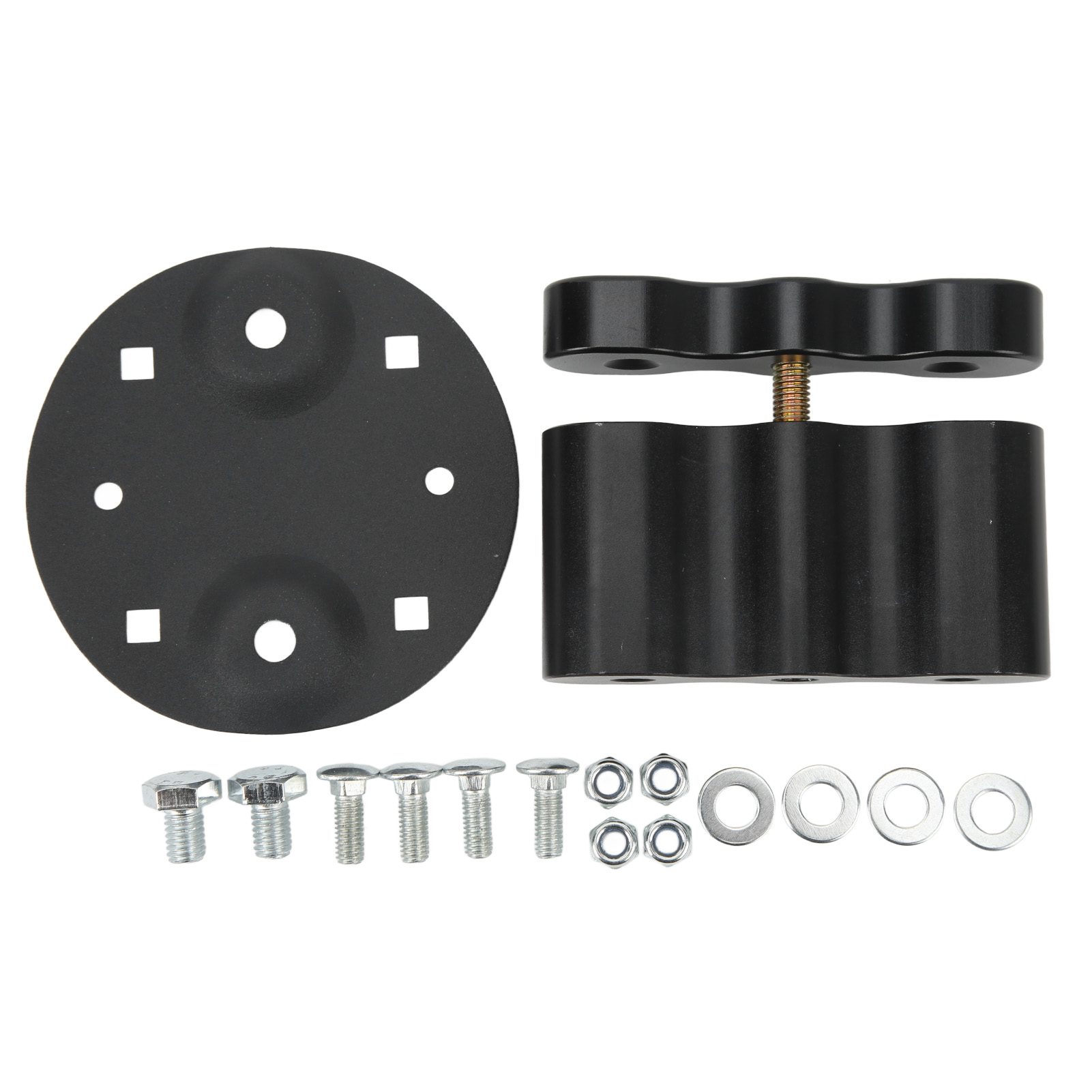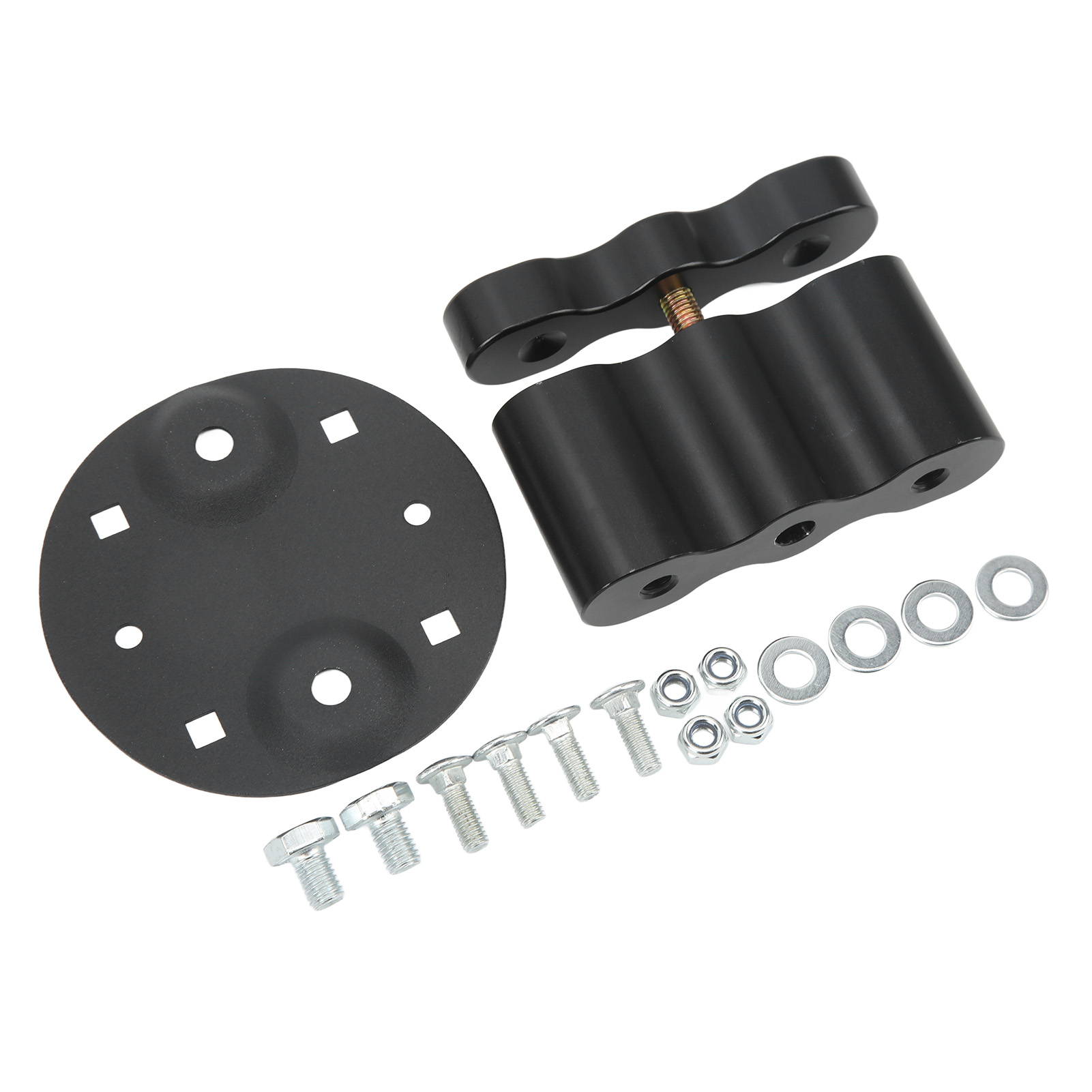 1、Function: The extension mount could lock your fuel pack or storage box, unique design provides extra tightening power for ultimate security. 2、Material: Made of premium aluminum alloy with a black coating for added strength and fastness, you can lock your gasoline pack securely to the mounting surface. 3、Fine Workmanship: Professional manufactured, exquisite workmanship with unique design, ensure stable performance and high reliability. 4、Complete Accessories: Packaging including brackets, mats, screws, nuts, gaskets, complete accessories to make your installation more convenient. 5、Easy to Install: Use with included base plate or remove plate to attach mount direct by bolting up through the bottom or down through the top.