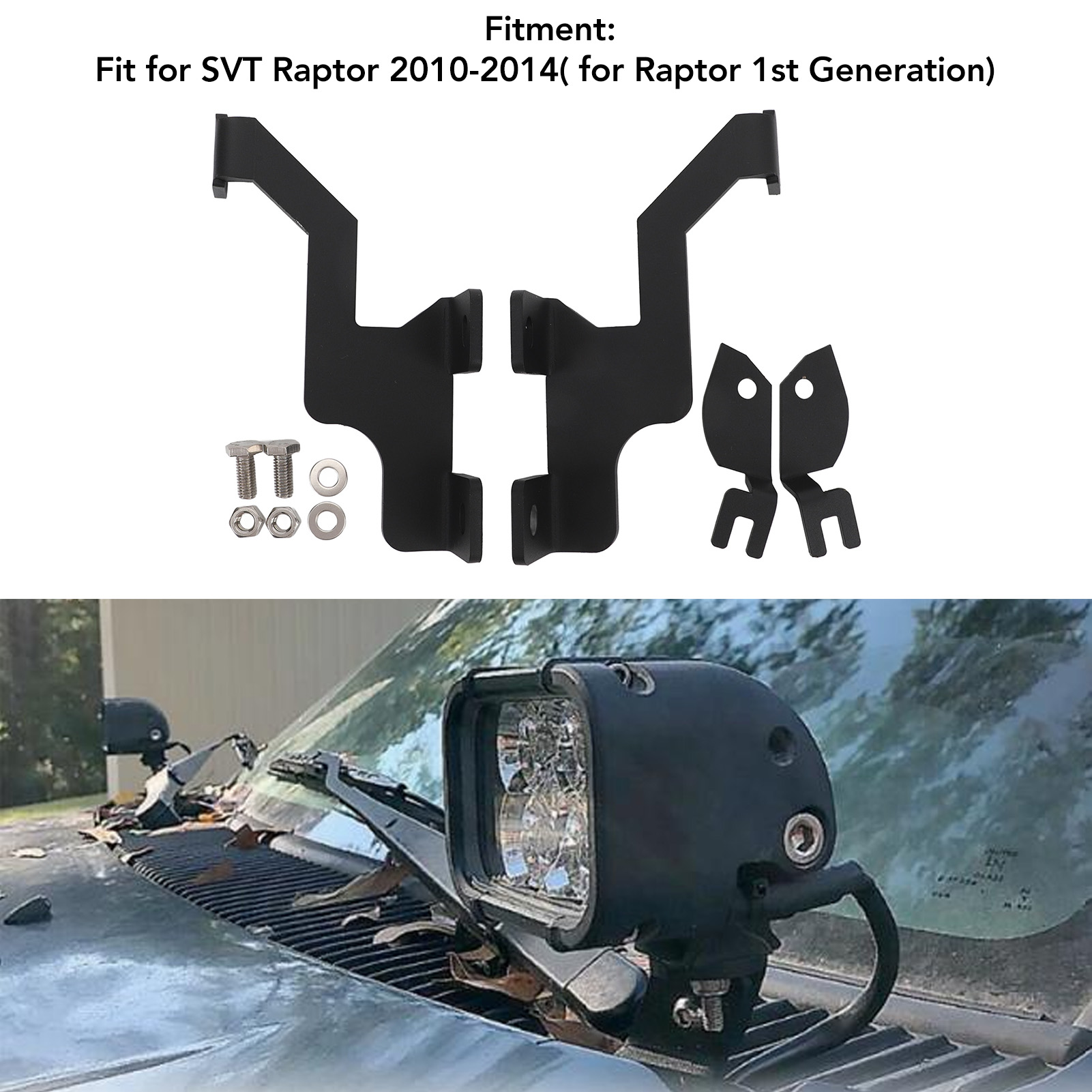 Hood LED Light Mount Brackets 612590737497 Left Right Side Pillar Pod Mount Brackets for SVT Raptor 2010‑2014