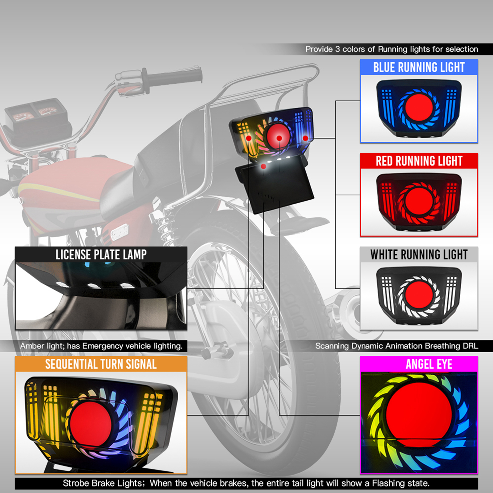 1、The motorcycle LED tail light is composed of a premium ABS plastic shell and PC high-definition lens, ensuring durability and clear visibility. 2、The bracket comes in two materials - ABS plastic and metal iron, providing options to suit different preferences and needs. 3、This tail light is not only replacement for Honda CG125 but also replacement for Honda CG, CD, CT series, and PH TMX125/155. With a slight modification to the mudguard, it can be easily installed on these models.