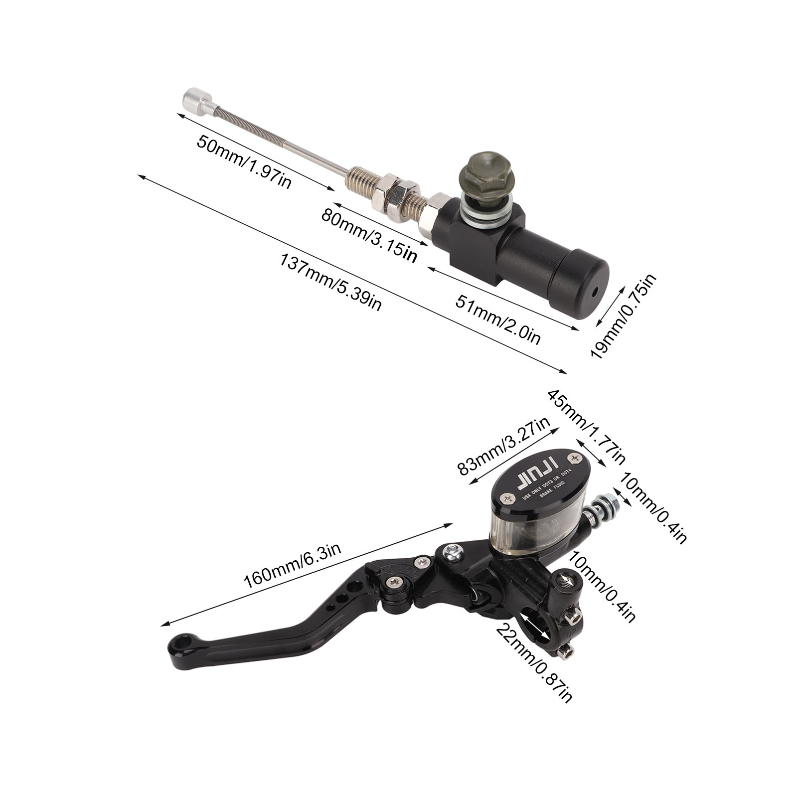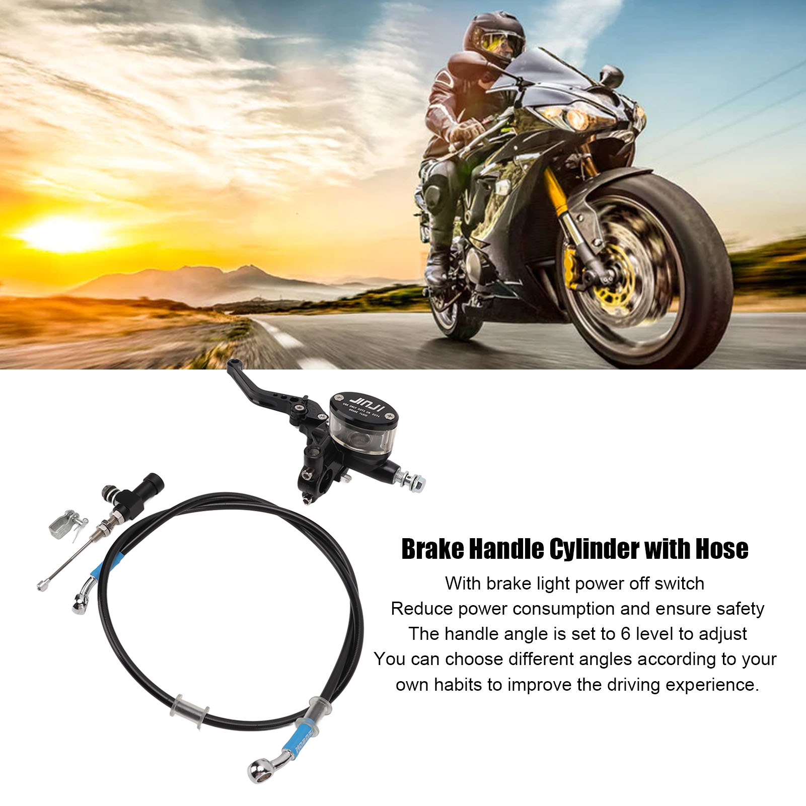 1、Universal Accessory: Heavy duty brake master cylinder with hose is extensively suitable for all models motorcycles with a handlebar diameter of about 22mm. 2、Premium Aluminum Alloy: Made of aluminum alloy material with low density, high strength and strong durability, is not easy to break, and can be used for a long time. 3、PC Plastic Oiler: High temperature resistance, UV resistance, not easy to age under long‑term sun exposure, tasteless and odorless, harmless to human body. 4、Secure Riding: The brake handle cylinder with hose comes with a brake light power off switch to reduce power consumption and ensure safety at the same time. 5、Humanized Design: The handle angle is set to 6 level to adjust, and you can choose different angles according to your own habits to improve the driving experience.