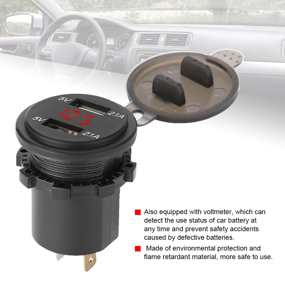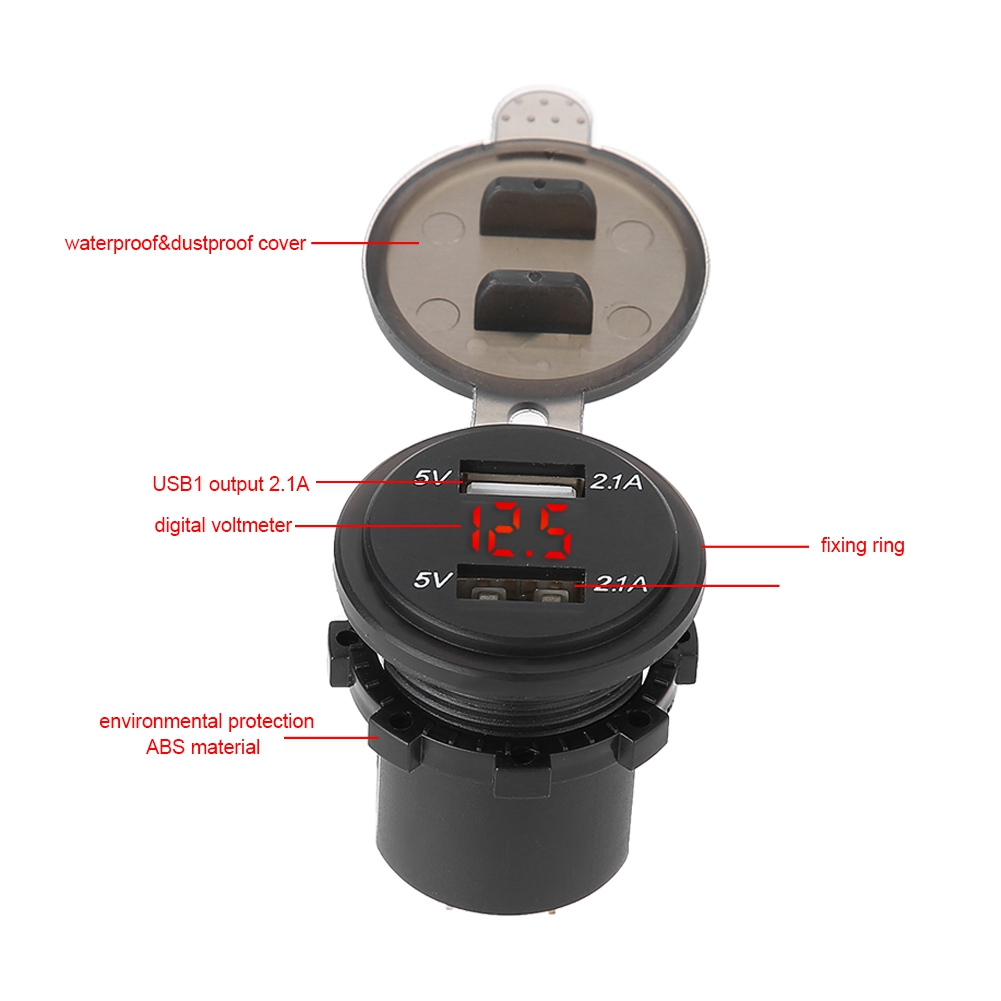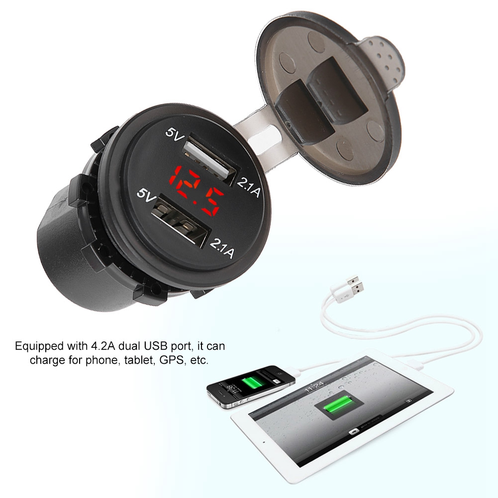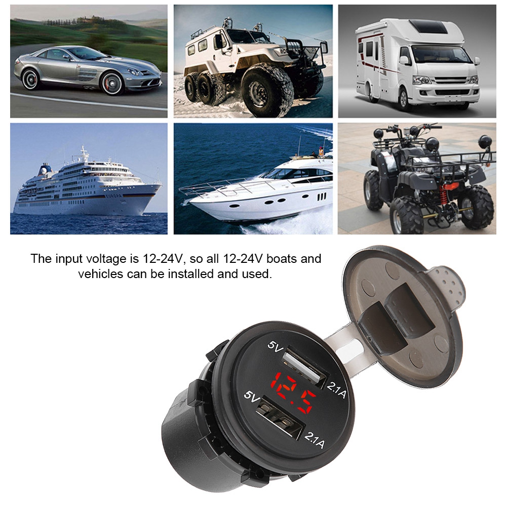 1、Made of environmental protection and flame retardant material, more safe to use. 2、The input voltage is 12-24V, so all 12-24V boats and vehicles can be installed and used. 3、Equipped with 4.2A dual USB port, it can charge for phone, tablet, GPS, etc. 4、Also equipped with voltmeter, which can detect the use status of car battery at any time and prevent safety accidents caused by defective batteries. 5、With good sealing ability, it is waterproof and dustproof.