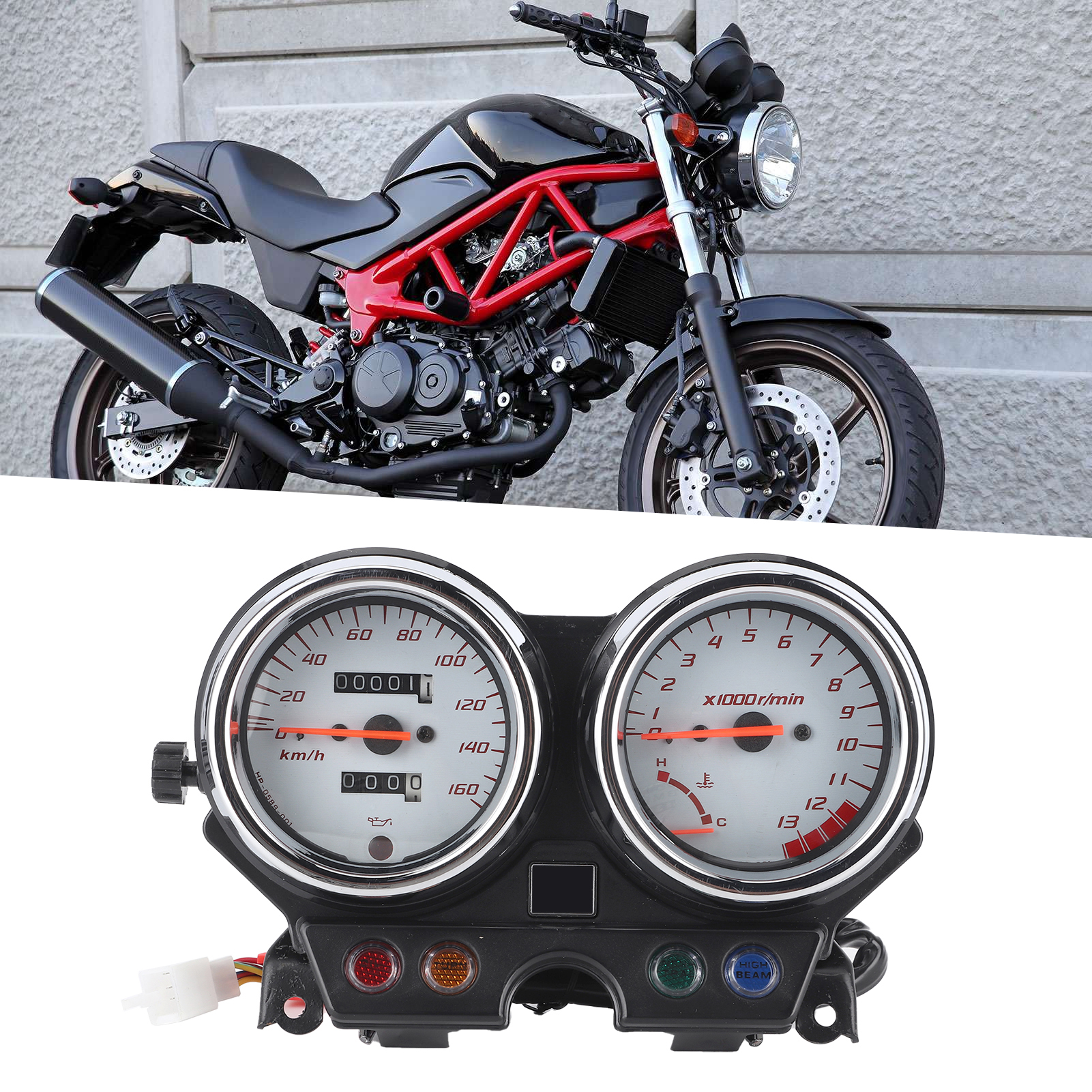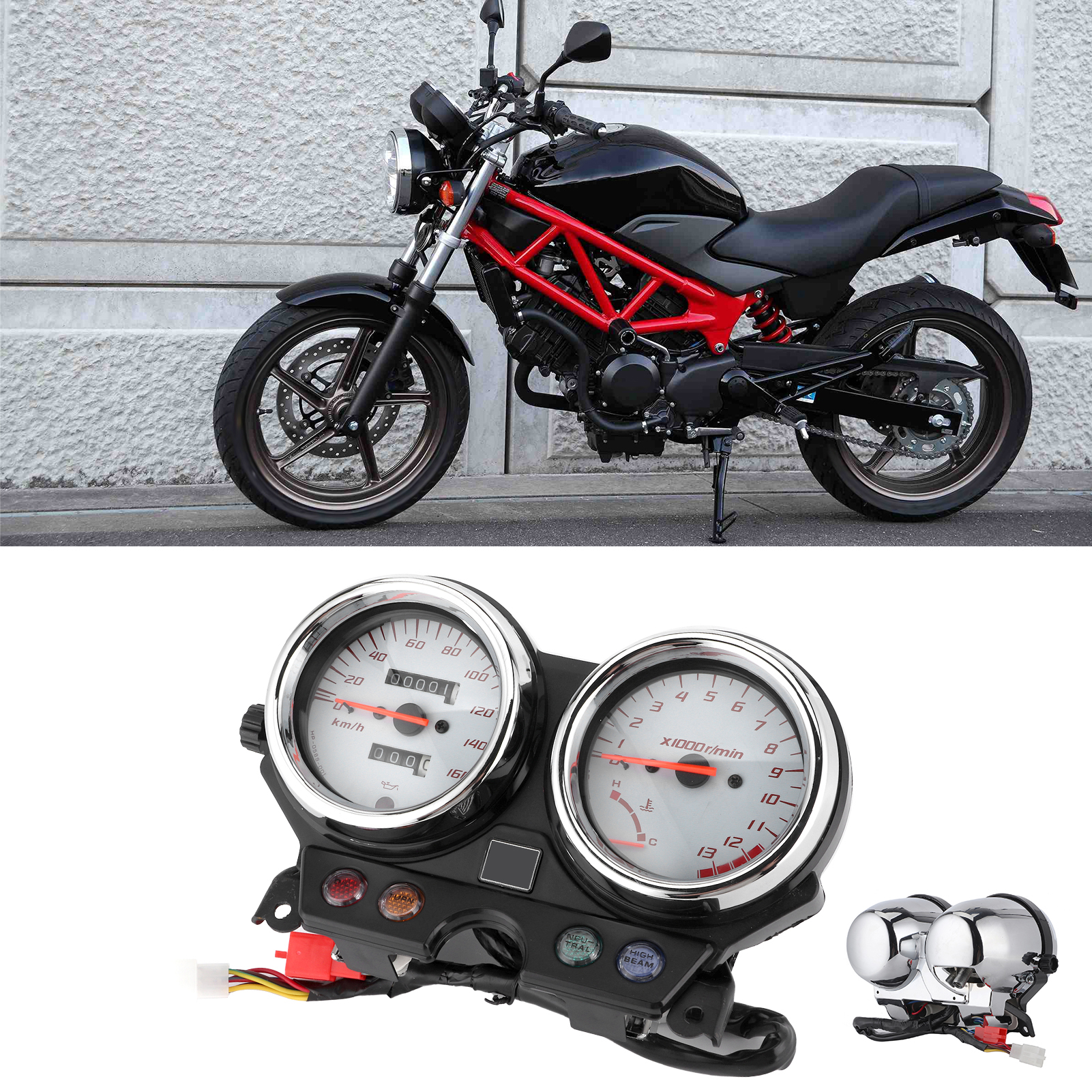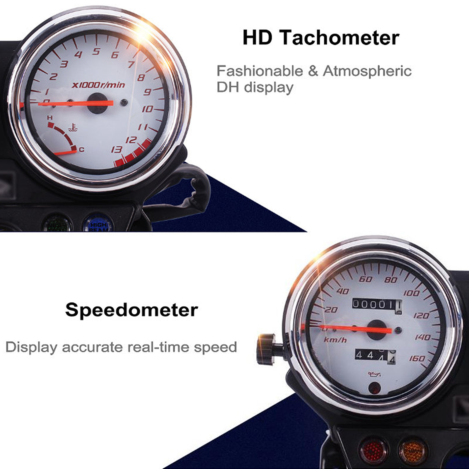 1、Fit for HONDA VTR250 VTR 250 2004 2005 2006 2007. You can choose this odometer according to your own motocycle model. After many inspections before leaving the factory, the quality is guaranteed. So you can use this odometer with confidence. 2、Very suitable to replace the damaged original motorcycle speedometers with cracks and scratches, or those motorcycle speedometers which does not work. You can repair and refurbish your motorcycle with this speedometer. It also has a sturdy shell, and you don't have to worry about the durability of it. 3、Never installed, high quality, easy to install, thick and durable. It can measure and display the instantaneous speed of the motorcycle. So you can check your driving speed at any time. 4、The wire plug is directly connected to the original plug of the motorcycle, and the wiring is matched with the original motorbike. The plug adopts a buckle design, and there will be no disconnection or power failure even in the bumpy road section when you use this speedmeter. 5、Equipped with odometer (maximum 999999KM) / meter (can be manually adjusted to 0) / speedometer (maximum 160Km/h) / tachometer (maximum 13x1000R/min) / oil and water temperature alarm / fog light prompt / turn signal indicator light / backlight, and other original motorbike functions.