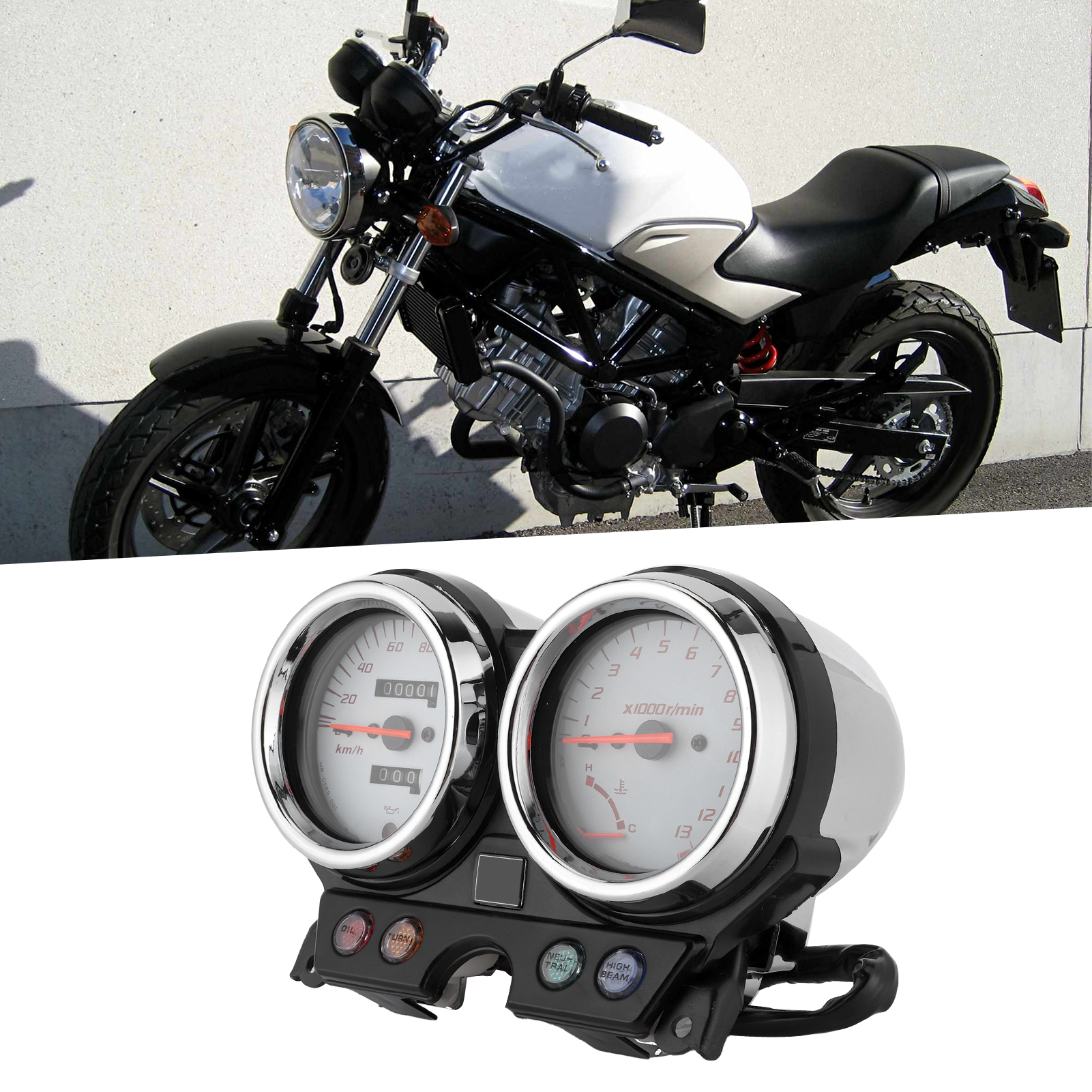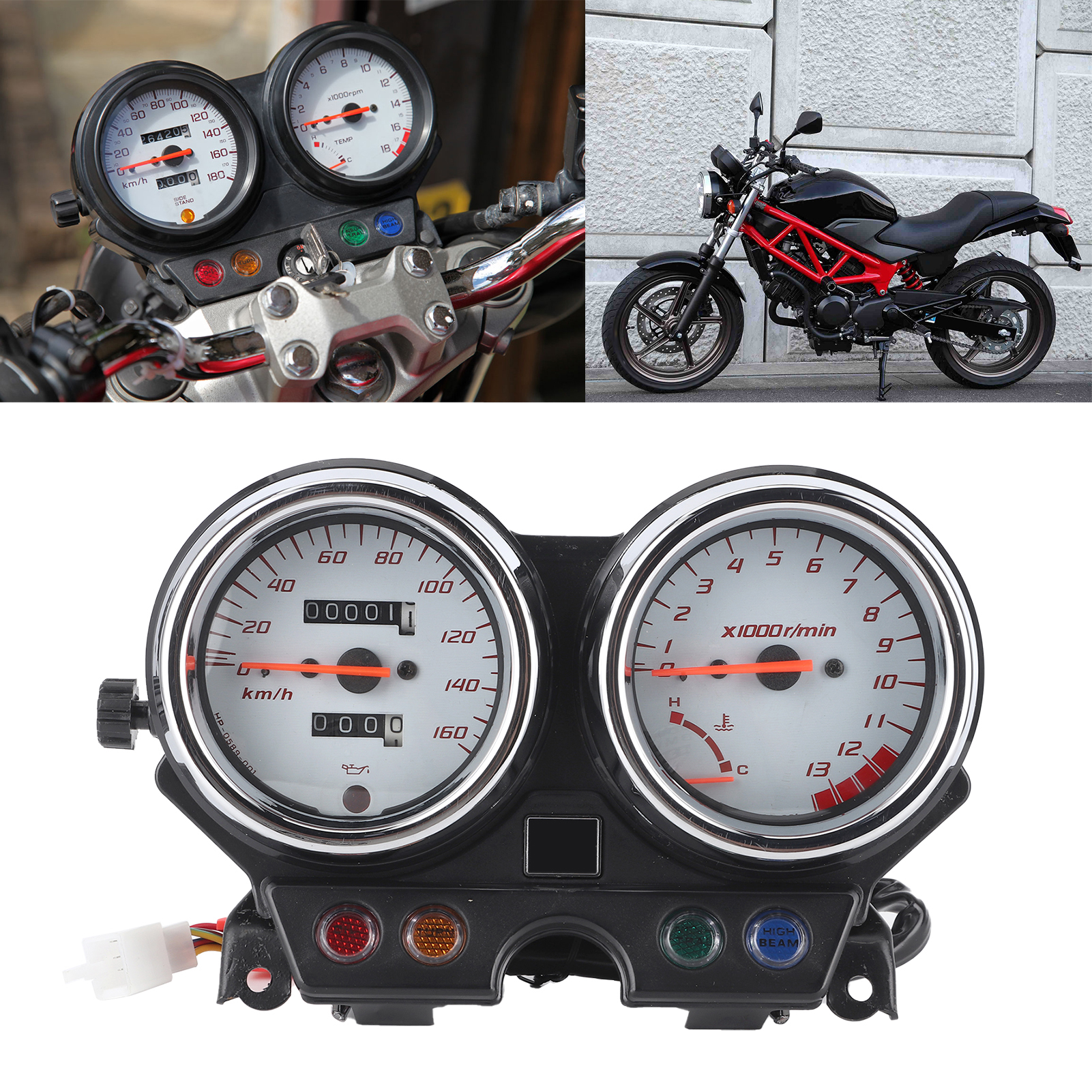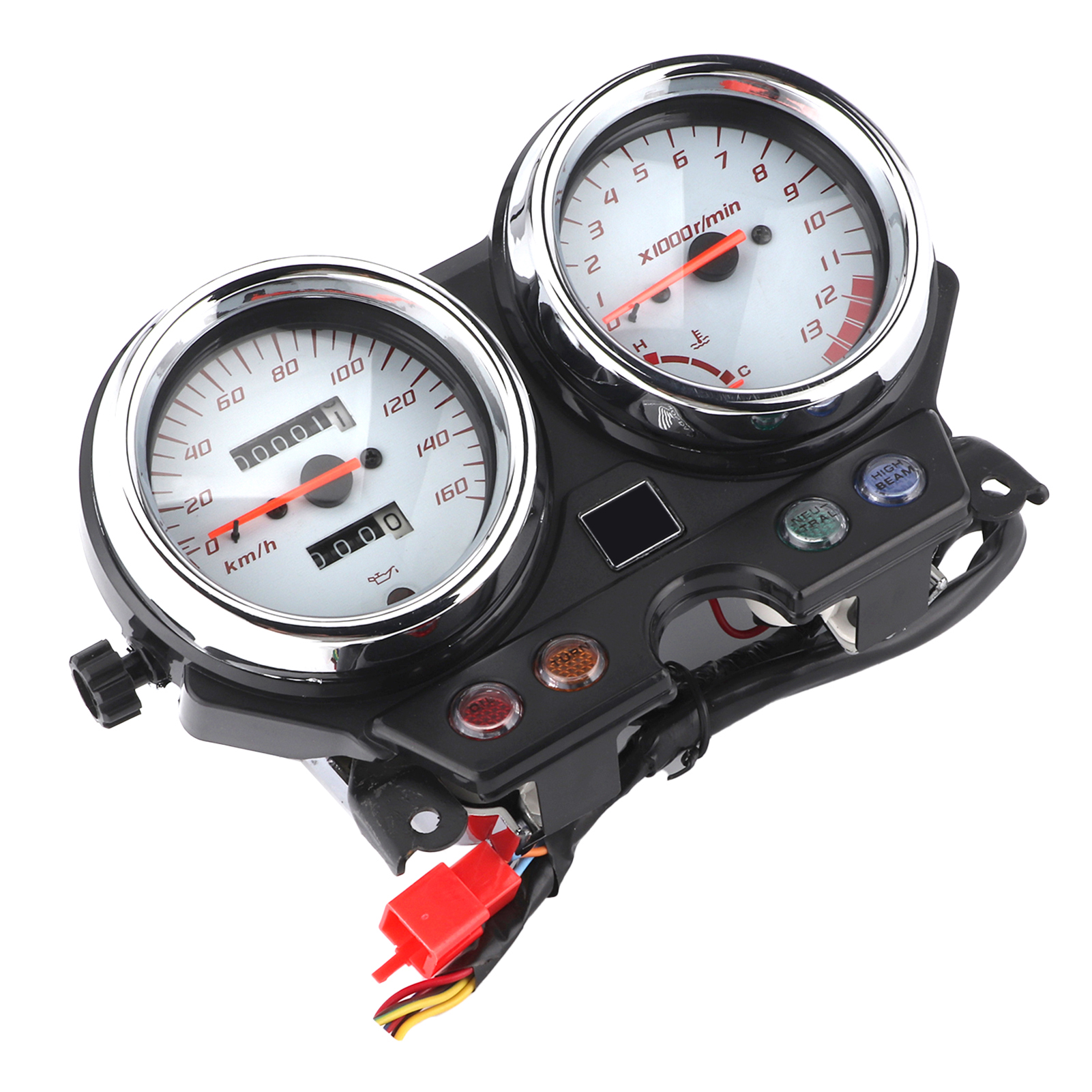 1、Fit for HONDA VTR250 VTR 250 2004 2005 2006 2007. You can choose this odometer according to your own motocycle model. After many inspections before leaving the factory, the quality is guaranteed. So you can use this odometer with confidence. 2、Very suitable to replace the damaged original motorcycle speedometers with cracks and scratches, or those motorcycle speedometers which does not work. You can repair and refurbish your motorcycle with this speedometer. It also has a sturdy shell, and you don't have to worry about the durability of it. 3、Never installed, high quality, easy to install, thick and durable. It can measure and display the instantaneous speed of the motorcycle. So you can check your driving speed at any time. 4、The wire plug is directly connected to the original plug of the motorcycle, and the wiring is matched with the original motorbike. The plug adopts a buckle design, and there will be no disconnection or power failure even in the bumpy road section when you use this speedmeter. 5、Equipped with odometer (maximum 999999KM) / meter (can be manually adjusted to 0) / speedometer (maximum 160Km/h) / tachometer (maximum 13x1000R/min) / oil and water temperature alarm / fog light prompt / turn signal indicator light / backlight, and other original motorbike functions.