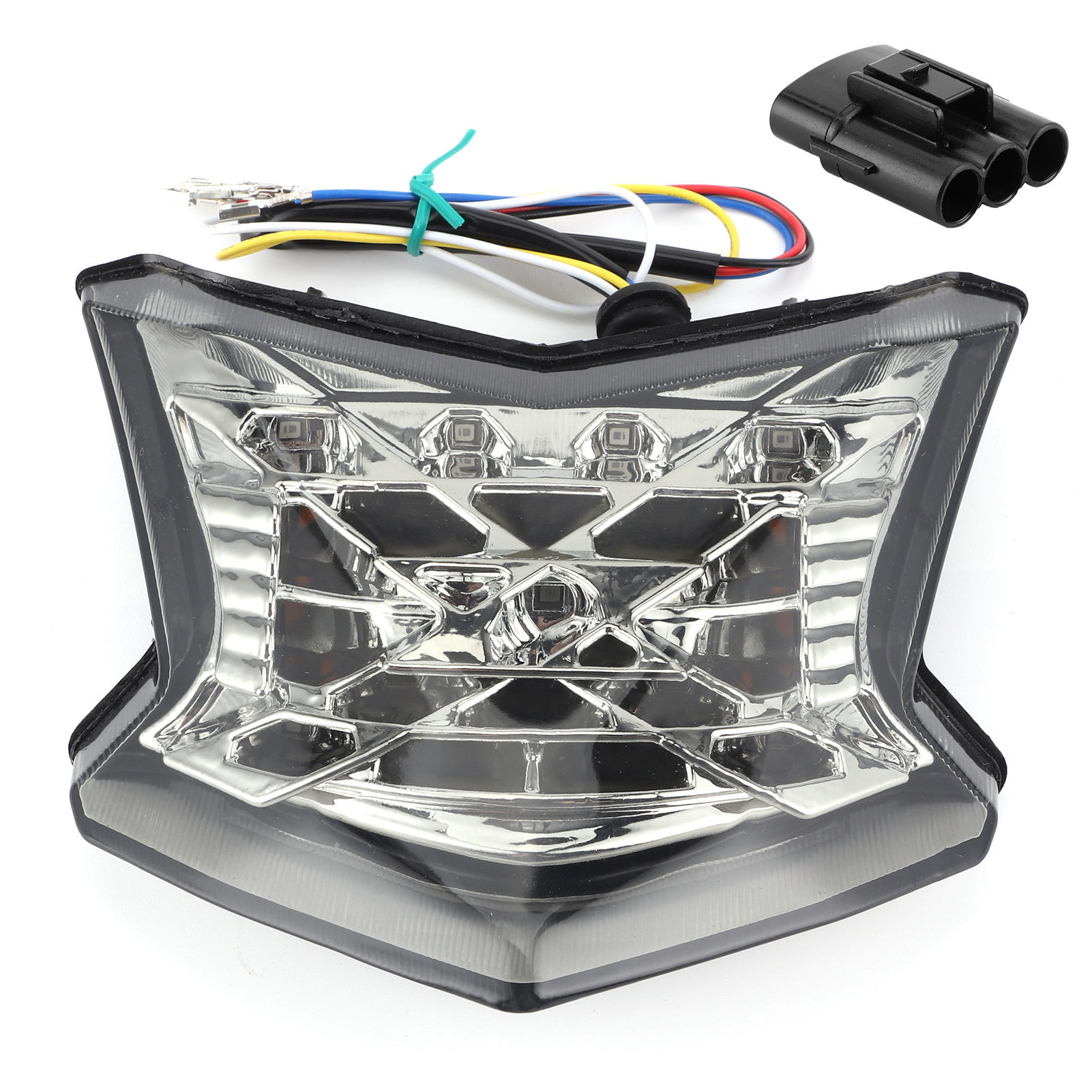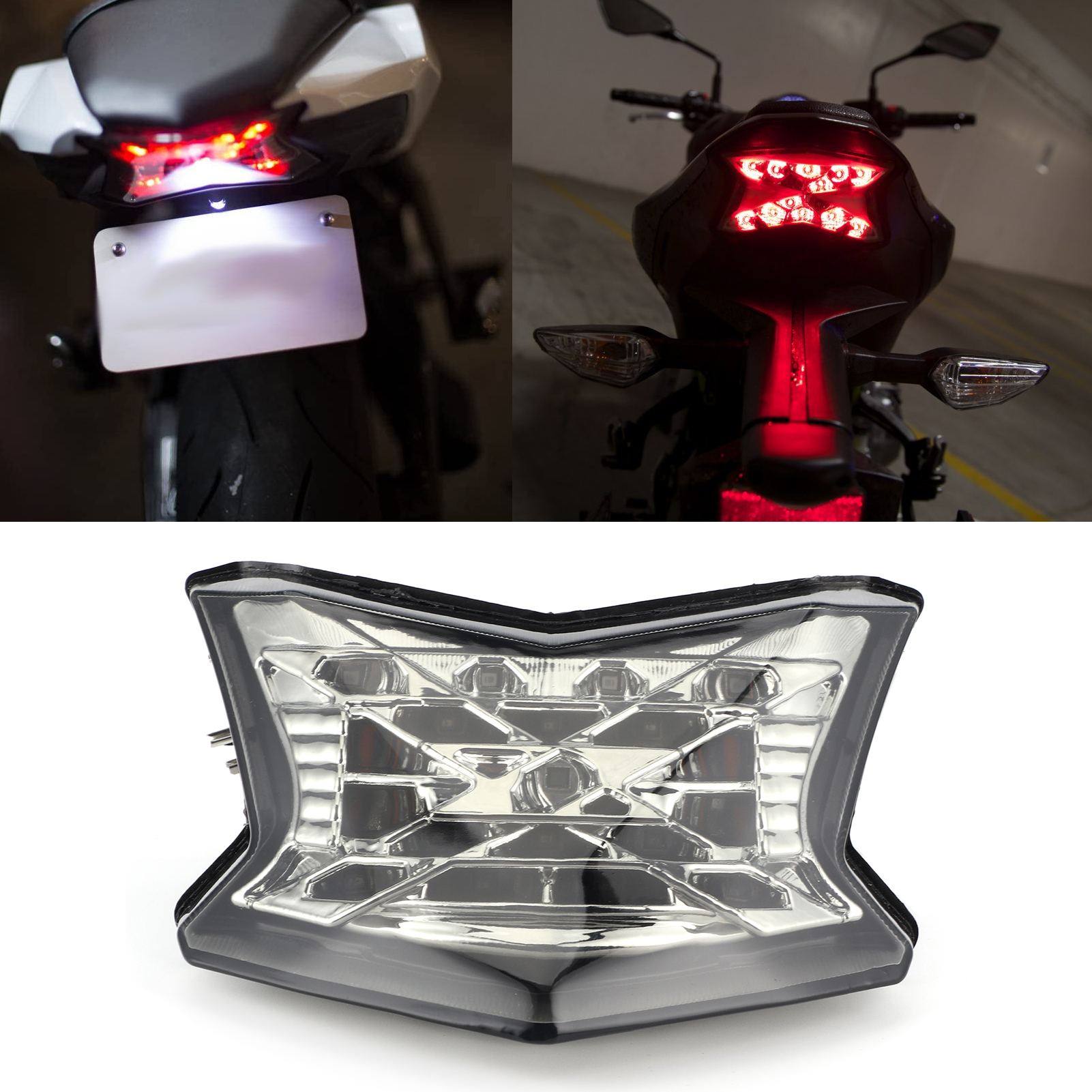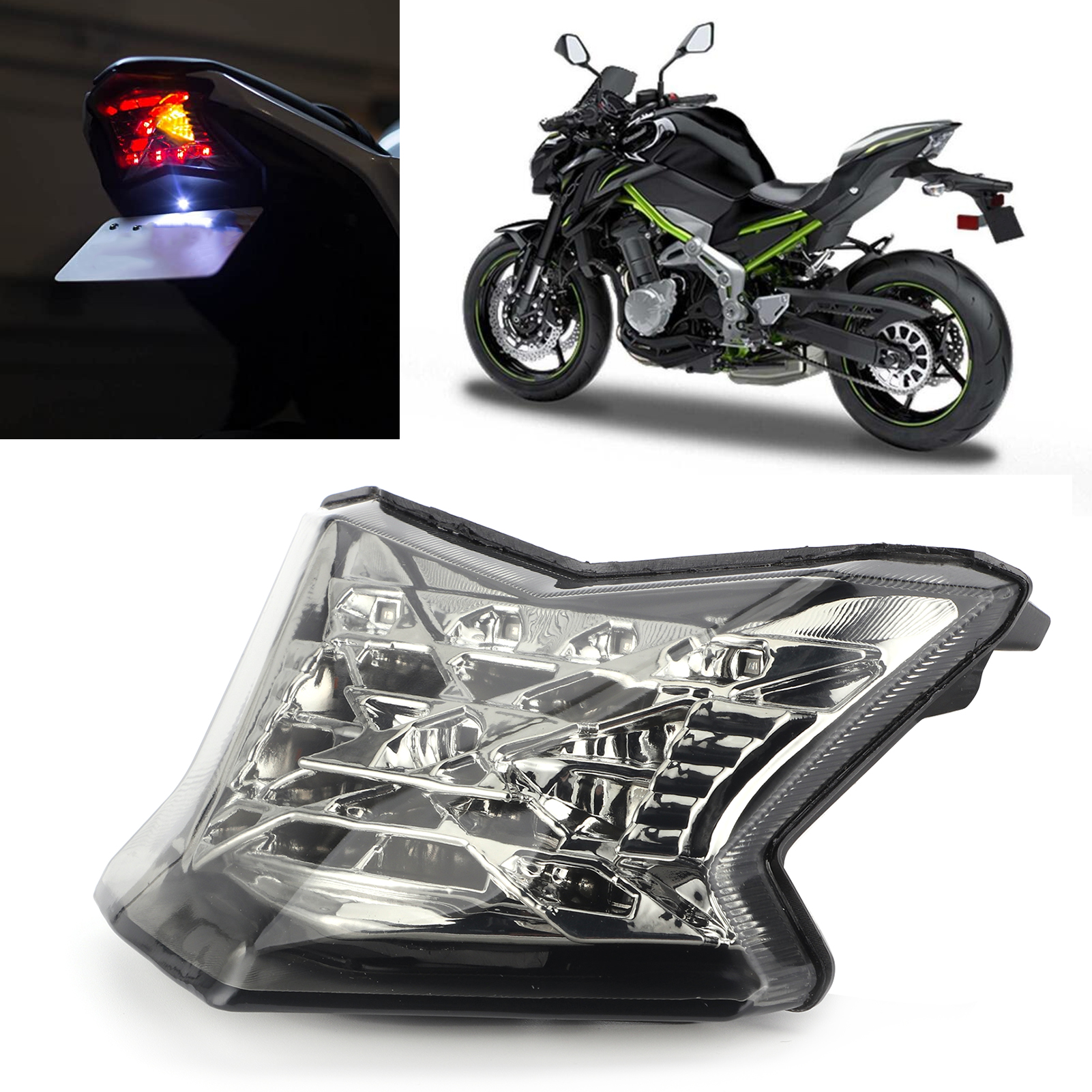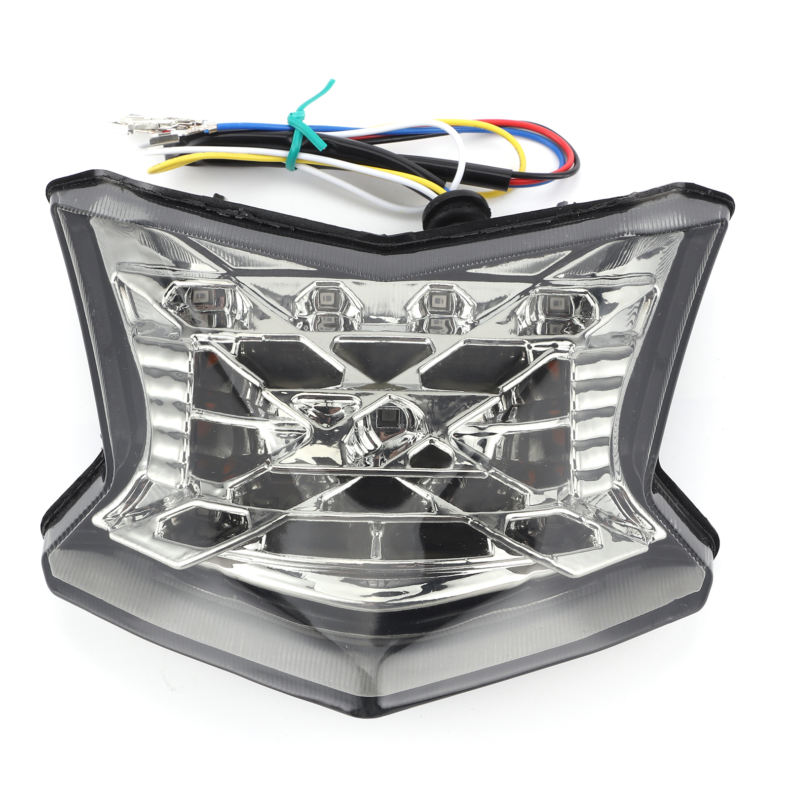 1、Taillights assembly, with the functions of running light, brake light and turn signal. 2、Bright LED light, feature good luminous purity, improve visibility and enhance driving safety. 3、Streamlined styling, transparent lens, give your motorcycle a unique and stylish look. 4、Easy to install, convenient to use. Perfectly fit for Kawasaki Z900/Z650/Ninja 650 2017‑2019. 5、Adopt premium PVC plastic, high impact resistance, rugged and durable to use.