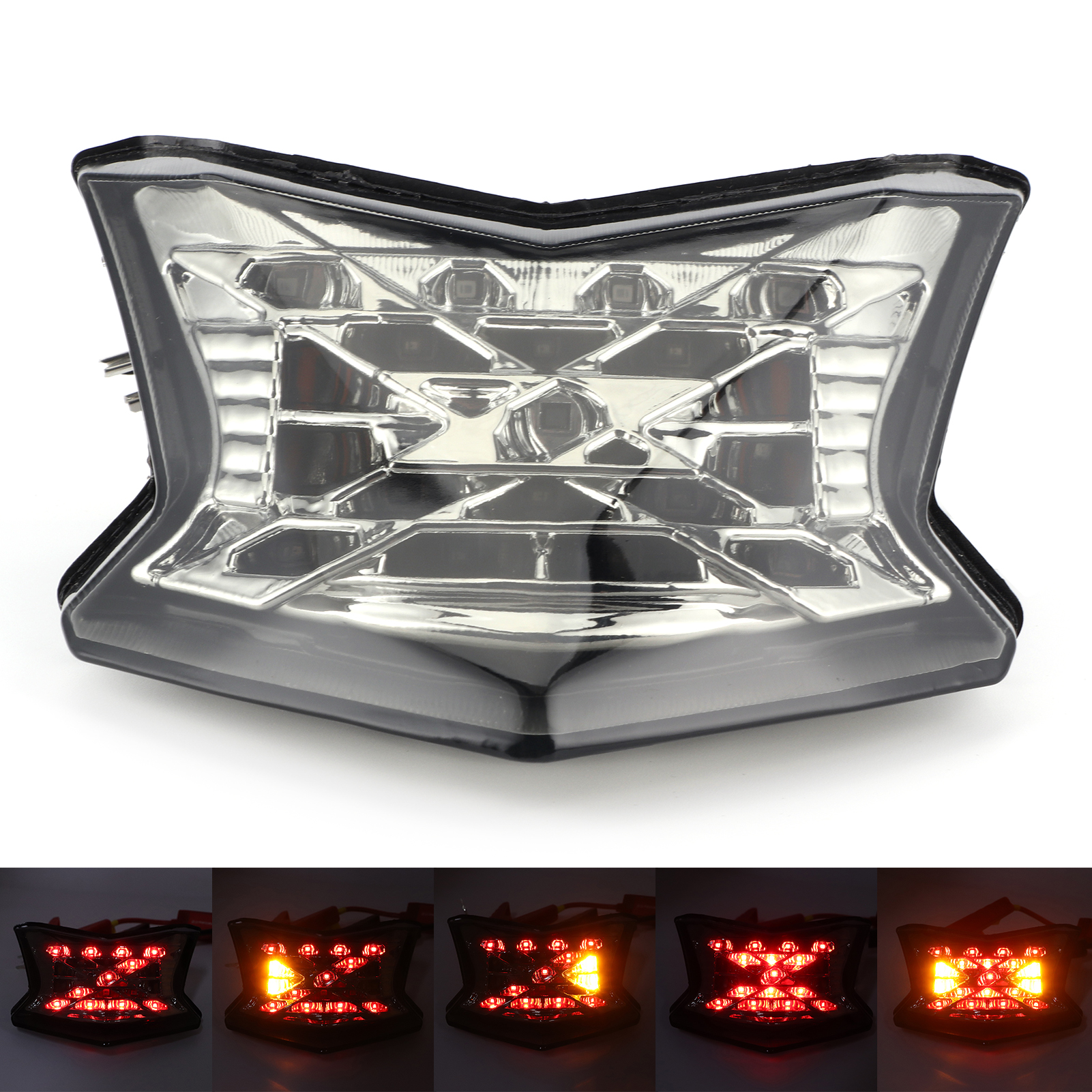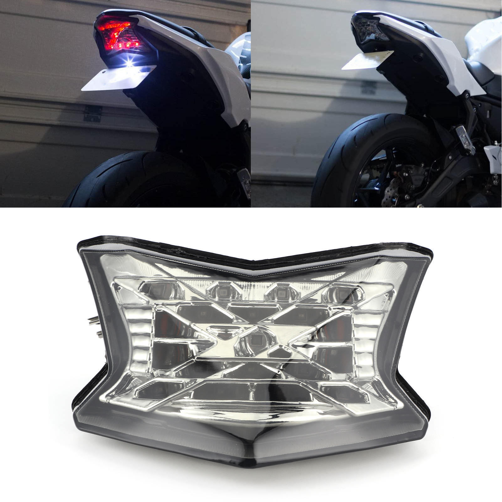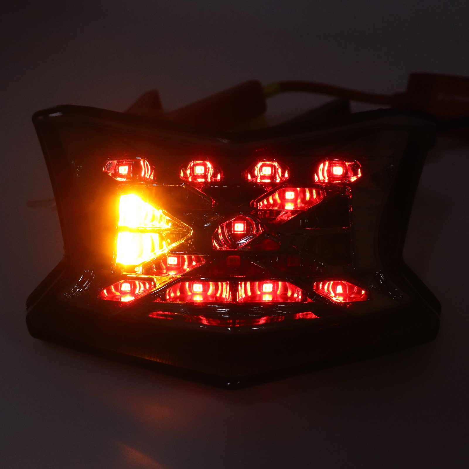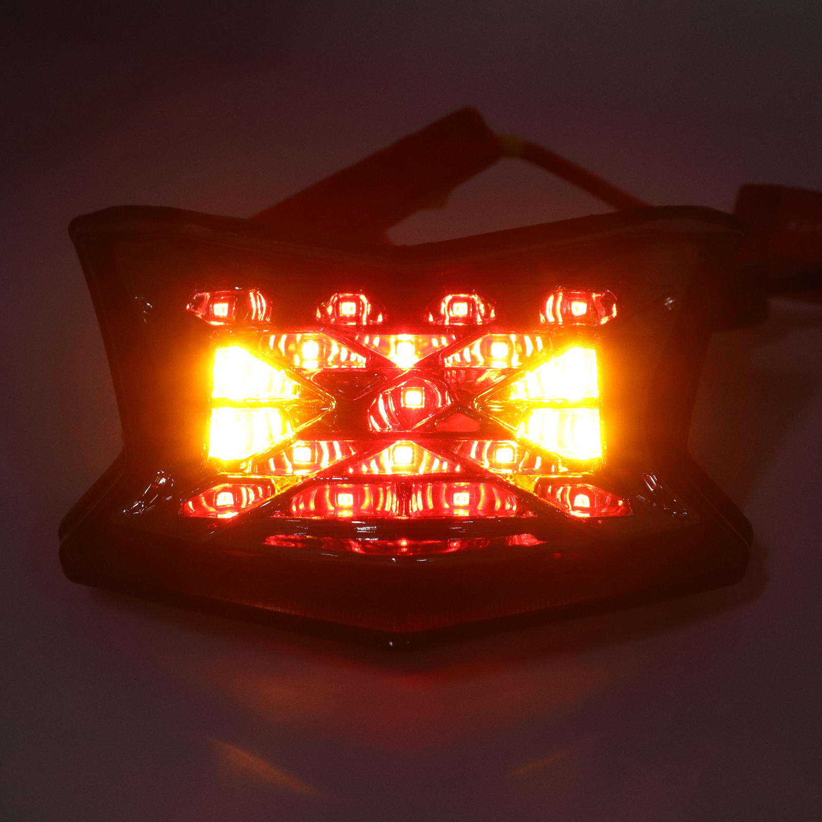 1、Taillights assembly, with the functions of running light, brake light and turn signal. 2、Bright LED light, feature good luminous purity, improve visibility and enhance driving safety. 3、Streamlined styling, transparent lens, give your motorcycle a unique and stylish look. 4、Easy to install, convenient to use. Perfectly fit for Kawasaki Z900/Z650/Ninja 650 2017‑2019. 5、Adopt premium PVC plastic, high impact resistance, rugged and durable to use.