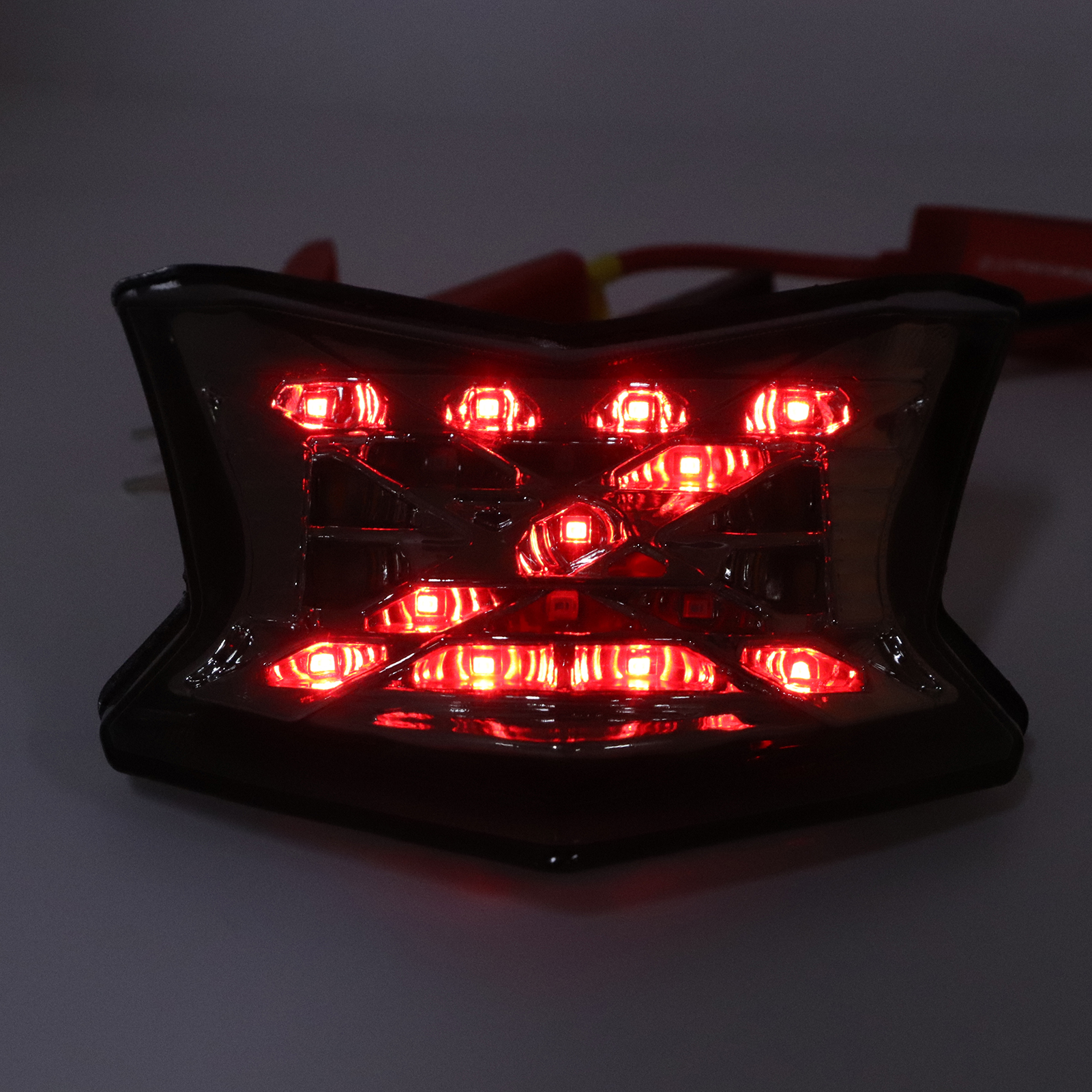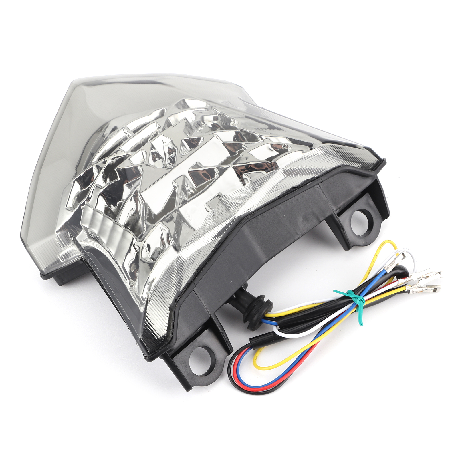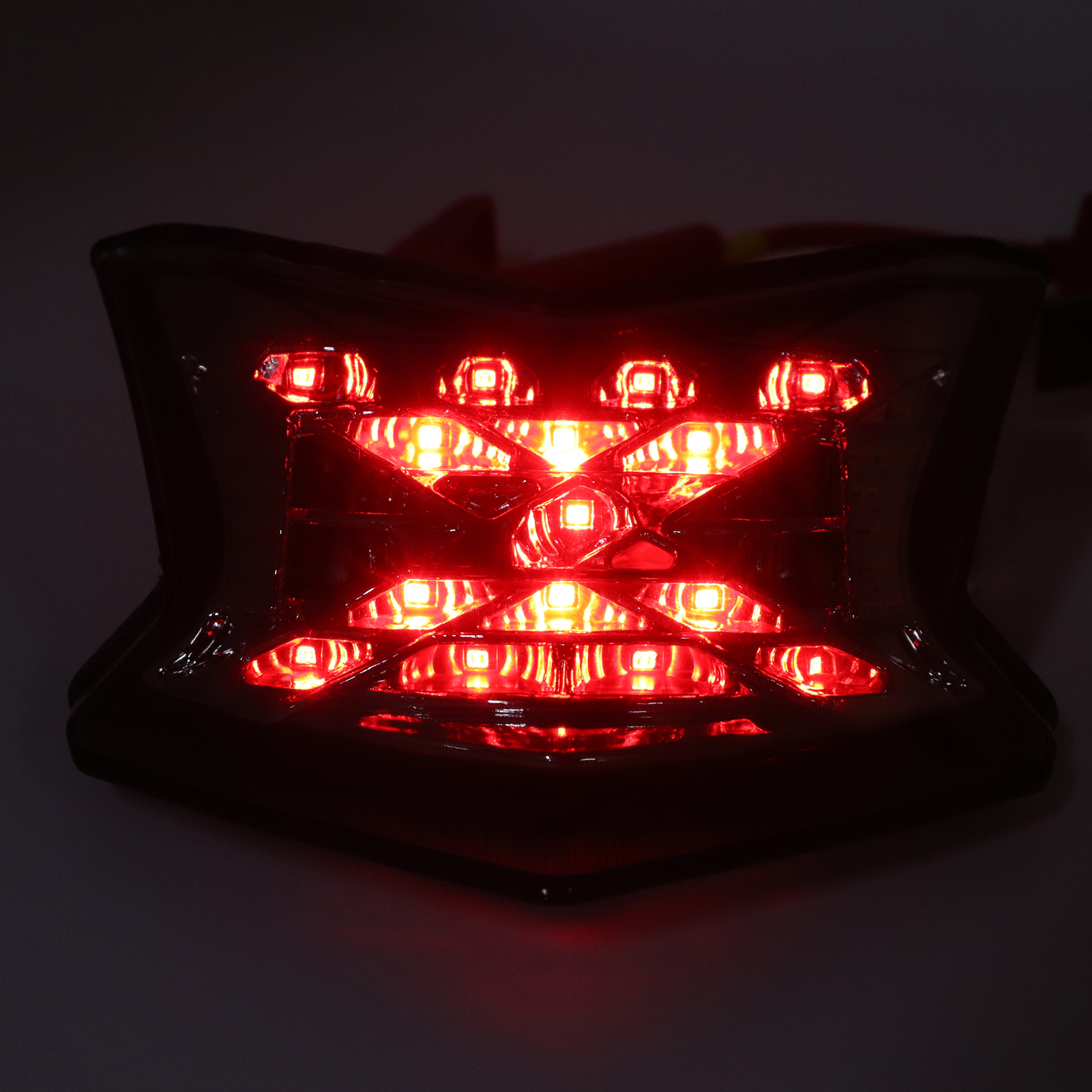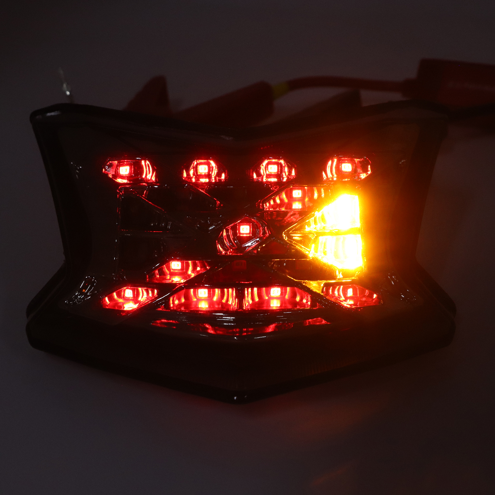 1、Taillights assembly, with the functions of running light, brake light and turn signal. 2、Bright LED light, feature good luminous purity, improve visibility and enhance driving safety. 3、Streamlined styling, transparent lens, give your motorcycle a unique and stylish look. 4、Easy to install, convenient to use. Perfectly fit for Kawasaki Z900/Z650/Ninja 650 2017‑2019. 5、Adopt premium PVC plastic, high impact resistance, rugged and durable to use.