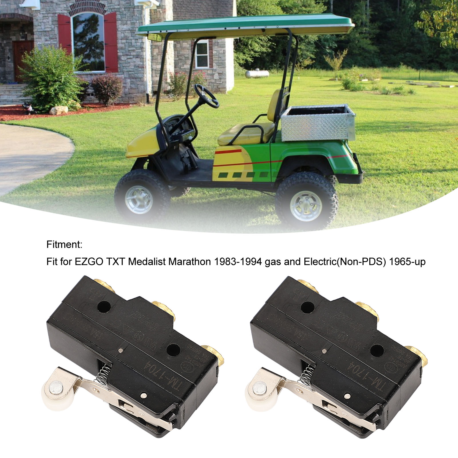 1、Part Number: Manufactured according to strict original specifications, micro limit switch OE numbers are 10606 G1, 10606 G2, 17928G1, 31535G1. 2、Applicable Model: Roller lever micro switch fit for EZGO TXT Medalist Marathon 1983‑1994, fit for EZGO Gas and Electric(Non‑PDS) 1965‑up. 3、Function: Micro switches are used for automatic control and safety protection in equipment that requires frequent circuit switching. 4、Direct Replacement: This micro limit switch is designed to match the fit and function of the original micro switch on specified vehicles. 5、Premium Material: Micro limit switch with roller and 3 screw terminals, MS2 and MS4, 15 Amps. Made of ABS and metal materials for a long service life.