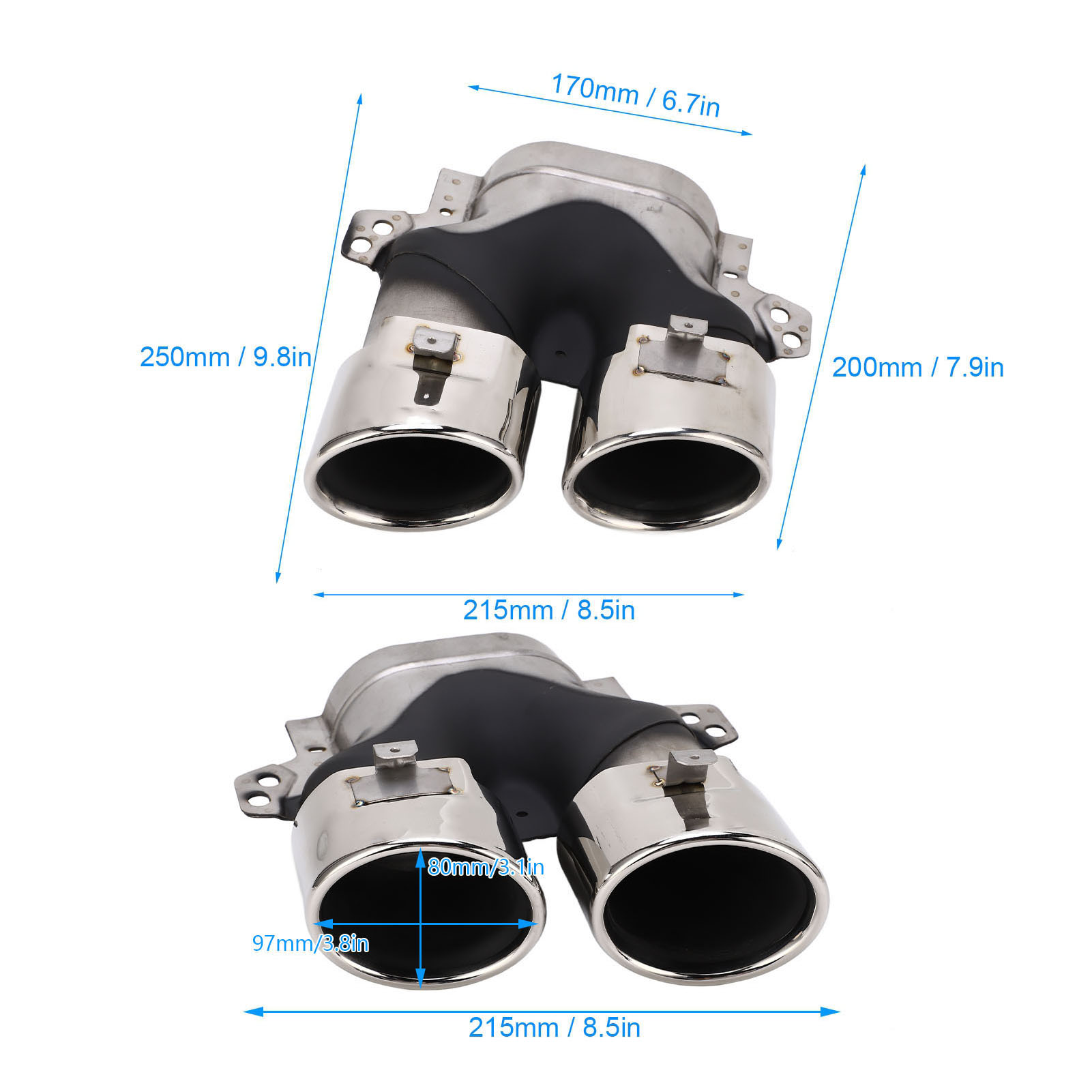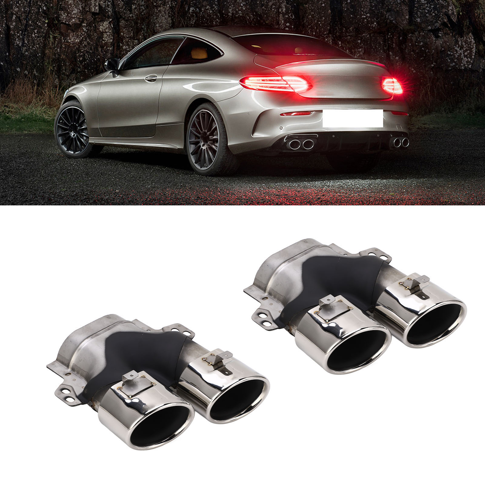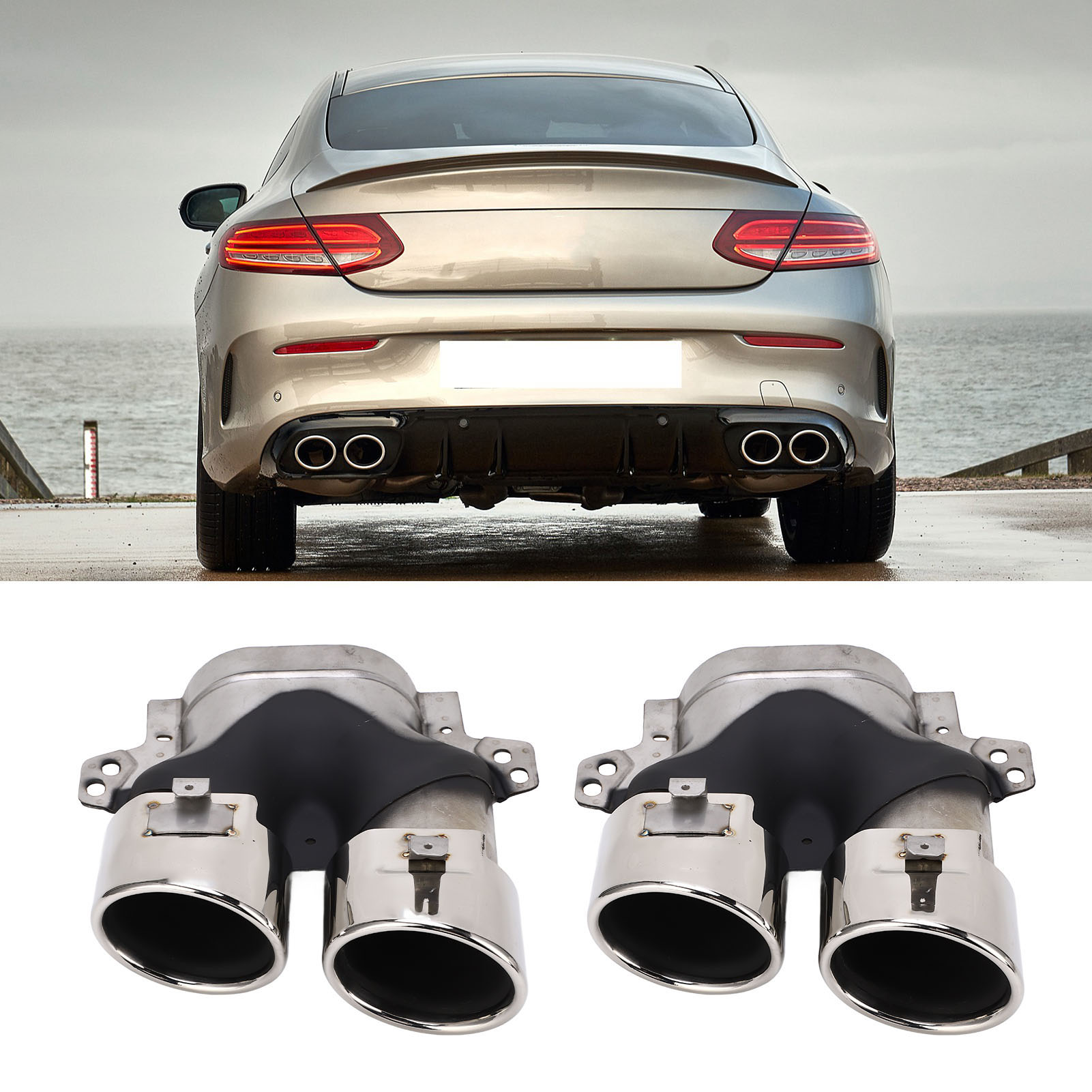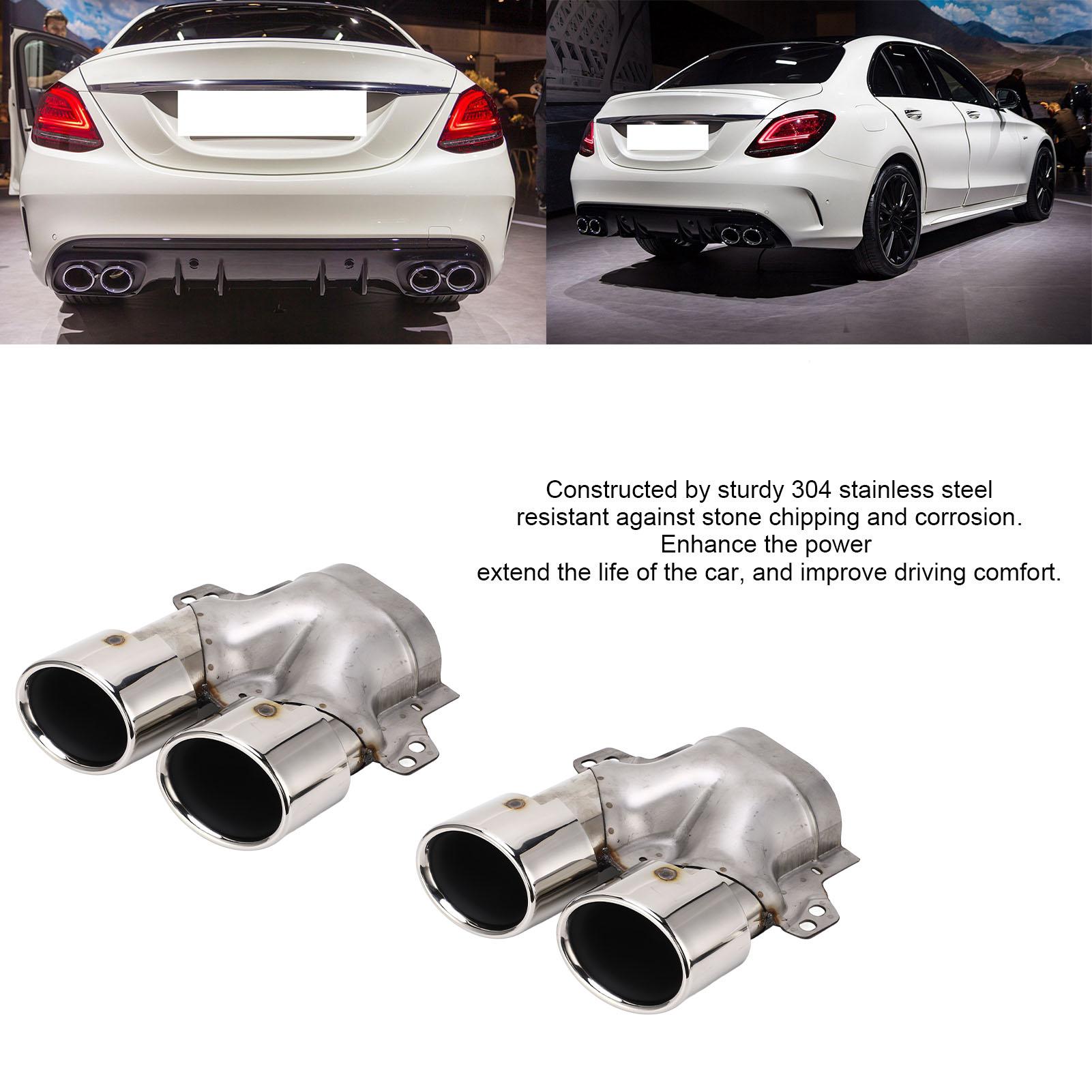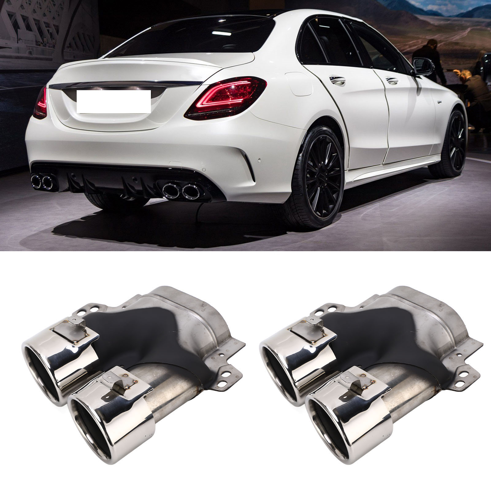 1、Quad exhaust tips, fit for AMG C43 W205 S205 C205 A205 Facelift 2019+. 2、304 stainless steel construction, resistant against stone chipping and corrosion. 3、Upgrade and decorate your vehicle, offering a stylish and a unique appearance. 4、Enhance the power, extend the service life of the car, improve driving comfort. 5、Superb workmanship, the exhaust tips are OEM custom fitment for a great fit on your vehicle.