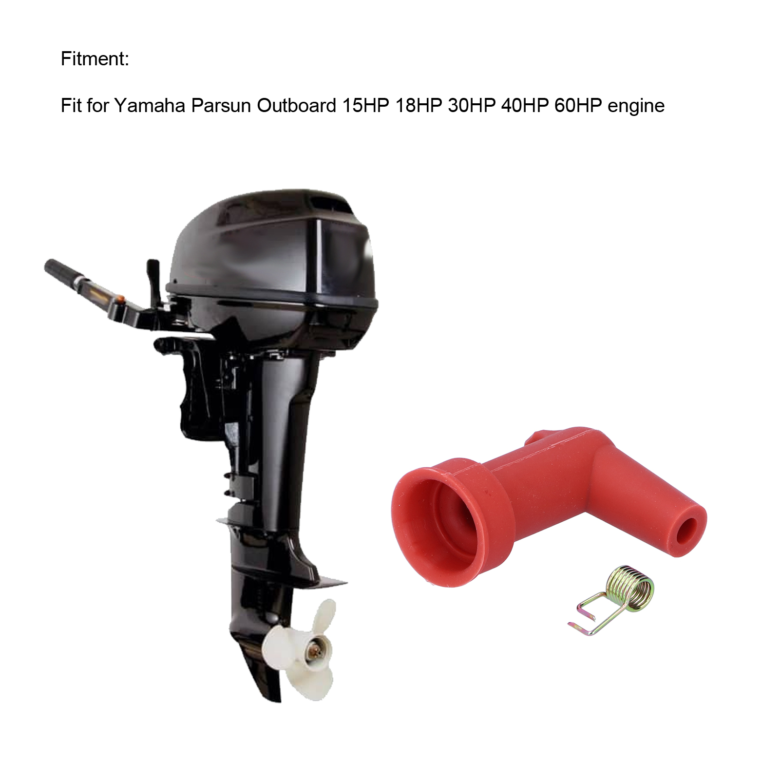 1、90 degree spark plug cap, fit for Yamaha Parsun outboard 15HP 18HP 30HP 40HP 60HP engine. 2、Protect the spark plug, transmit the ignition high voltage to the spark plug, provides strong spark. 3、With rubber joints at both ends, which can prevent moisture from entering and causing leakage. 4、Made of high quality rubber, resist heat and high tension, anti‑aging and waterproof, durable to use. 5、Easy and fast to install, no complicated tool is required, convenient to use.
