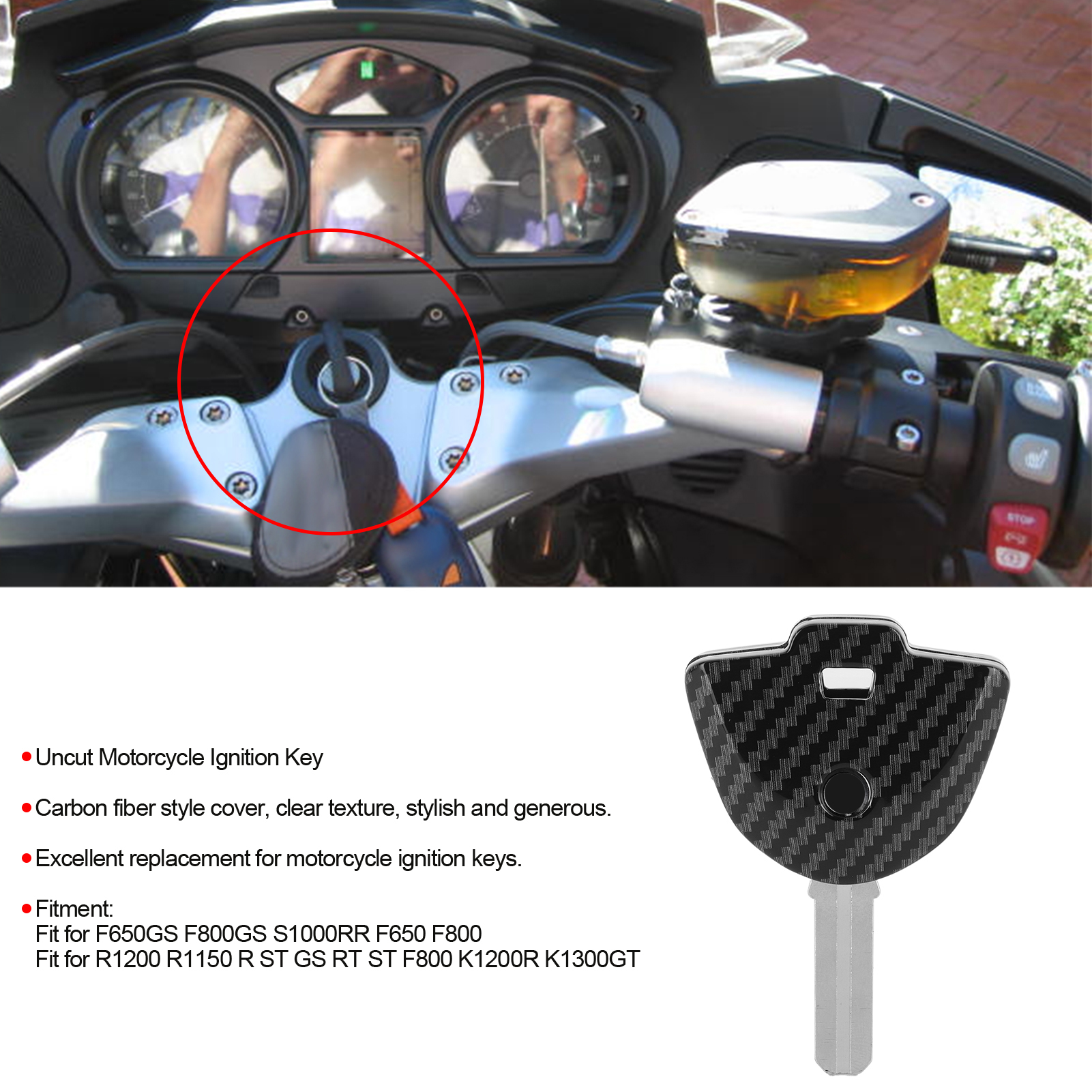1、Uncut motorcycle ignition key, fit for F650GS F800GS S1000RR F650 F800 R1200 R1150. 2、Premium ABS material, rugged copper core, ensures long service life. 3、With carbon fiber style cover, fine workmanship, clear texture, which looks stylish. 4、Perfect replacement for old motorcycle ignition key, stable and reliable to use. 5、Compact size, lightweight and portable, easy to carry and store, convenient to use.