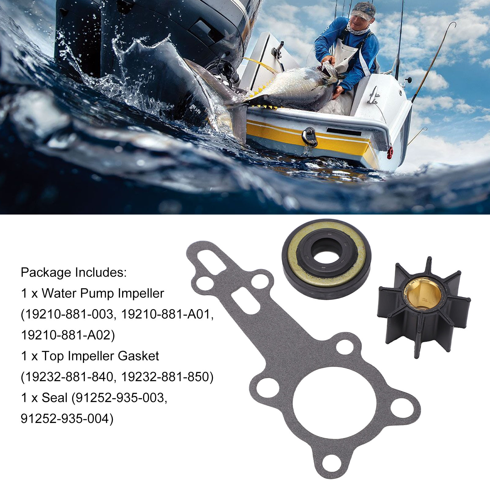 1、OE Number: The referencing OE number of this water pump repair kit are 06192 881 C00, 04999 881 000AH, which is molded depend on the original data. 2、Fitment: The water pump impeller kit is a replacement for BF8A 8 HP Outboards, please check the model before ordering to confirm compatibility. 3、Function: Restore the function of the pump, providing higher flow and cooling flow to the pump, protecting the normal operation of the engine. 4、Complete Accessory: The package includes a water pump impeller, a top impeller gasket and a seal, which will make the repair work easier. 5、Easy to Install: Stringently manufactured to meet the original standard, perfect replacement for the old or broken one, improving the time efficiency.
