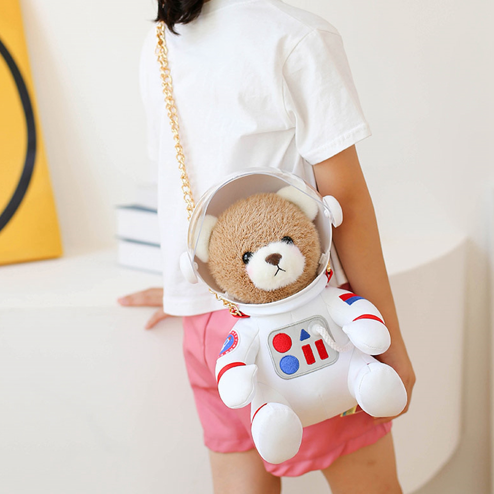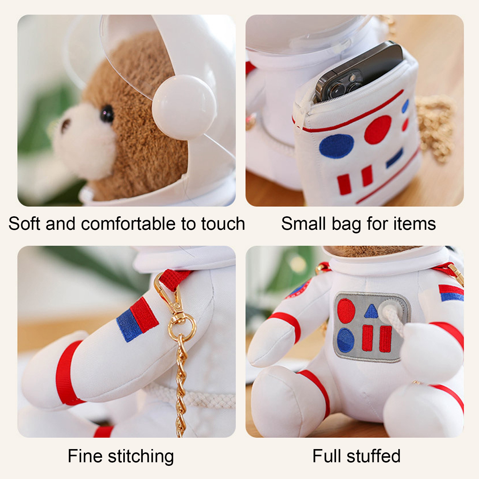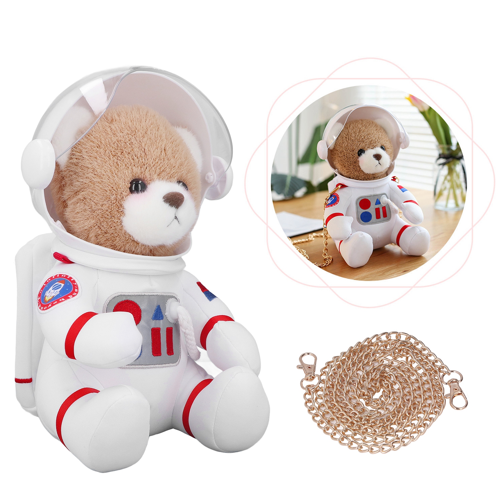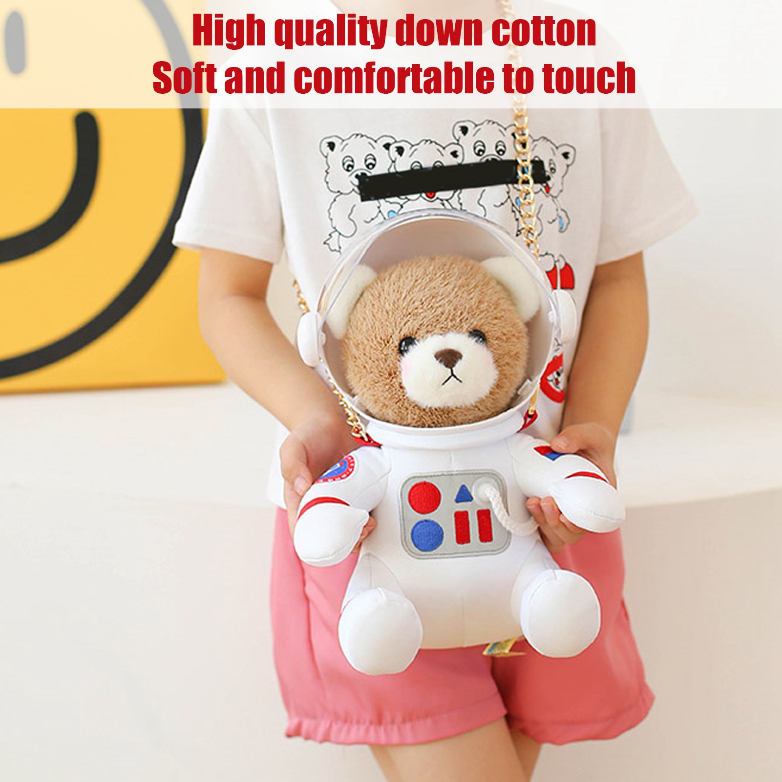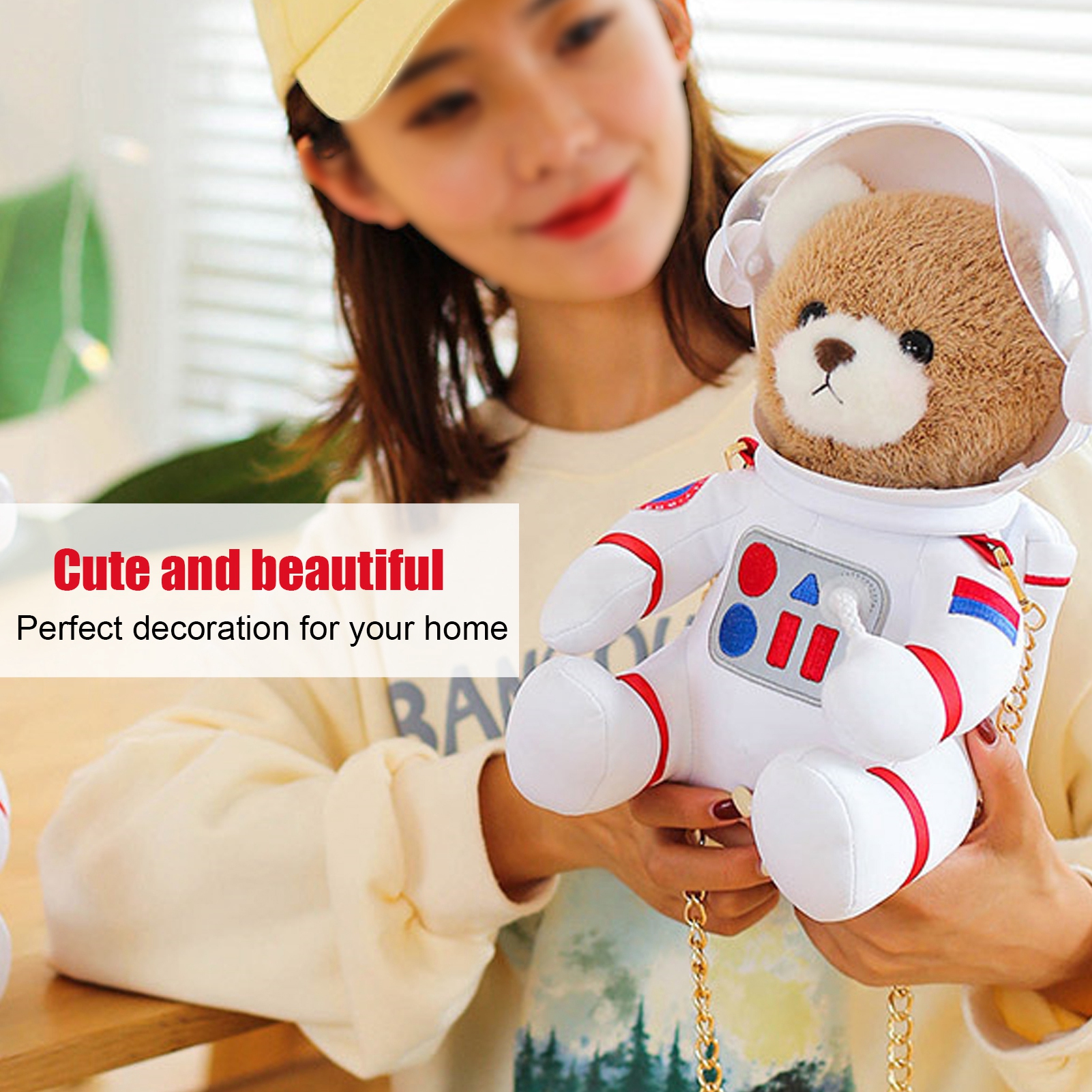 11.81in Space Bear Stuffed Toy Small Bag Adorable Down Cotton Cartoon Bear Doll for Birthday Gift Brown