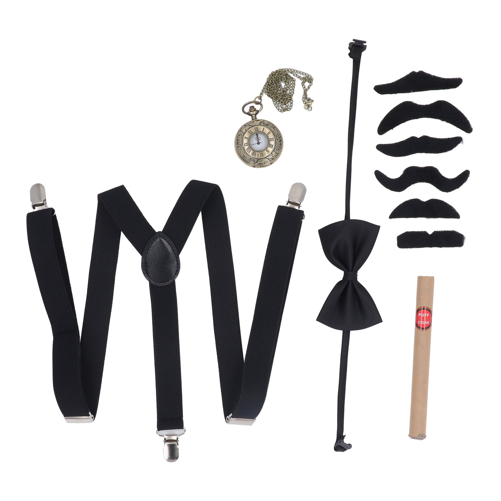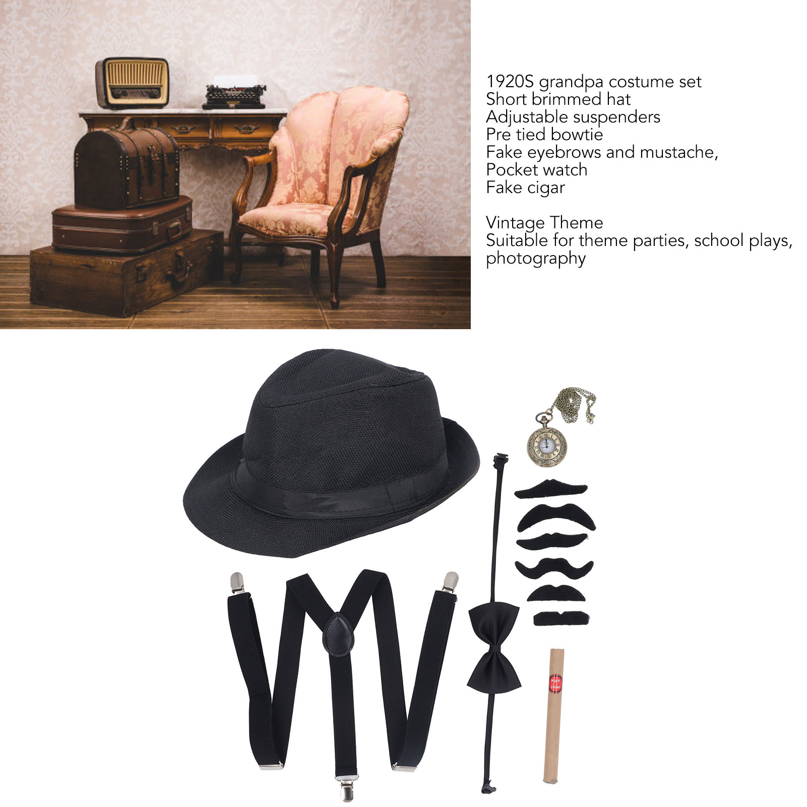 1、1920S STYLE: 1920S grandpa costume set includes a short brimmed hat, adjustable suspenders with a pre tied bowtie, fake eyebrows and mustache, pocket watch and fake cigar making it an ideal choice for historical theme parties. 2、TIMELESS HAT: Our timeless style hat embodies the spirit of the past, resonating with the fashion of elderly men in the 1920s. Its vintage charm makes it a great prop for theme parties, school plays, or even a funny in photography sessions. 3、ADJUSTABLE SUSPENDERS: The suspenders are made from 70% polyester fiber and 30% polyethylene fiber, ensuring their flexibility and reliability. They can be adjusted from 16 inches to 27 inches, providing a comfortable fit for your child. 4、EASY TO CARE: Old man costume set is easy to care for. If any item gets flattened during transportation, simply adjust it back to its original shape, and it will regain its form in no time. Pro tip: If you find the eyebrows and mustache set too adhesive, you can stick them on your hand a few times to remove excess adhesive. 5、PERFECT FOR DRESS UP GAMES: Whether it is a 1920s themed party or a vintage dress up game, this boys gangster costume set is sure to impress. It allows your kid to embrace the vintage style and have hours of fun while looking the part.