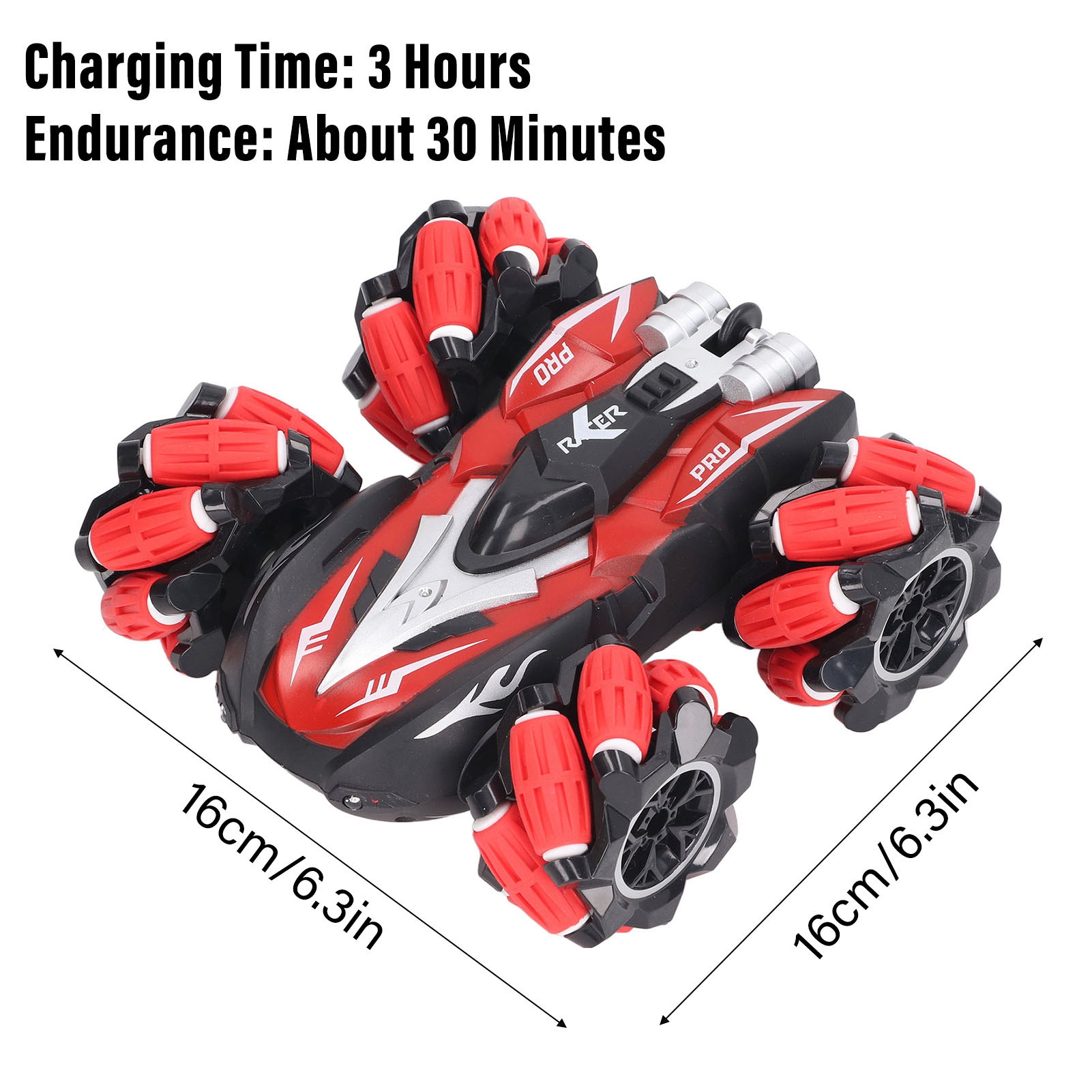 1、USB CHARGING: Remote control car charges directly via USB, eliminating the need to remove rechargeable batteries to avoid damage. No need to purchase a charger. Up to 30 minutes of run time on a full charge. 2、ALL ROUND MOBILITY: RC stunt car can move in all directions, can do extreme 360 degree roll and double sided rolling, cool features and unlimited fun, giving children a wonderful operating experience and visual effects. 3、ANTI INTERFERENCE: RC stunt drift car has anti interference function. Each stunt car has its own independent signal, which can support children to play together without interference, giving boys and girls good memories. 4、2.4G REMOTE CONTROL: High speed drift RC car adopts 2.4G remote control frequency, which can realize long distance control and achieve high frequency intelligent control. Transverse tires, strong grip. 5、EXCELLENT GIFT: 2.4G remote control car can show a variety of stunts, including the coolest drift. It is a perfect, Christmas, birthday gift for boys and girls aged over six years old.