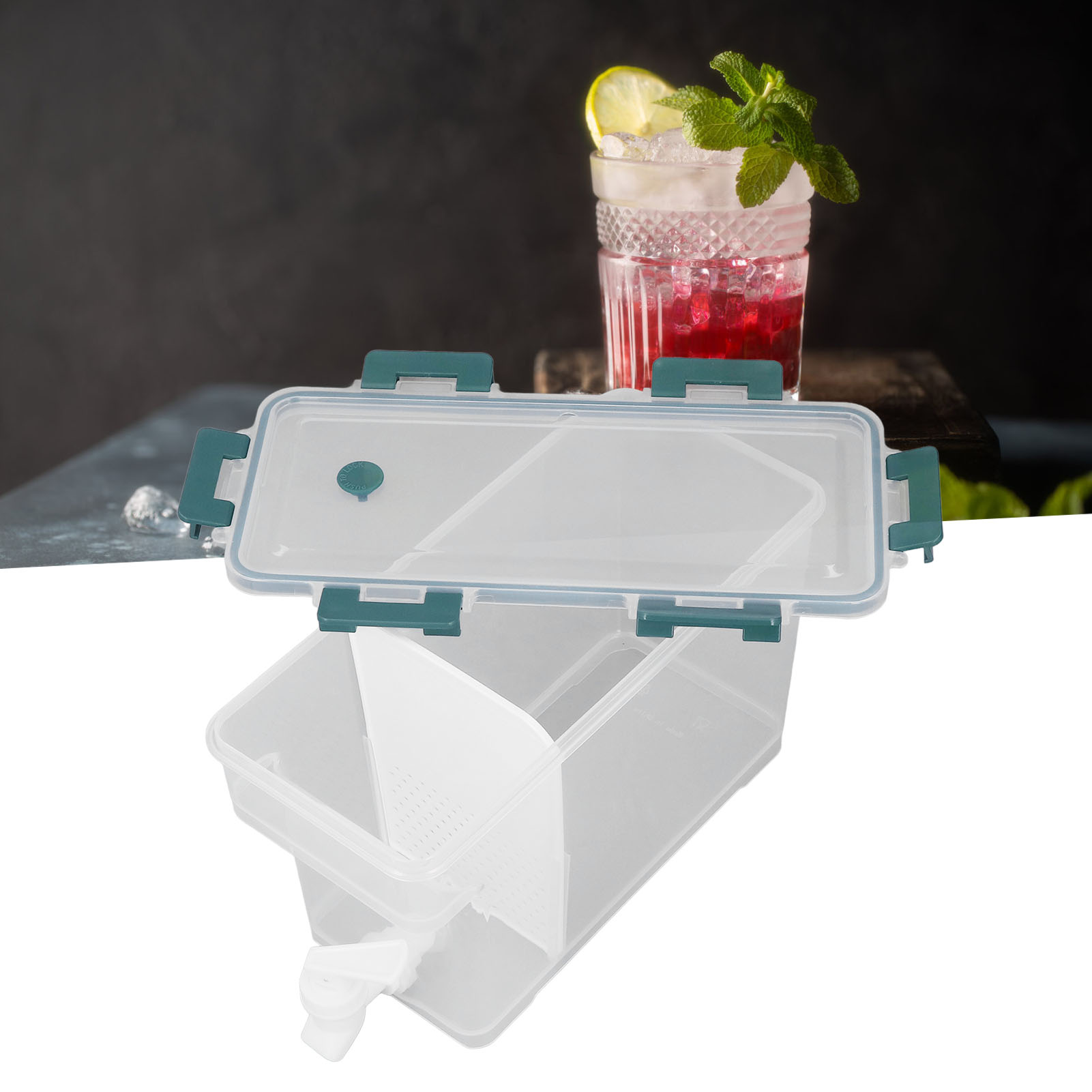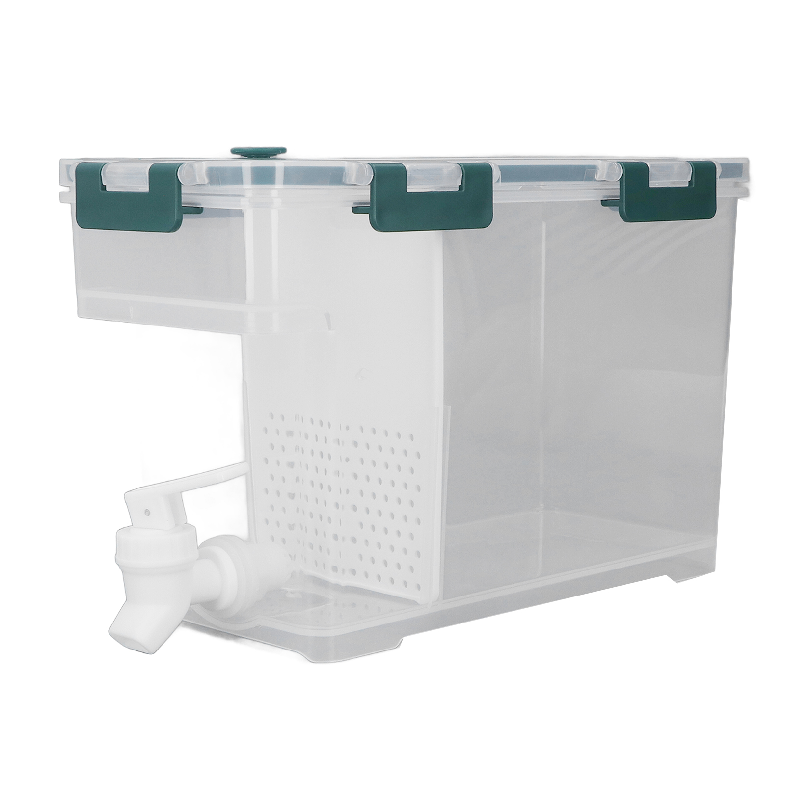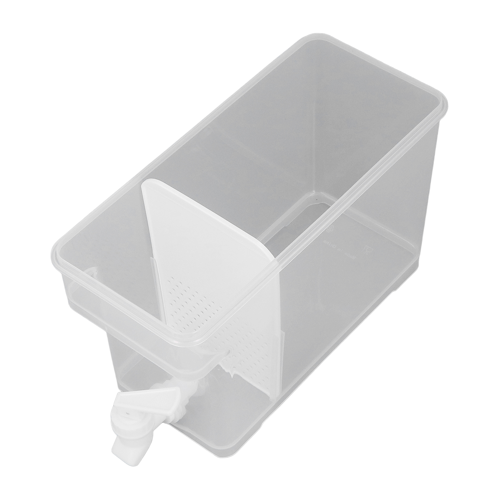 1、Food Grade PP: The refrigerator cold water dispenser is made of PP material, BPA free, safe to use and odorless. High and low temperature resistant, ‑20 to 120℃. Boiling water can be poured directly into the kettle without deformation. 2、Spigot and Rubber Ring: The refrigerator cold water dispenser is more convenient to catch water after you lightly press the cold water bucket faucet. It is designed with rubber ring, anti clogging, anti drip, sealed, no leakage. 3、3.5L Large Capacity: The beverage dispenser 3.5L large capacity is enough for a day's drinking, perfect for friends' party, camping, traveling. With large diameter lid, no need to unscrew, easy to open, convenient to add fruit, ice, clean thoroughly. 4、Space Saving: Dispenser with spigot is specially designed for refrigerators, slim and compact beverage container is easy to put into the refrigerator, juices jugs do not take up space. 5、Filter Separator Plate: Cold water beverage dispenser filter fine holes can effectively prevent fruit residue from entering the faucet, preventing the flowing of beverages from becoming smaller or even leaking out.