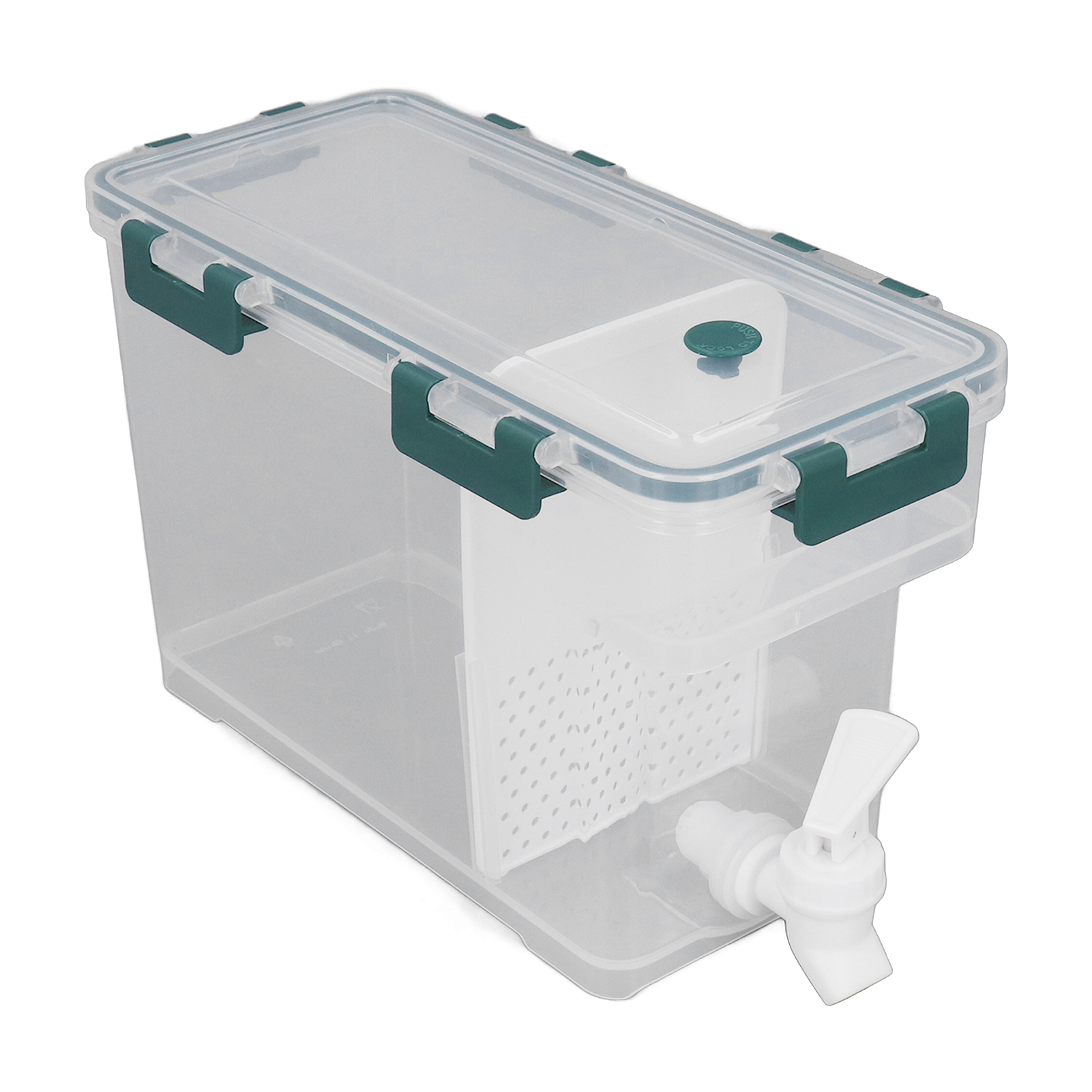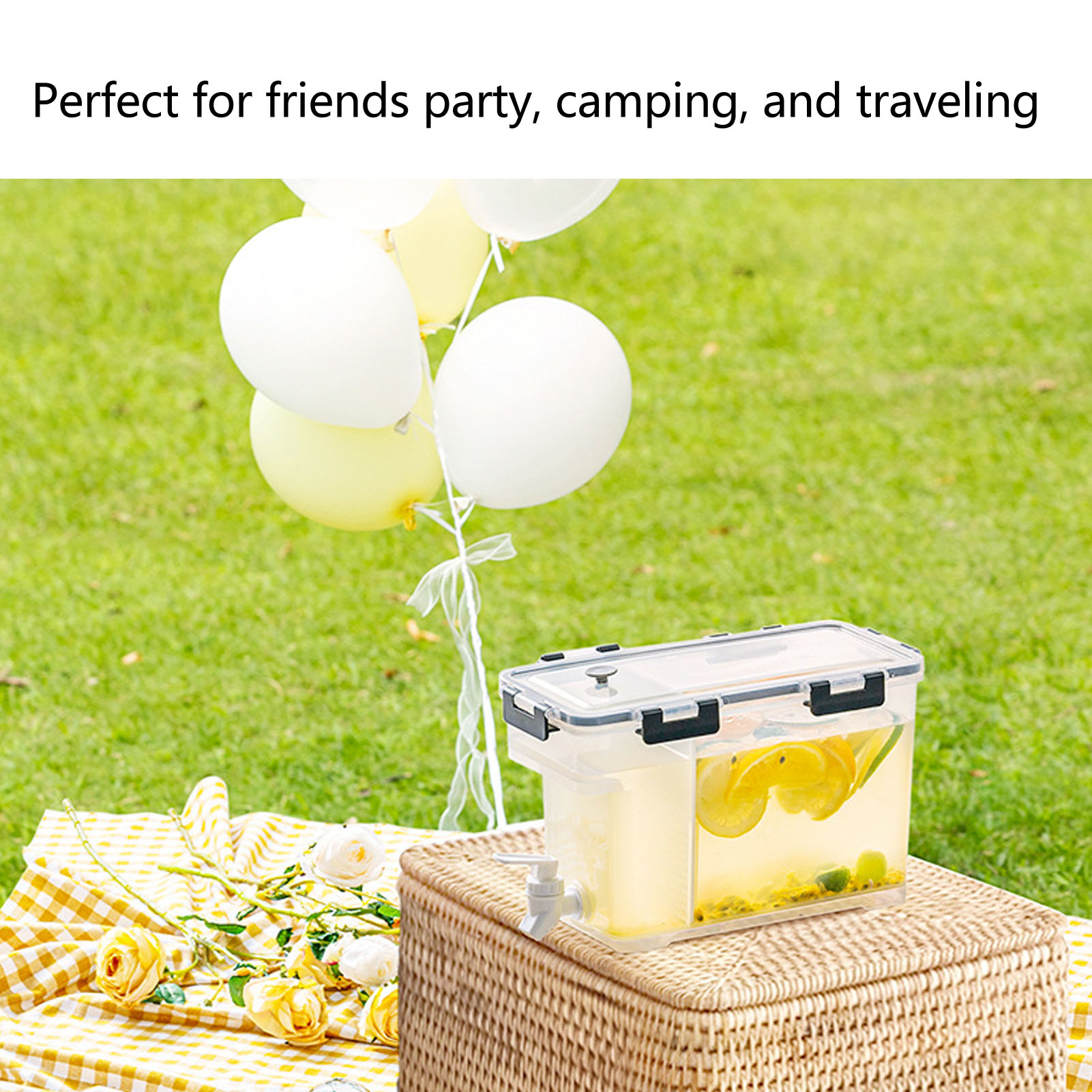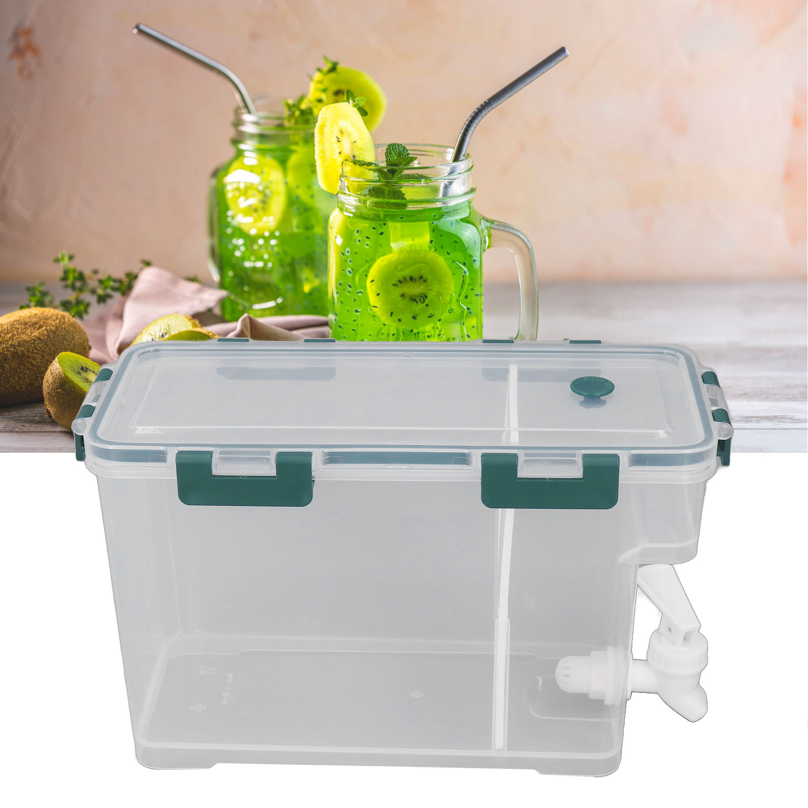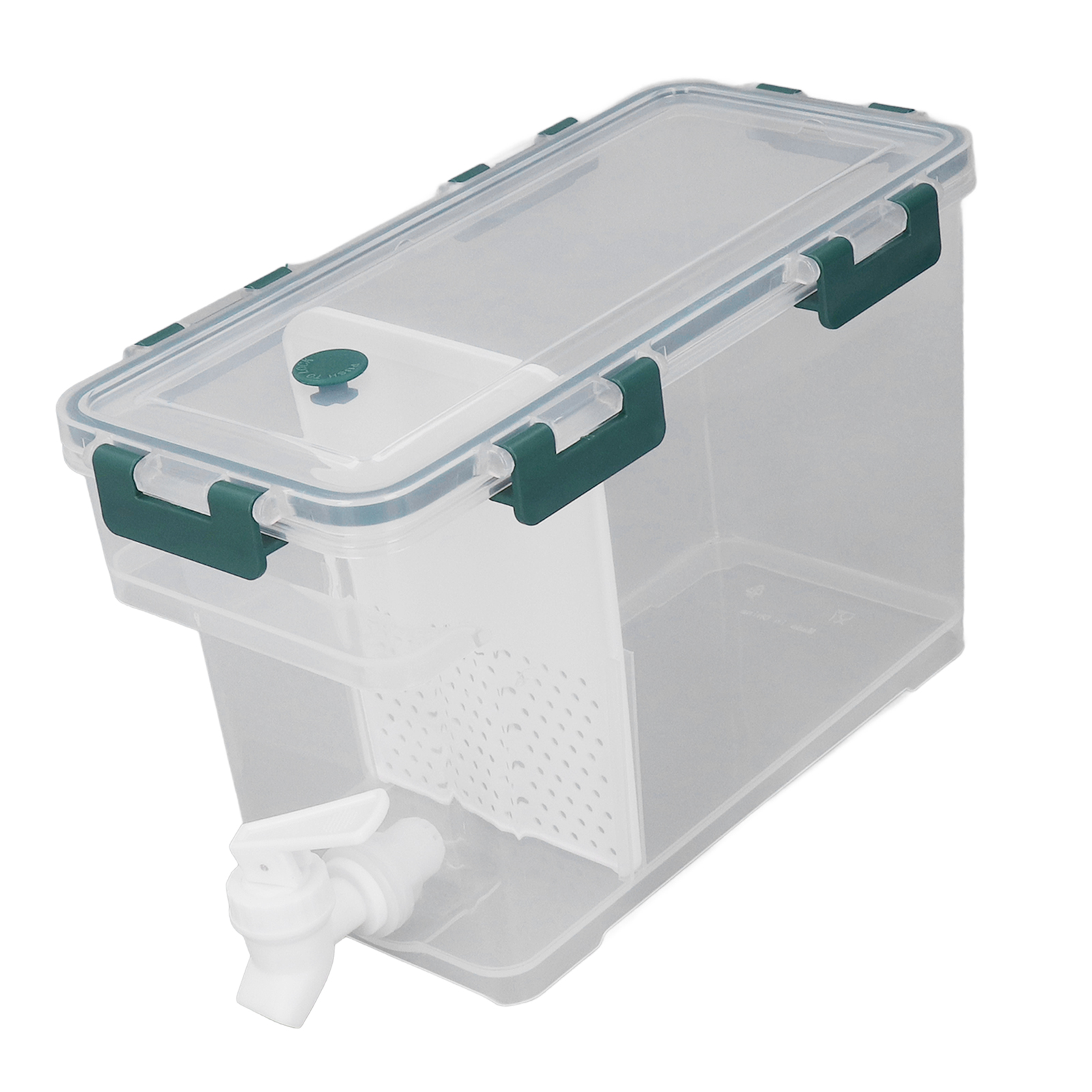 1、Food Grade PP: The refrigerator cold water dispenser is made of PP material, BPA free, safe to use and odorless. High and low temperature resistant, ‑20 to 120℃. Boiling water can be poured directly into the kettle without deformation. 2、Spigot and Rubber Ring: The refrigerator cold water dispenser is more convenient to catch water after you lightly press the cold water bucket faucet. It is designed with rubber ring, anti clogging, anti drip, sealed, no leakage. 3、3.5L Large Capacity: The beverage dispenser 3.5L large capacity is enough for a day's drinking, perfect for friends' party, camping, traveling. With large diameter lid, no need to unscrew, easy to open, convenient to add fruit, ice, clean thoroughly. 4、Space Saving: Dispenser with spigot is specially designed for refrigerators, slim and compact beverage container is easy to put into the refrigerator, juices jugs do not take up space. 5、Filter Separator Plate: Cold water beverage dispenser filter fine holes can effectively prevent fruit residue from entering the faucet, preventing the flowing of beverages from becoming smaller or even leaking out.