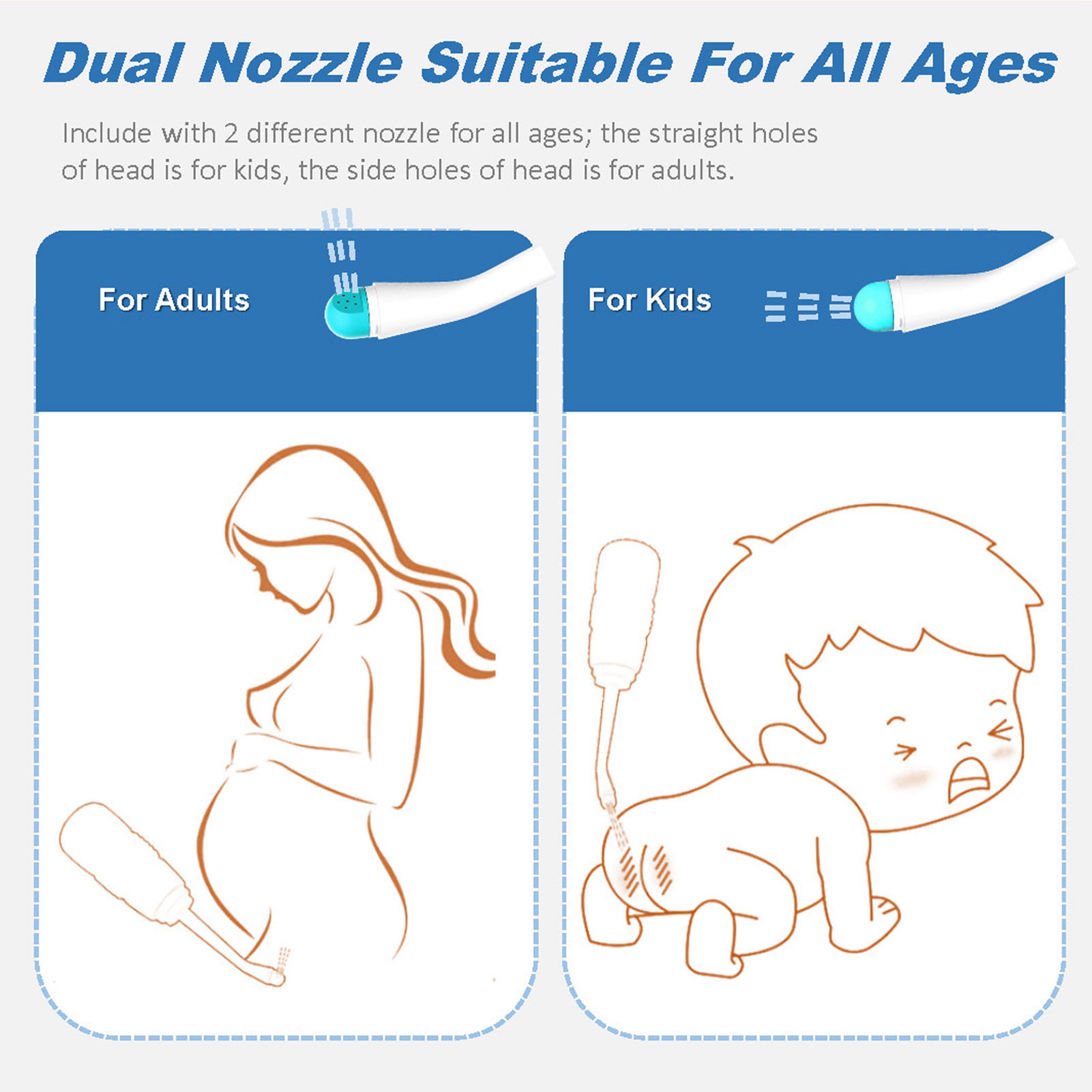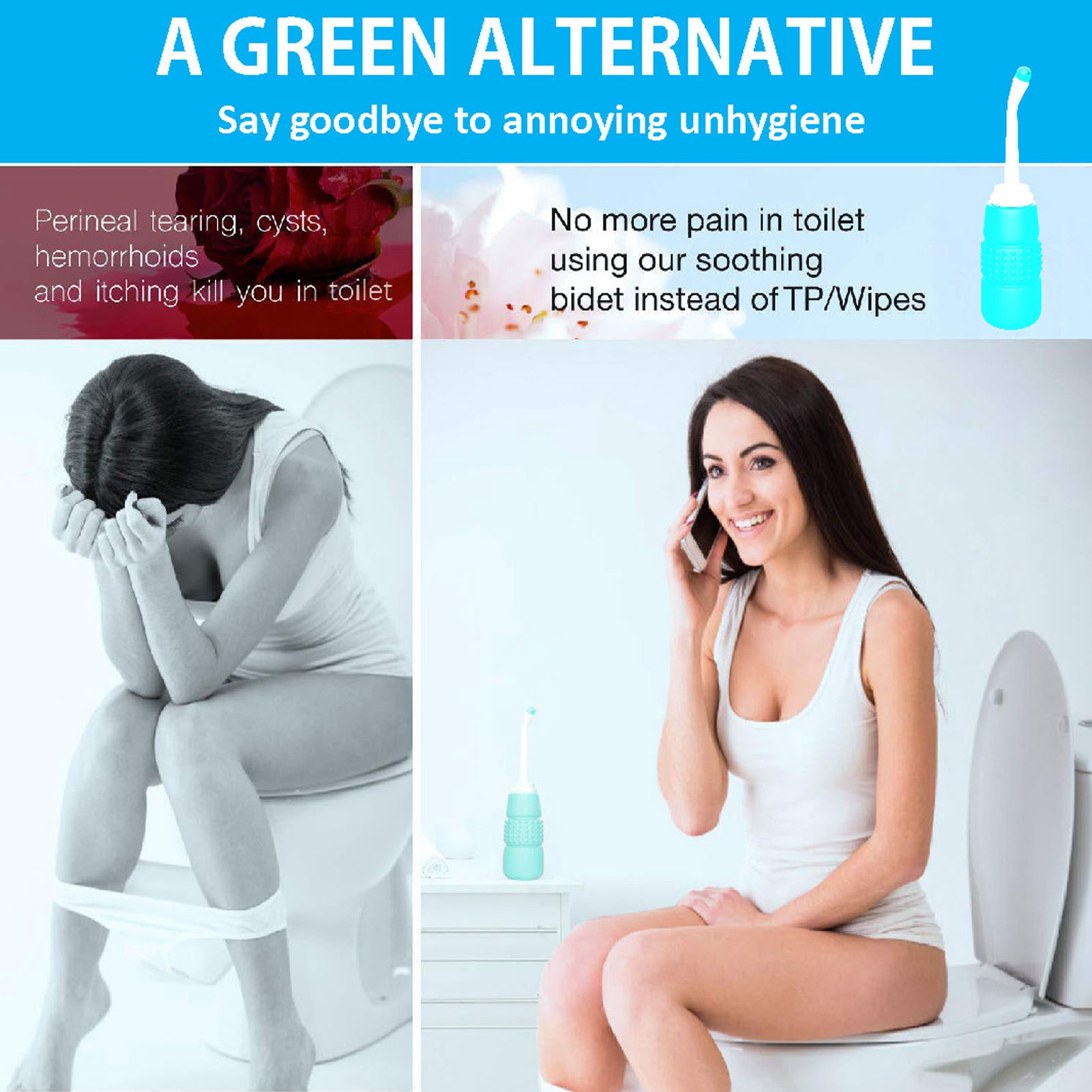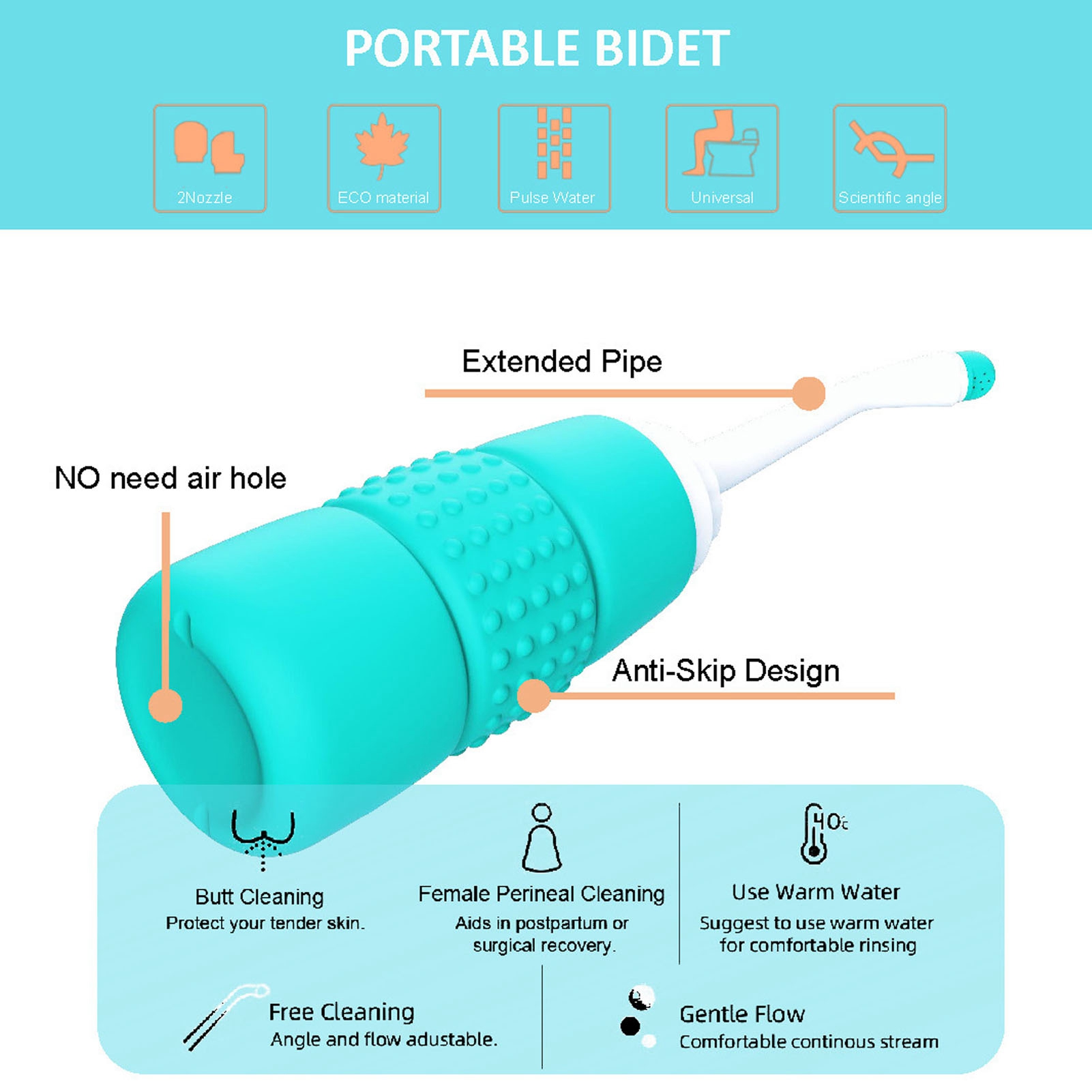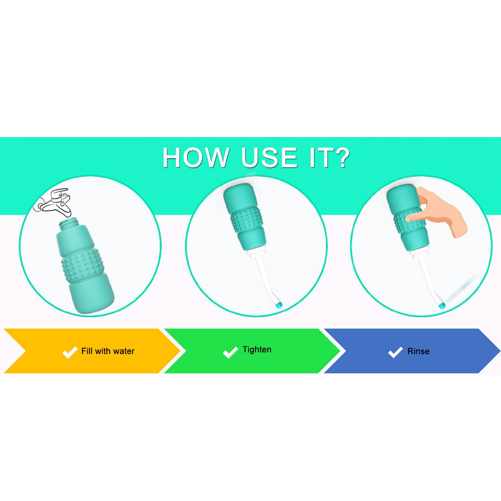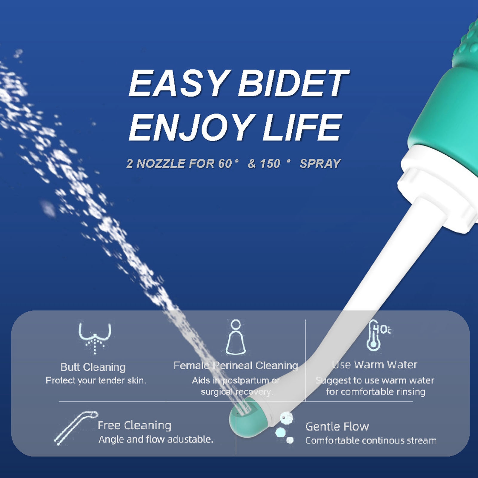1、Easy To Use: Made of EVA and PP material, strong elasticity, fast rebound, good feel, simply fill with cool or warm water, screw on the cap, just a squeeze can do the job right, then you will get a refreshing experience. 2、Practical: Replace paper towels, thoroughly clean, do not damage the skin, effectively prevent diseases and infections of private parts, save toilet paper, environmentally friendly, economical, comfortable and clean. 3、Ergonomic Design: Specially designed to be held upside down, includes both an angled nozzle and a straight nozzle to meet different situations. Equipped with a dust cover, tightly covered after use, protects personal hygiene. 4、Application: Suitable for post defecation, urinal cleaning, baby cleaning, shampooing, postpartum wound cleaning, menstrual care, for patients with hemorrhoids, people with physical disabilities. 5、Portable: 350ml portable bidet with compact handheld size, can easily fit into backpacks and suitcases, flexible for outdoor use, perfect for personal care hygiene sprayer at home, office, on vacation, travel, public toilet.