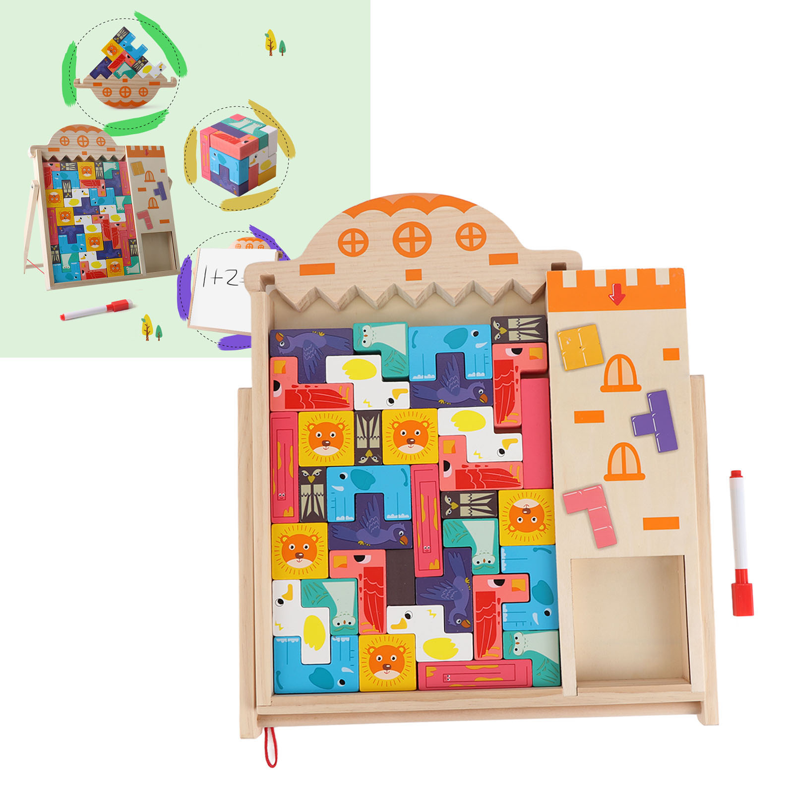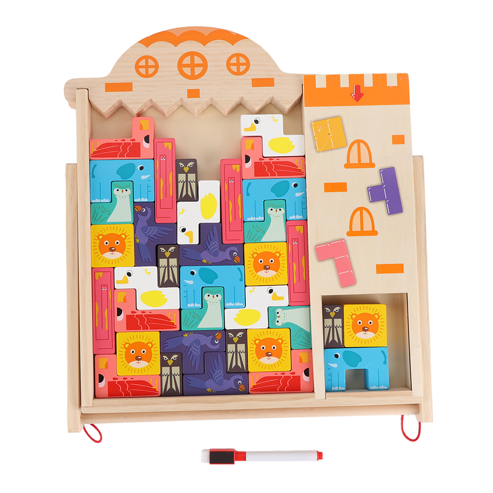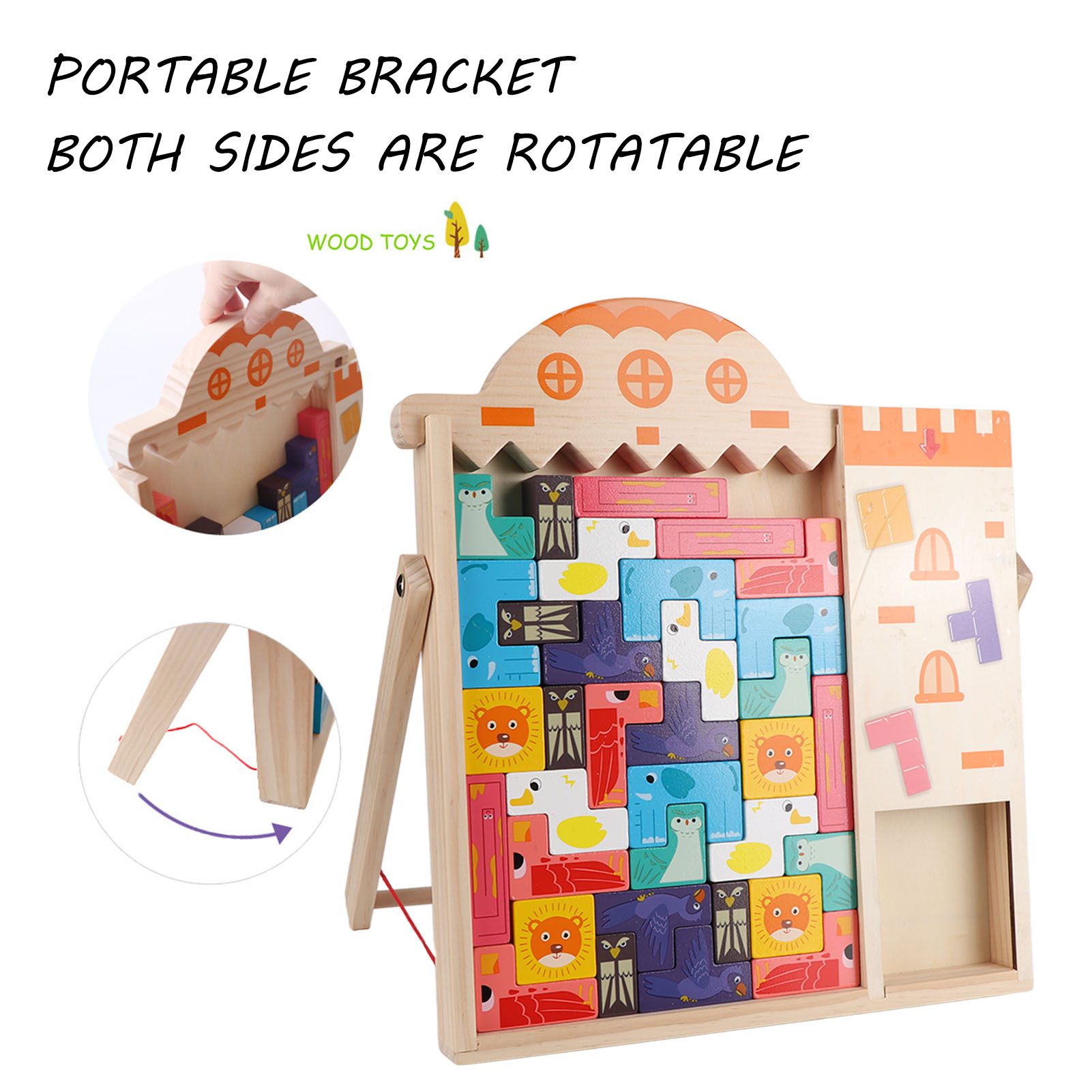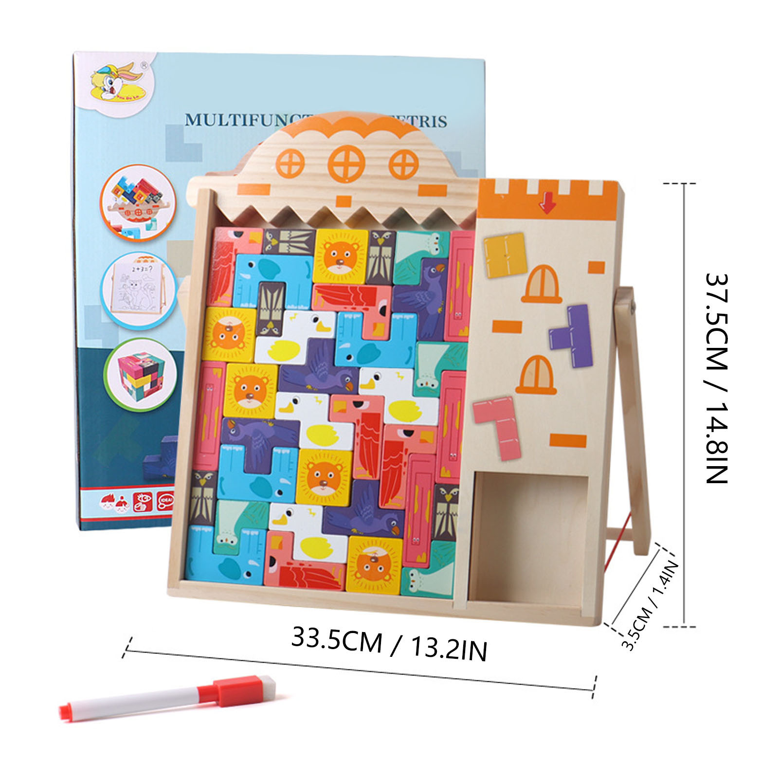 1、[Reduce Anxiety] Let children and adults put down electronic products with Russian block to relieve anxious and stress and help to slow down the memory decline of the elderly. 2、[Multifunction] Wooden Russian block is also stacked and balanced toys, with erasable board on back and it is 3D toy to give children happy experience. 3、[Develop Ability] Children try to assemble building blocks on the board, concentrate, develop their brains and intelligence, exercise their logical thinking ability. 4、[Parent Child Games]Adopts geometric patterns and bright colors to keep children and parents busy with different game choices. To practice fine motor skills and stimulate imagination and creativity. 5、[Wooden Material] Russian block is larger particles, polished edges and has water based coatings, so you can rest assured that your children can play wooden puzzles.