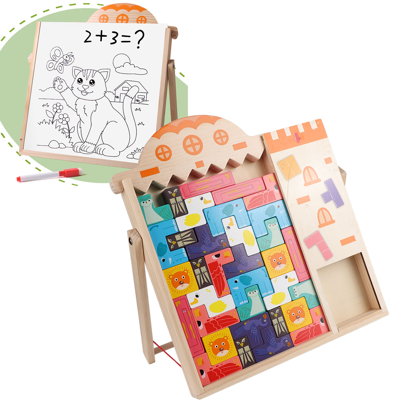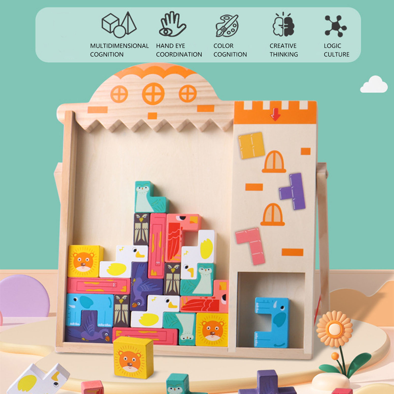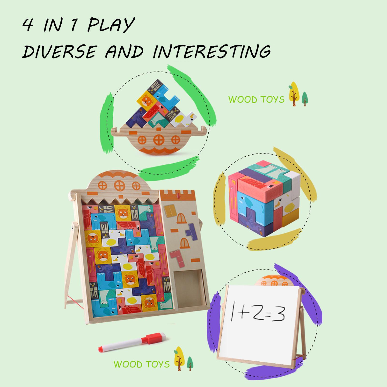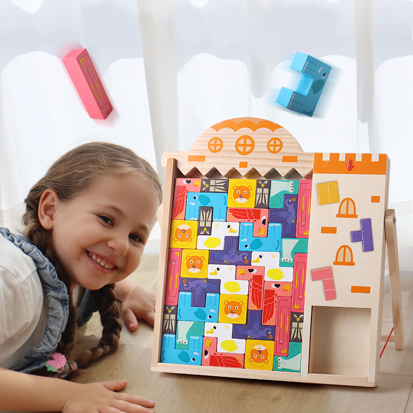1、[Reduce Anxiety] Let children and adults put down electronic products with Russian block to relieve anxious and stress and help to slow down the memory decline of the elderly. 2、[Multifunction] Wooden Russian block is also stacked and balanced toys, with erasable board on back and it is 3D toy to give children happy experience. 3、[Develop Ability] Children try to assemble building blocks on the board, concentrate, develop their brains and intelligence, exercise their logical thinking ability. 4、[Parent Child Games]Adopts geometric patterns and bright colors to keep children and parents busy with different game choices. To practice fine motor skills and stimulate imagination and creativity. 5、[Wooden Material] Russian block is larger particles, polished edges and has water based coatings, so you can rest assured that your children can play wooden puzzles.