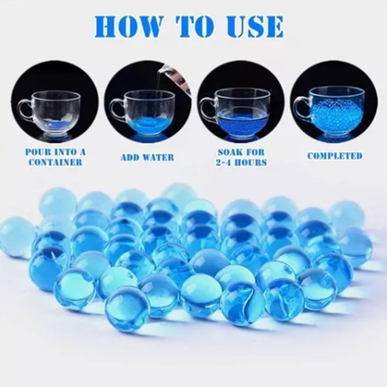 1、50,000 Pieces: There are five packs in total, about 50,000 pieces of gel balls are packed together, meeting your different needs for games. 2、Natural Evaporation: The hydrated gel ball breaks on contact and immediately begins to evaporate. Harmless and environmentally friendly. 3、Safe Material: These gel blaster ammos are made of safe and nontoxic material, about 90% of the composition is water, which is eco friendly. 4、Easy to Use: Put small portion of blaster water beads into container, soak the gel ball in water for at least 2‑4 hours to maximize its size. 5、Wide Application: These blaster ammos are suitable for water spray toy, water games, decorations, vase fillings, scientific experiments, DIY art projects, etc.