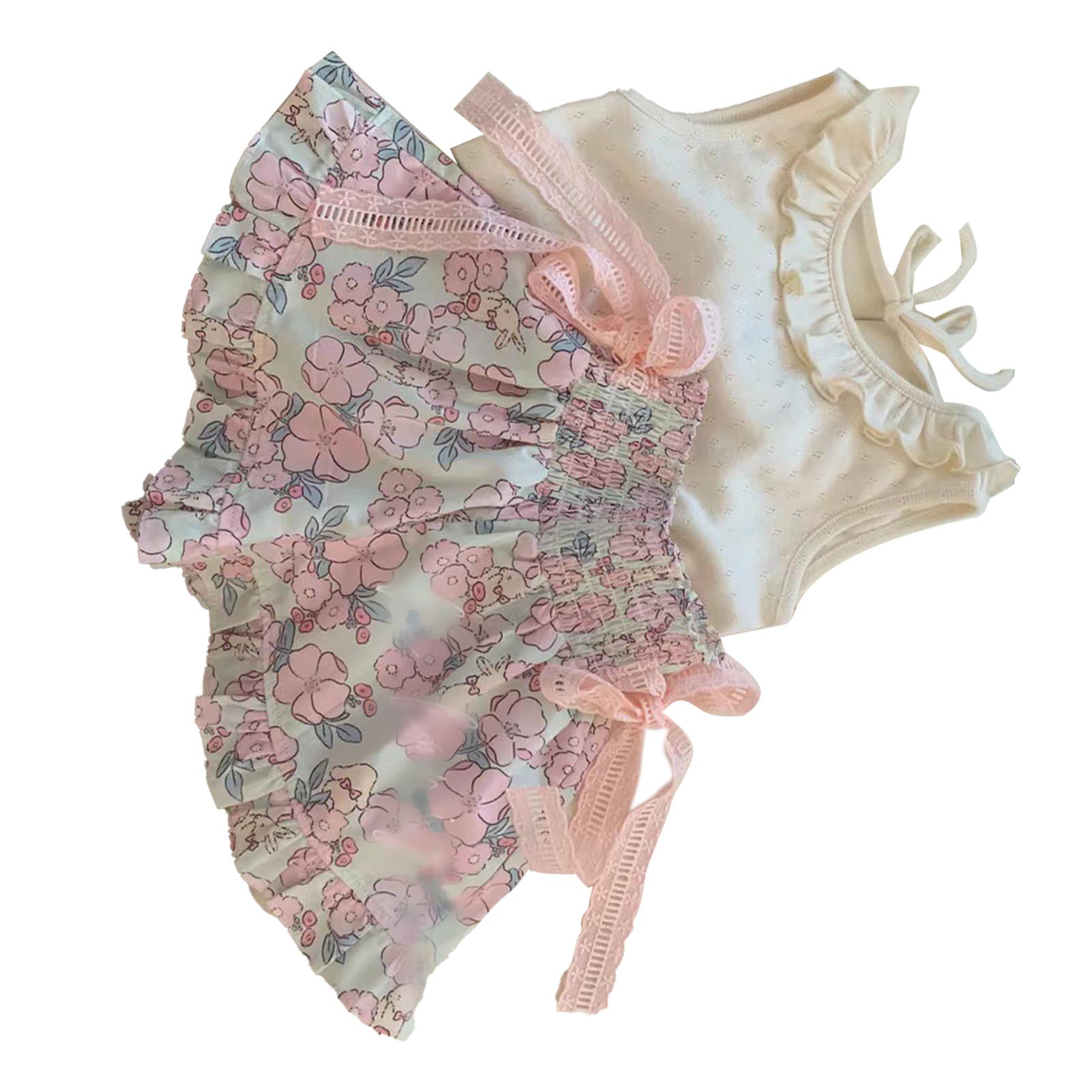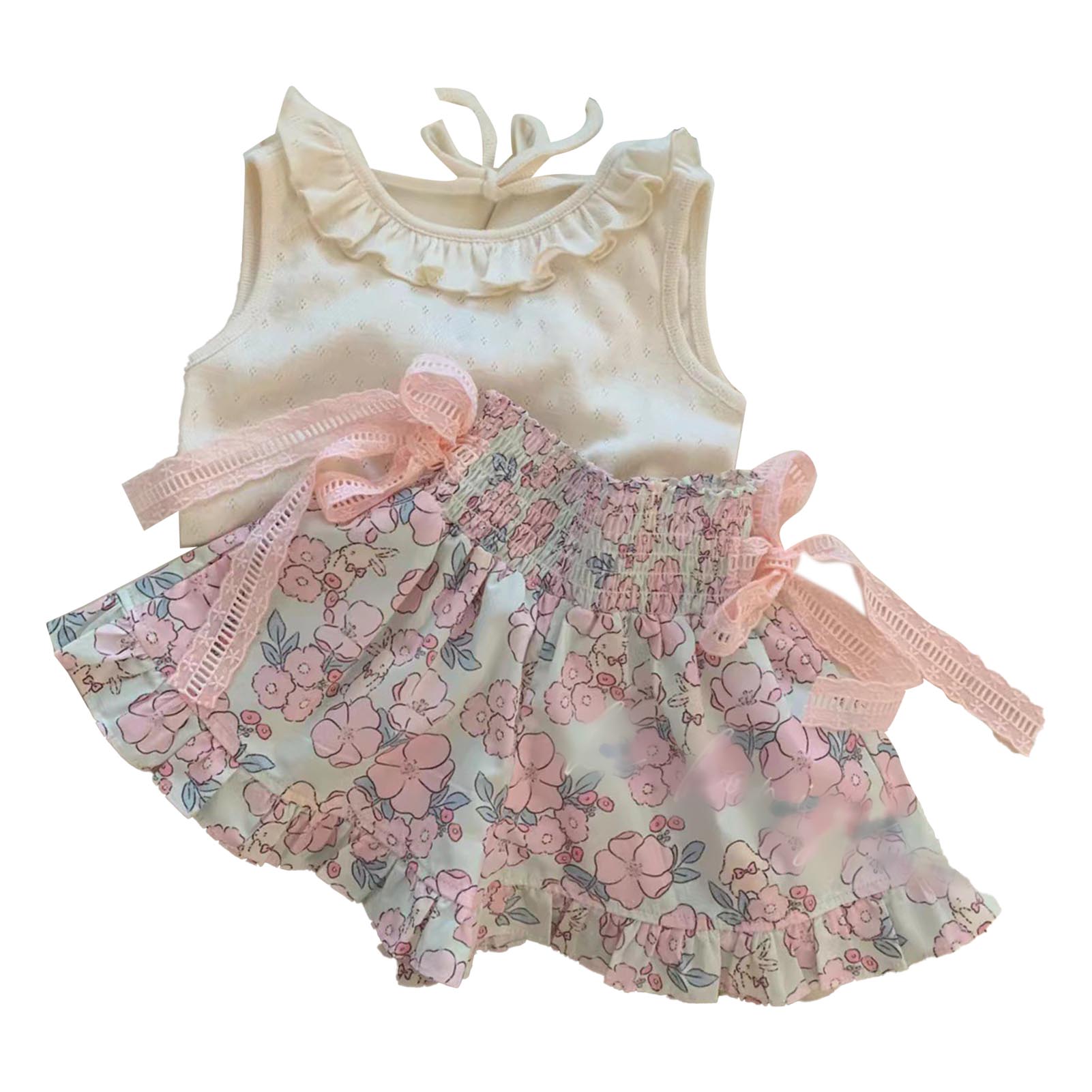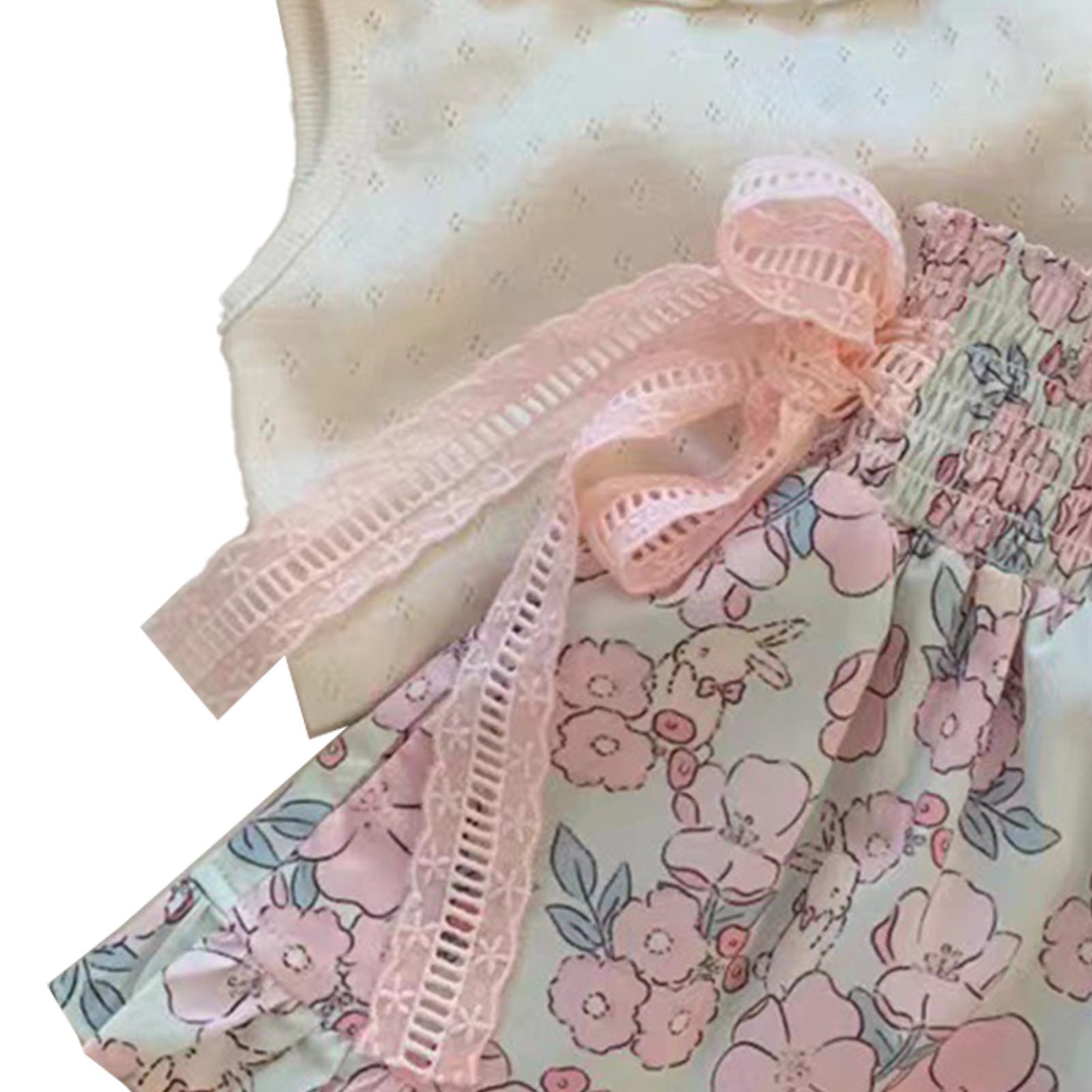1、FLORAL PATTERN: Adopting a foreign princess sweet floral pattern design, the set is cute and elegant, making the baby more lovely and fashionable. 2、SLEEVELESS TOP: Summer sleeveless tank design, breathable and comfortable, suitable for wearing in hot weather. 3、SKIRT PANTS: The design of the set skirt pants is convenient for baby's activities and more convenient to match. 4、APPLICABLE SCENARIO: This skirt is suitable for various scenes, such as daily wear, parties, etc., to increase the charm of the baby. 5、COTTON MATERIAL: Made of premium cotton fabric, this sleeveless set is soft and comfortable, providing thoughtful care for babies.