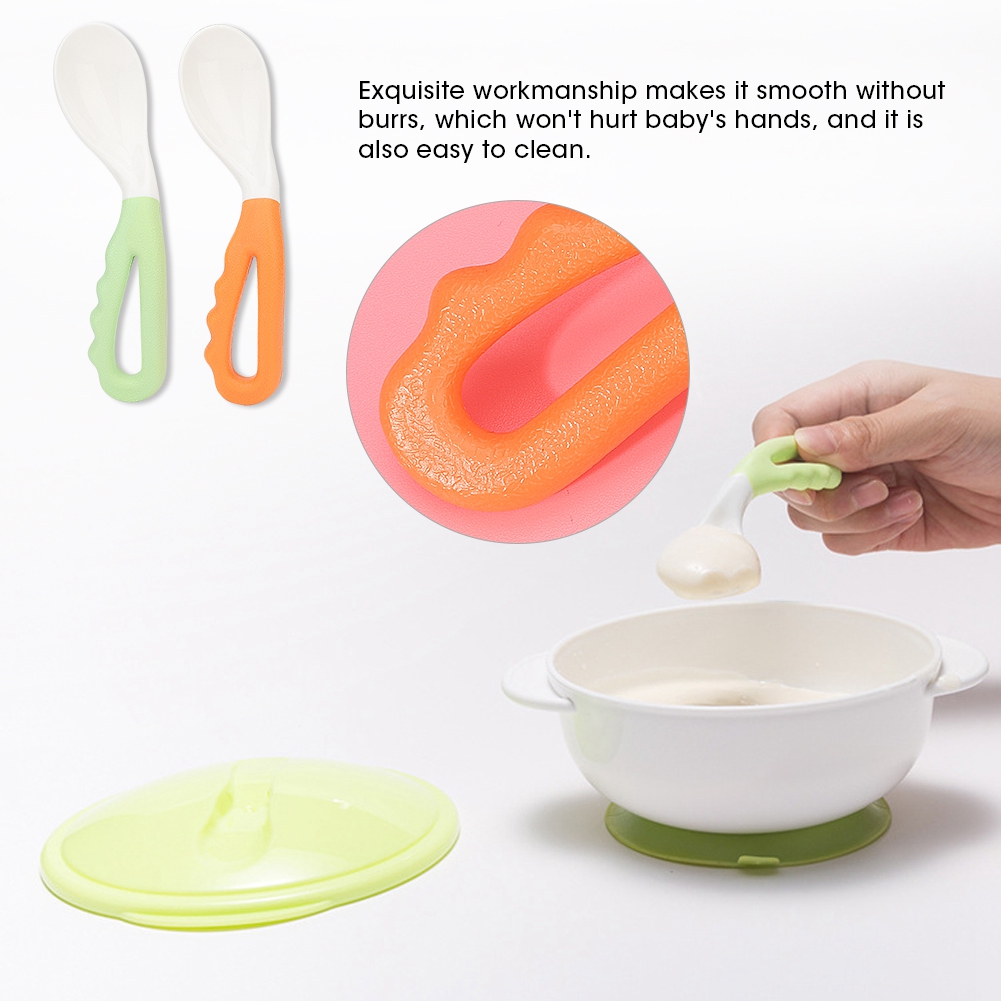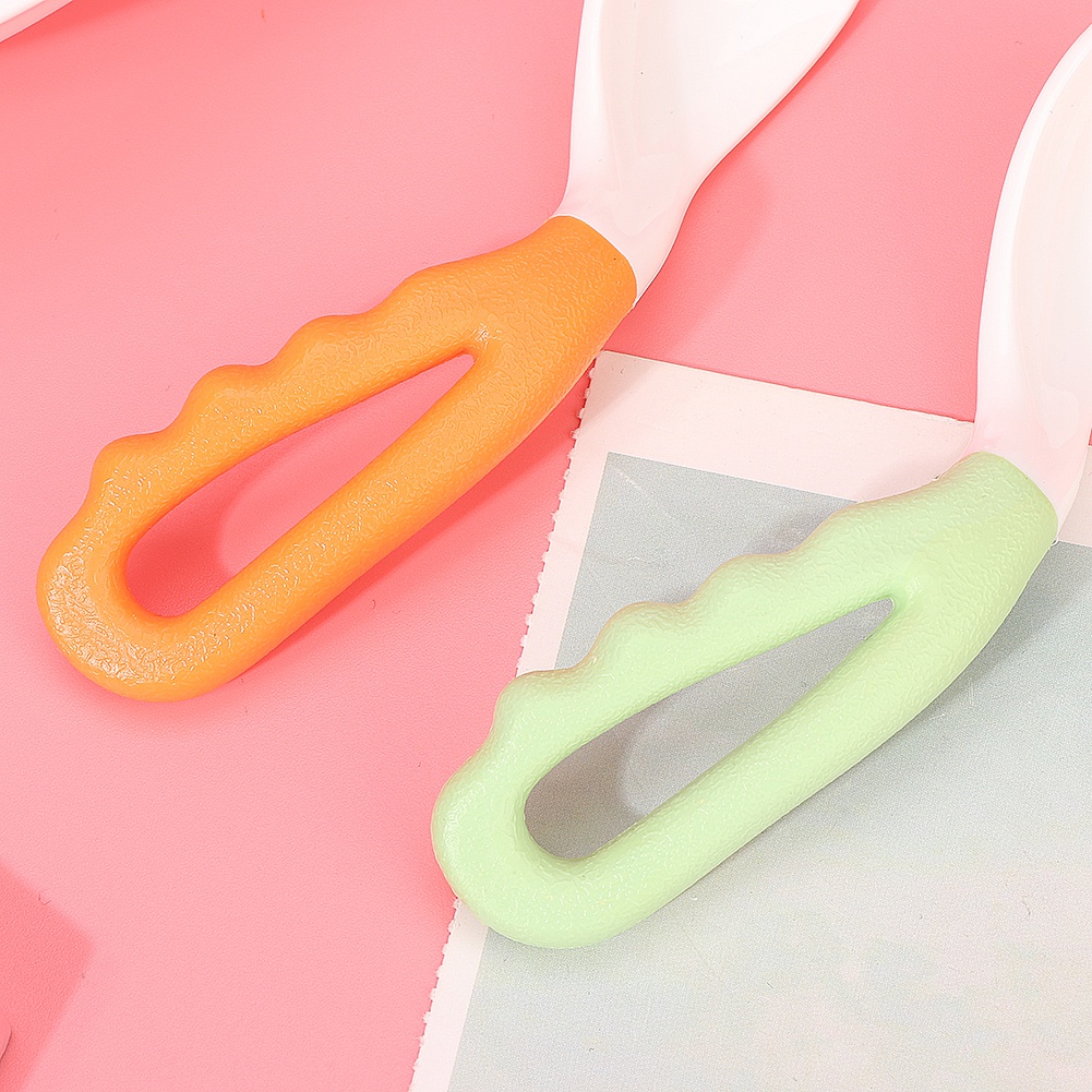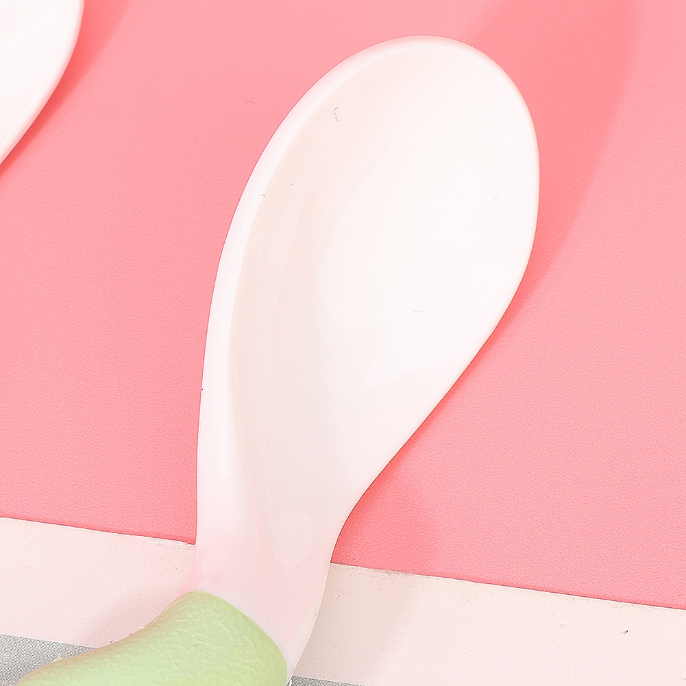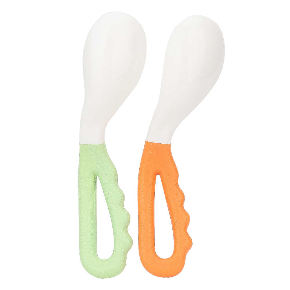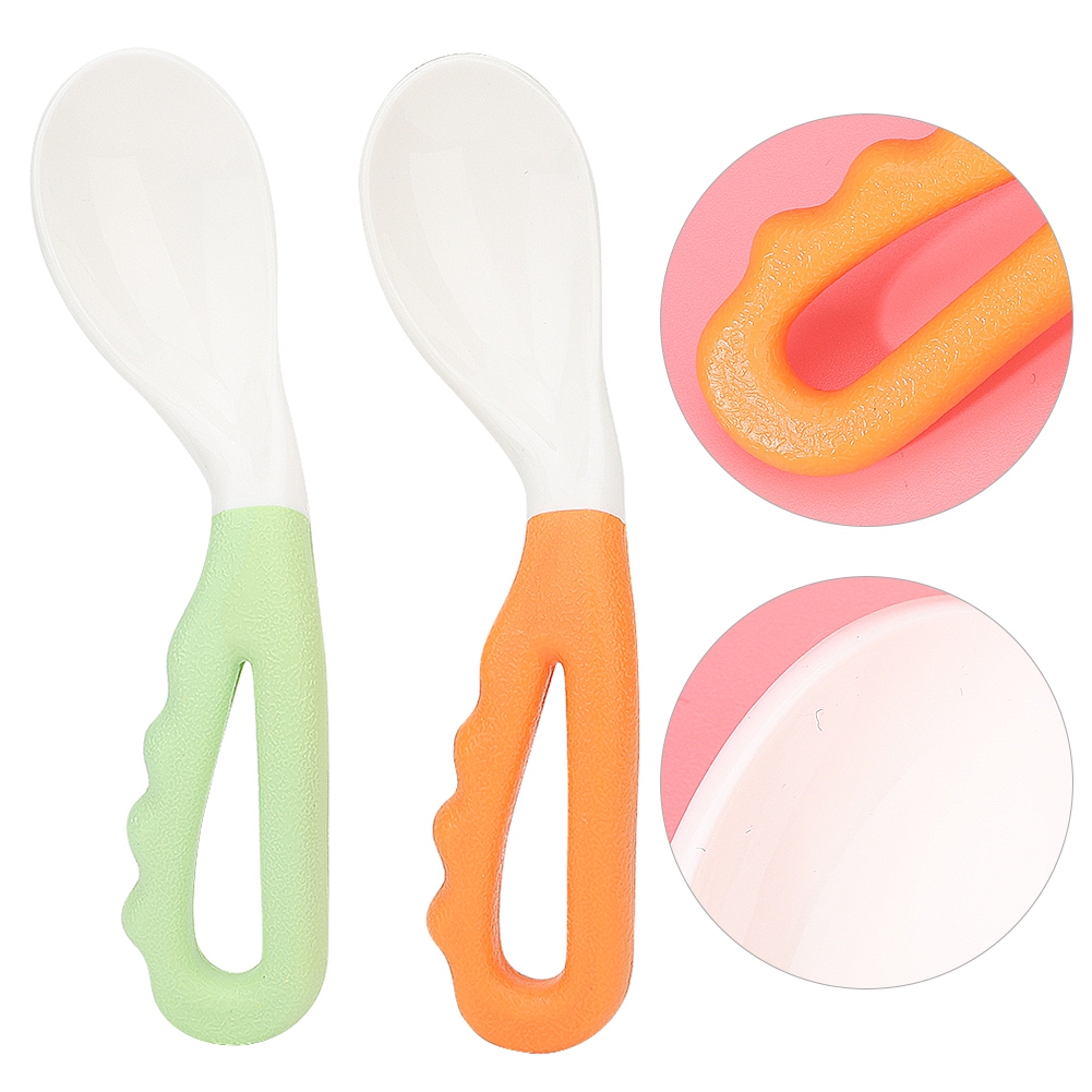 1、Quality PP material makes the spoon soft, non-toxic and safe for baby to use 2、Ergonomic handle with granular texture, it can increased friction and prevent slipping 3、Flared and hollow handle, which is is easy to hold. 4、Flat and rounded spoon head, which is not easy to scratch mouth. 5、Exquisite workmanship makes it smooth without burrs, which won't hurt baby's hands, and it is also easy to clean.