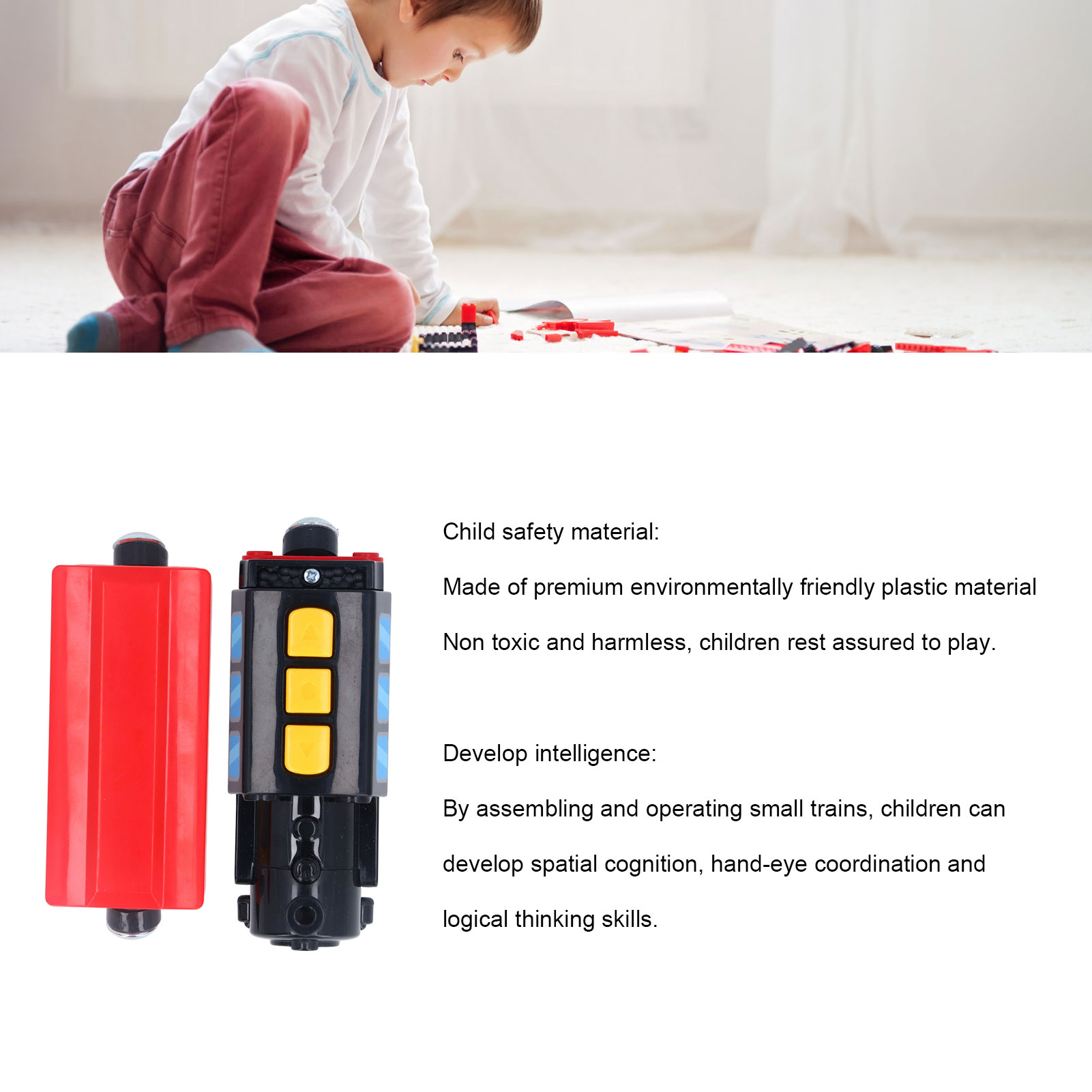 1、MAGNETIC CONNECTION DESIGN: The small train features an innovative magnetic connection method, allowing children to easily assemble and disassemble the train. 2、ELECTRIC OPERATION: This small train is powered by electricity, automatically moving forward, providing children with more fun and excitement. 3、CHILD SAFE MATERIAL: Made of premium and environmentally friendly plastic material, this train toy is non toxic and harmless, ensuring the safety of children. 4、INTELLECTUAL DEVELOPMENT: Through assembling and operating the small train, children can develop spatial cognition, hand eye coordination, and logical thinking abilities. 5、HEALTHY ENTERTAINMENT: This electric small train not only allows children to play indoors but also helps to exercise their physical strength and brain agility.