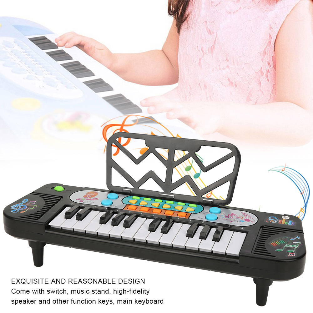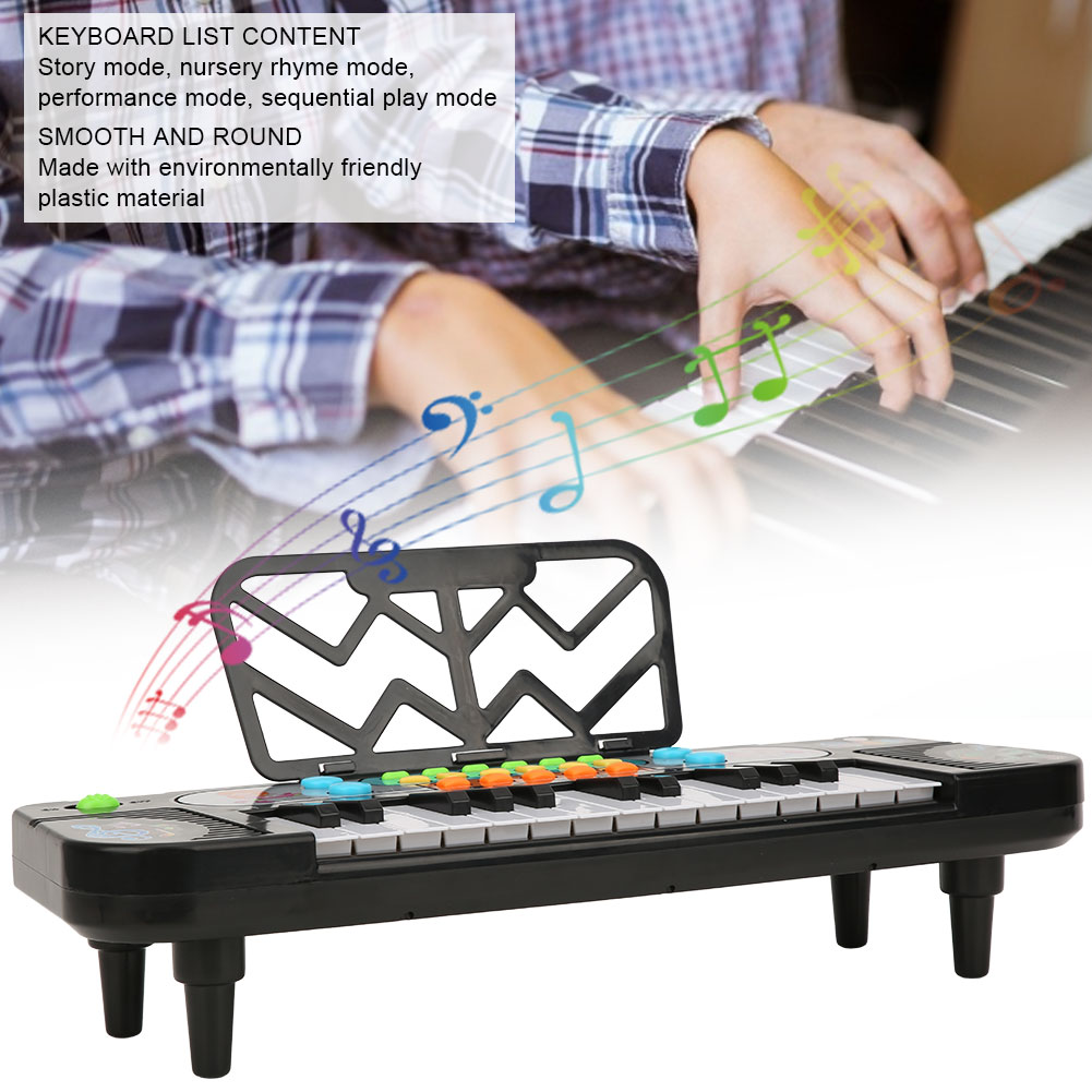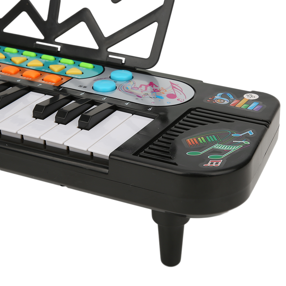 1、Exquisite and reasonable design, switch, music stand, high‑fidelity speaker and other function keys, main keyboard. 2、Keyboard list content: story mode, nursery rhyme mode, performance mode, sequential play mode. 3、Percussion keys have instrument mode, animal sounds. 4、Environmentally friendly plastic material, smooth and round around the product, not hurting hands. 5、Suitable for beginners to use to practice, so that your children can enjoy wonderful music. Children can learn, play, and make children fall in love with music.