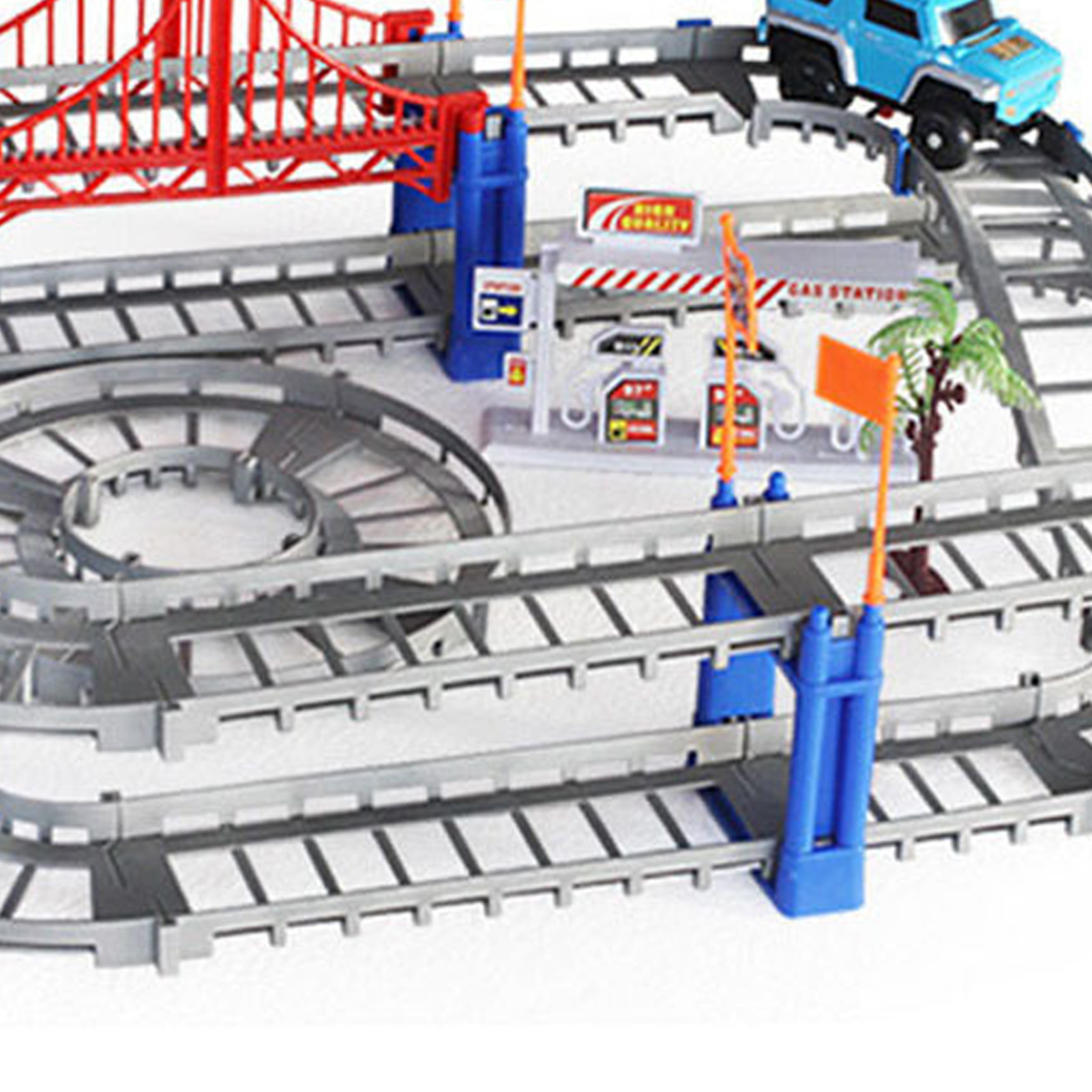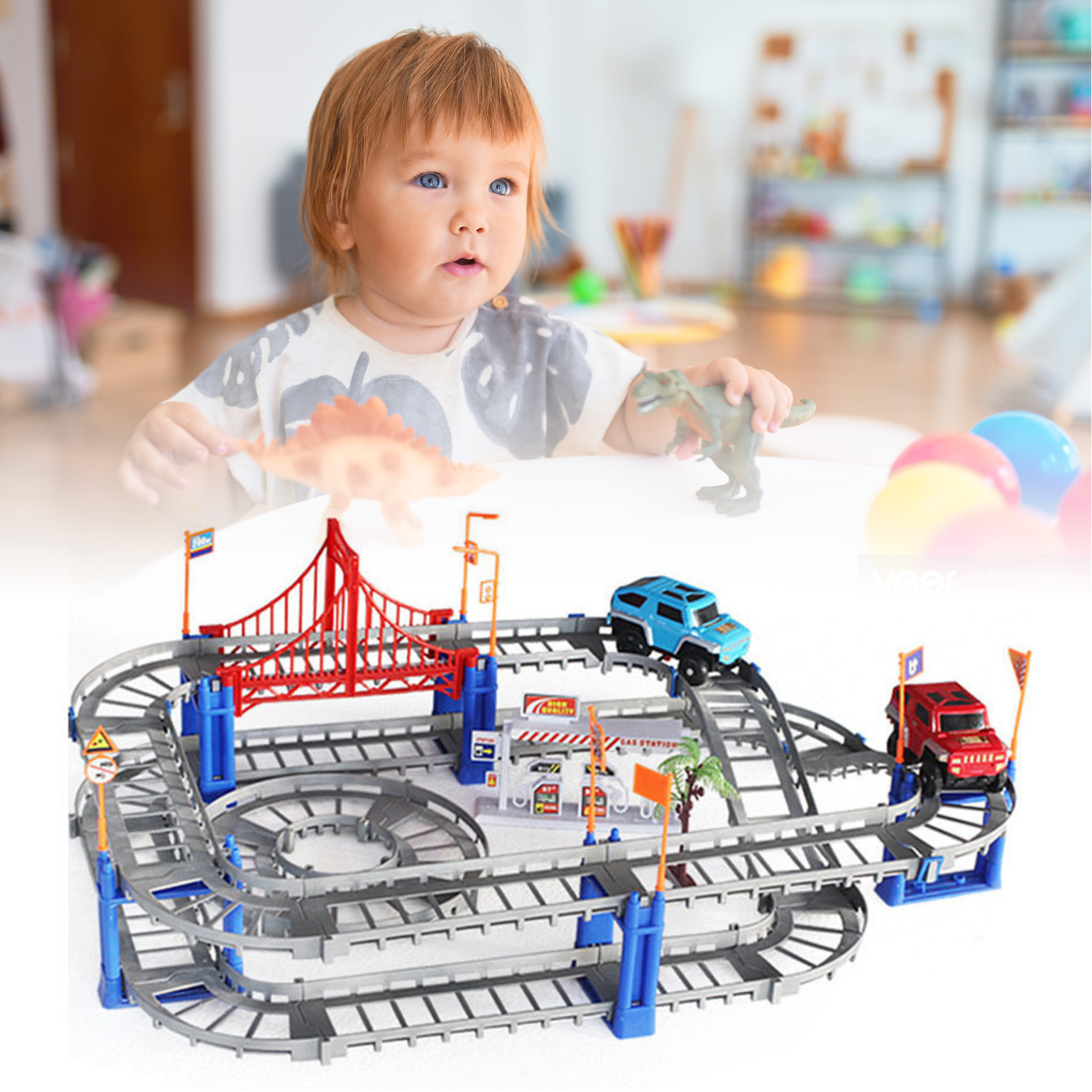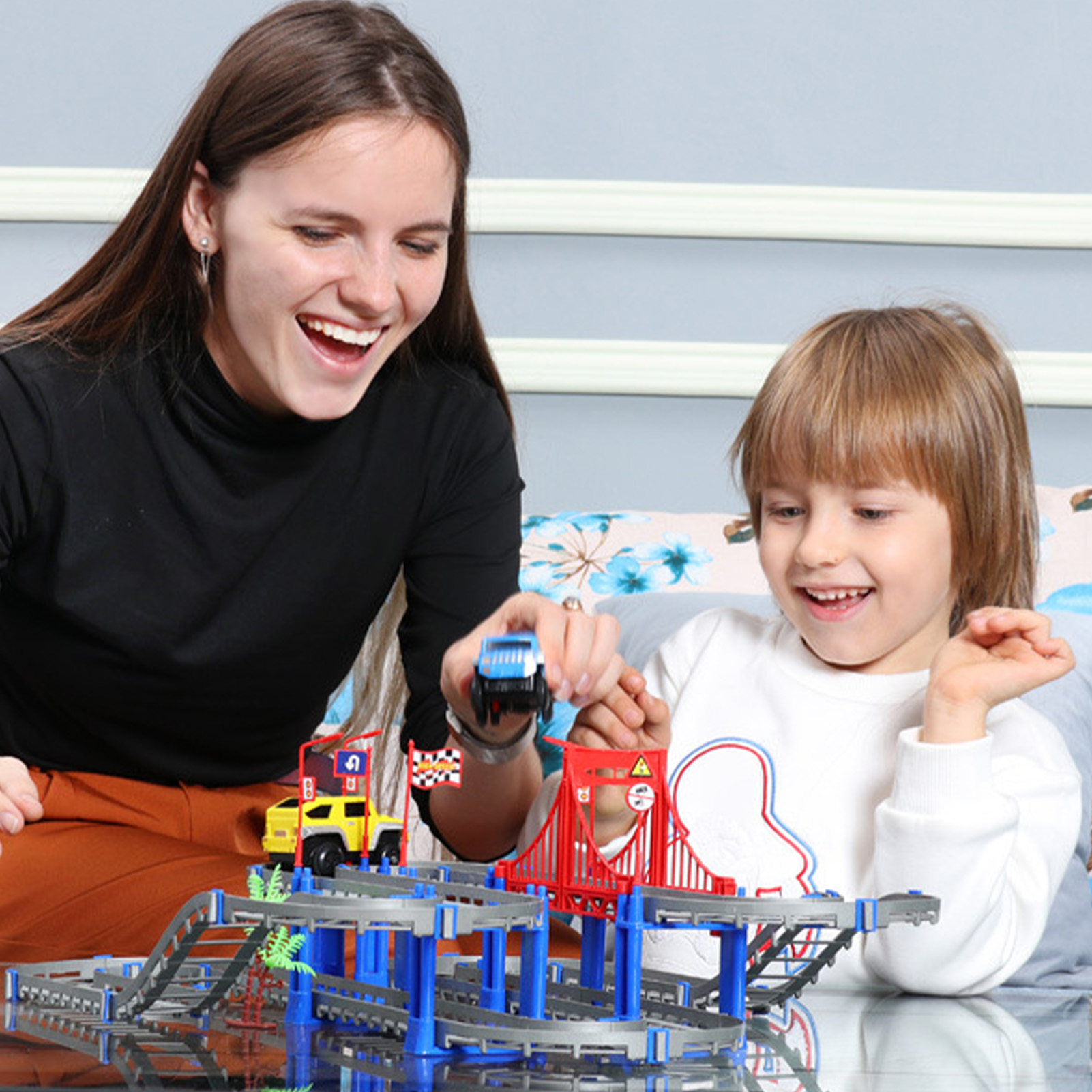 1、EXQUISITE WORKMANSHIP: Train track toy is exquisitely crafted with slippy and burr free tracks that won't hurt your hands or cause harm to children. 2、REMOVABLE TRACK: Race car track toys details are clearly visible, along with brightly colored bridges, signs, and removable tracks. 3、RICH TRAFFIC SIGNS: Electric train track toy has a wealth of traffic signs to increase children's awareness of safety. 4、EXIT SNAP LOCK STRUCTURE: Race track toys use EXIT locking structure, which is conducive to a more stable and solid track connection. 5、EDUCATIONAL TOY: Train track playset can not only improve children's imagination and creativity, but also can learn many skills.