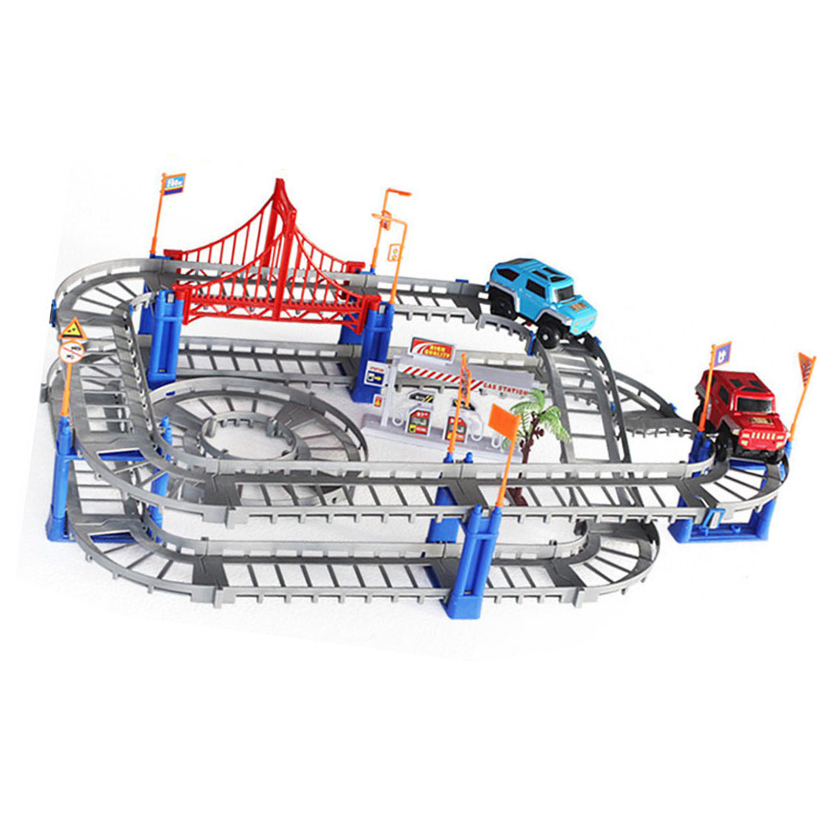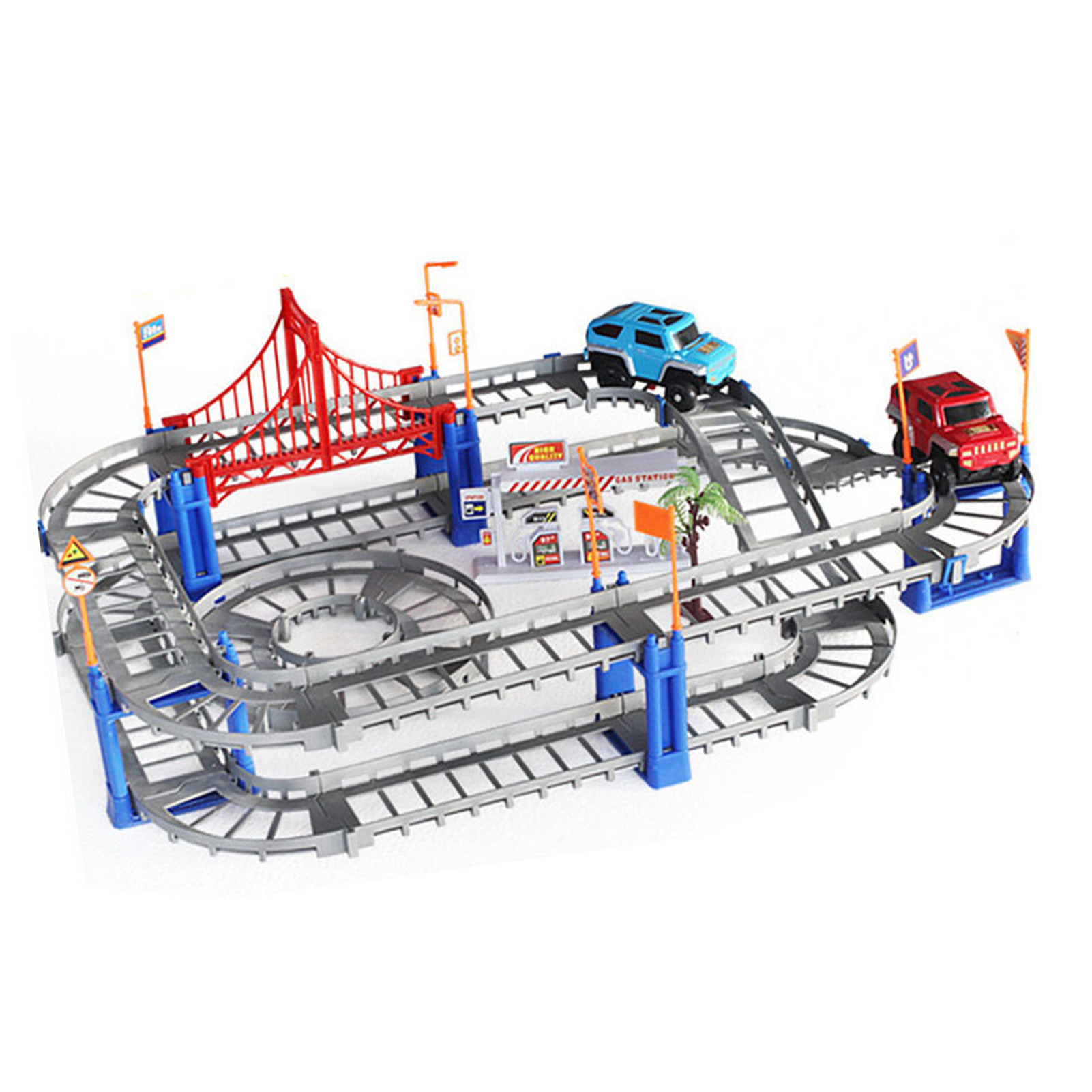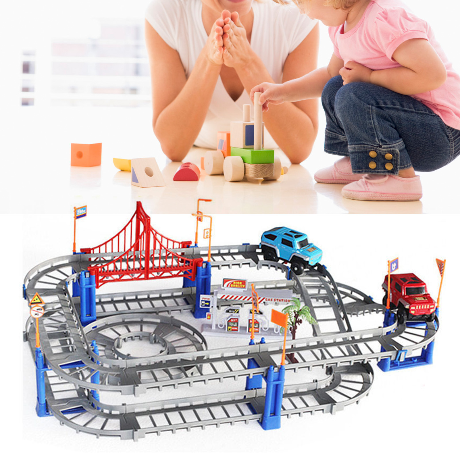 1、EXQUISITE WORKMANSHIP: Train track toy is exquisitely crafted with slippy and burr free tracks that won't hurt your hands or cause harm to children. 2、REMOVABLE TRACK: Race car track toys details are clearly visible, along with brightly colored bridges, signs, and removable tracks. 3、RICH TRAFFIC SIGNS: Electric train track toy has a wealth of traffic signs to increase children's awareness of safety. 4、EXIT SNAP LOCK STRUCTURE: Race track toys use EXIT locking structure, which is conducive to a more stable and solid track connection. 5、EDUCATIONAL TOY: Train track playset can not only improve children's imagination and creativity, but also can learn many skills.
