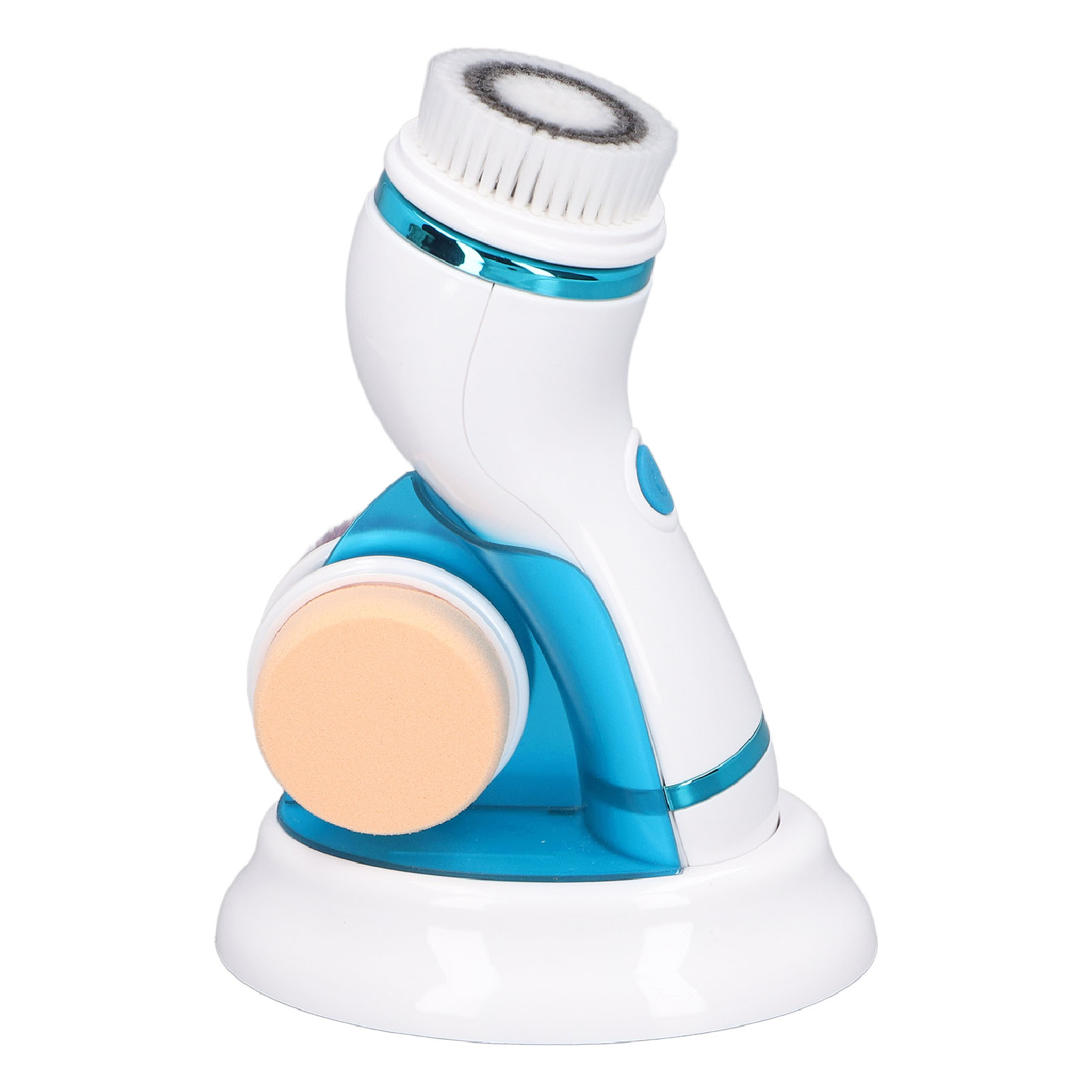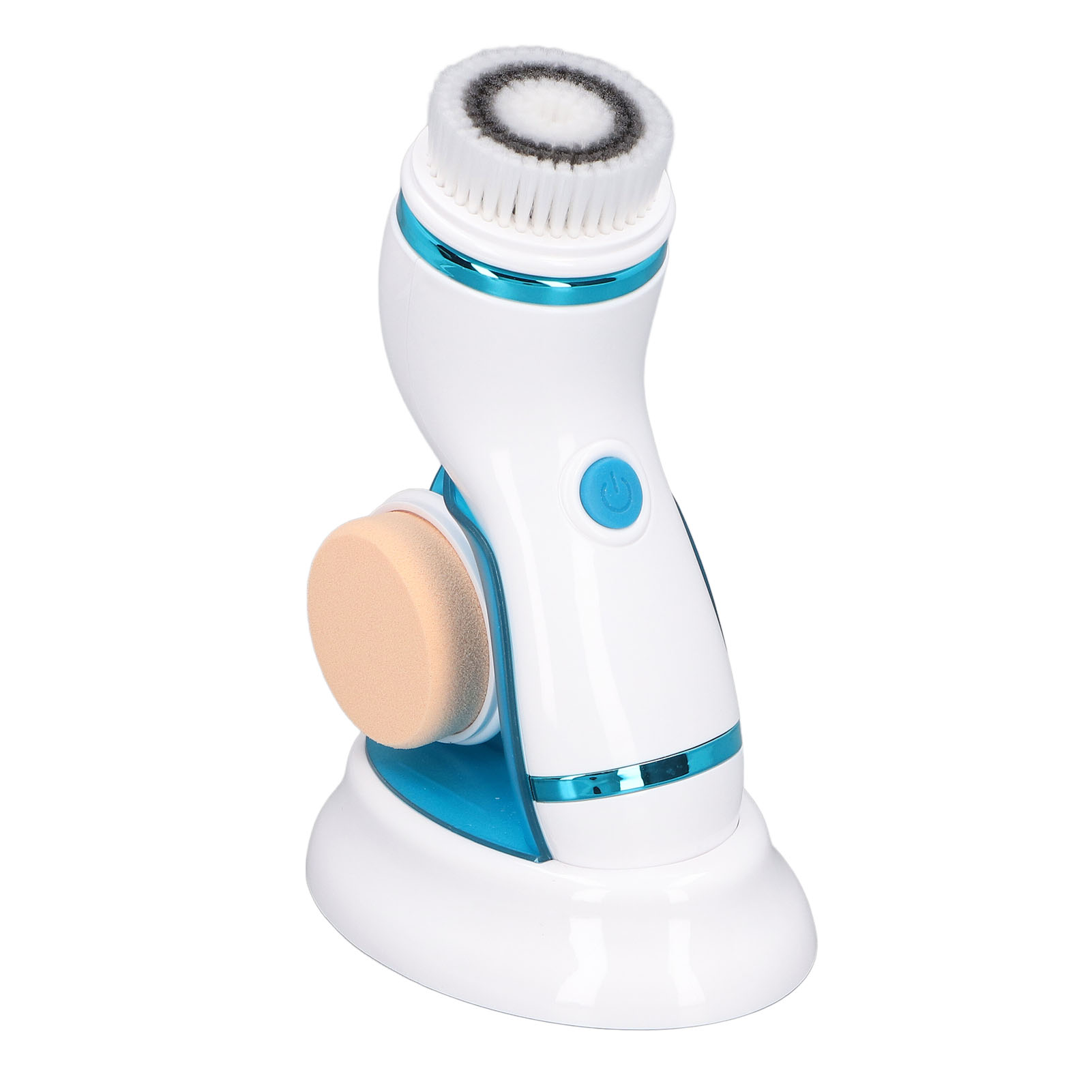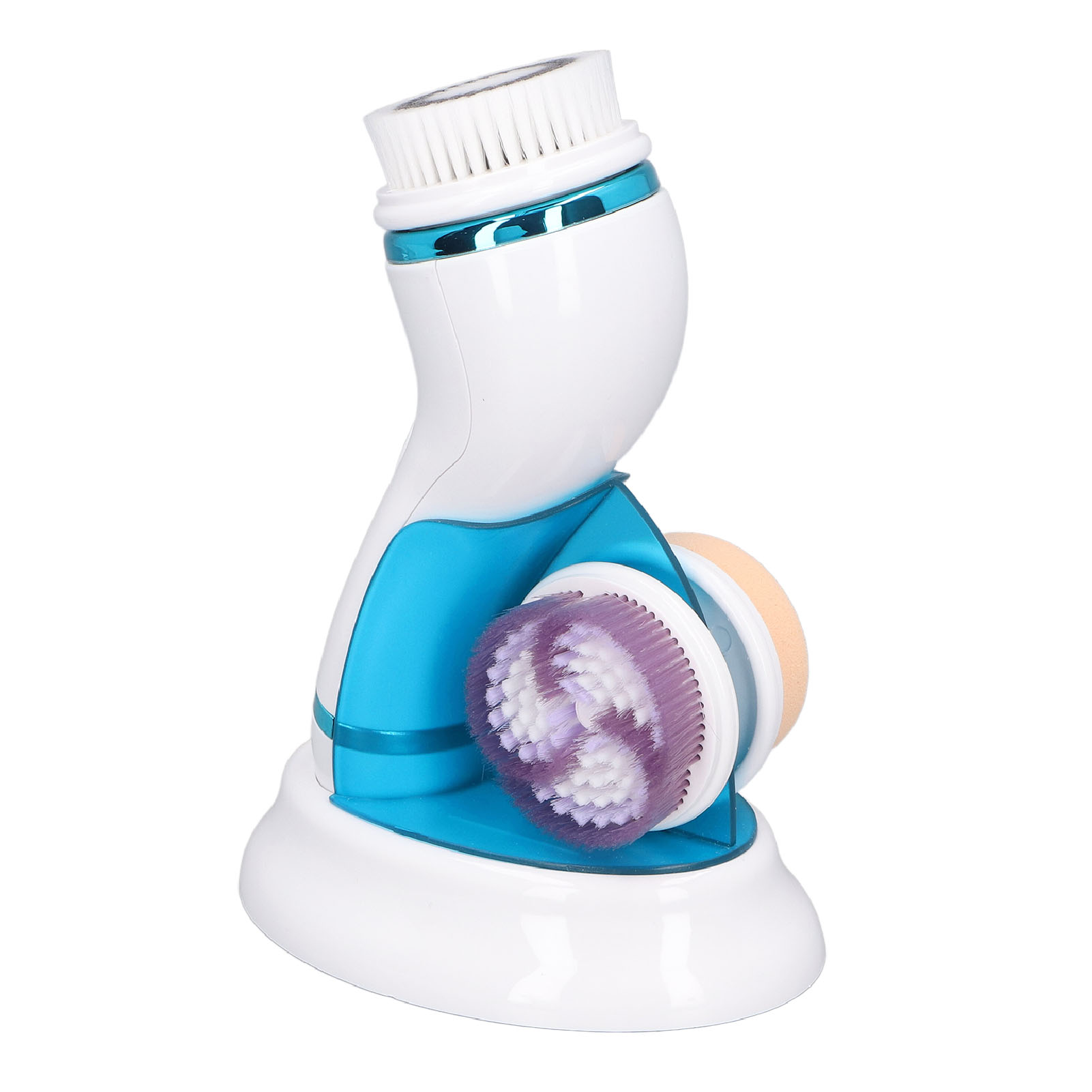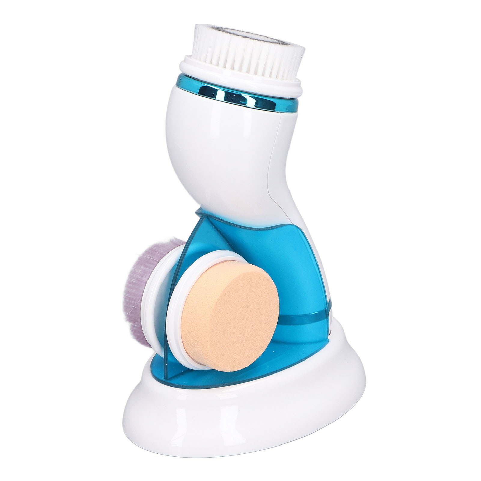Facial Cleansing Brush Vibration Massage Promote Circulation Electric Face Wash Brush with 3 Heads Blue