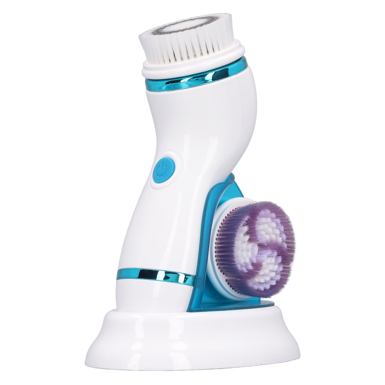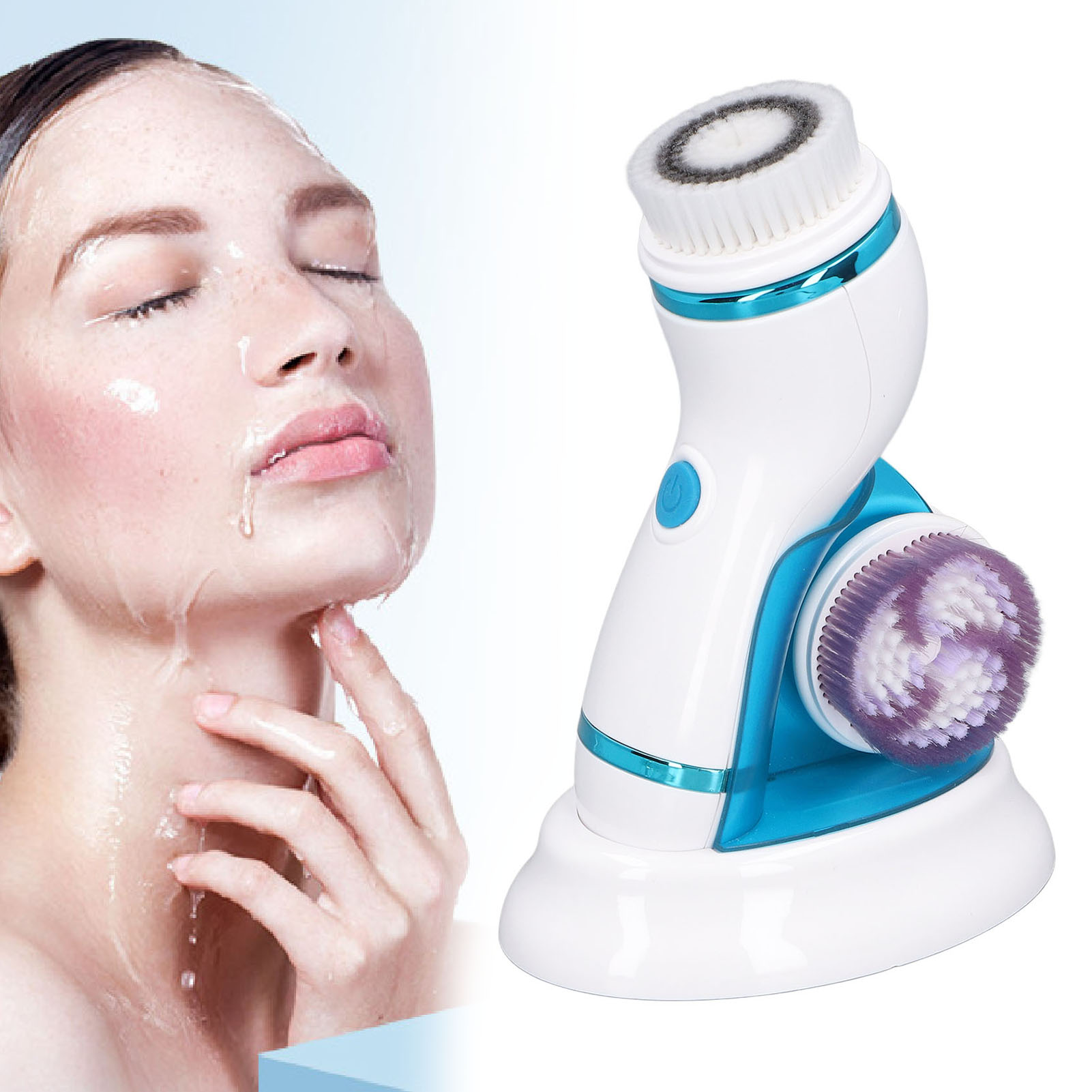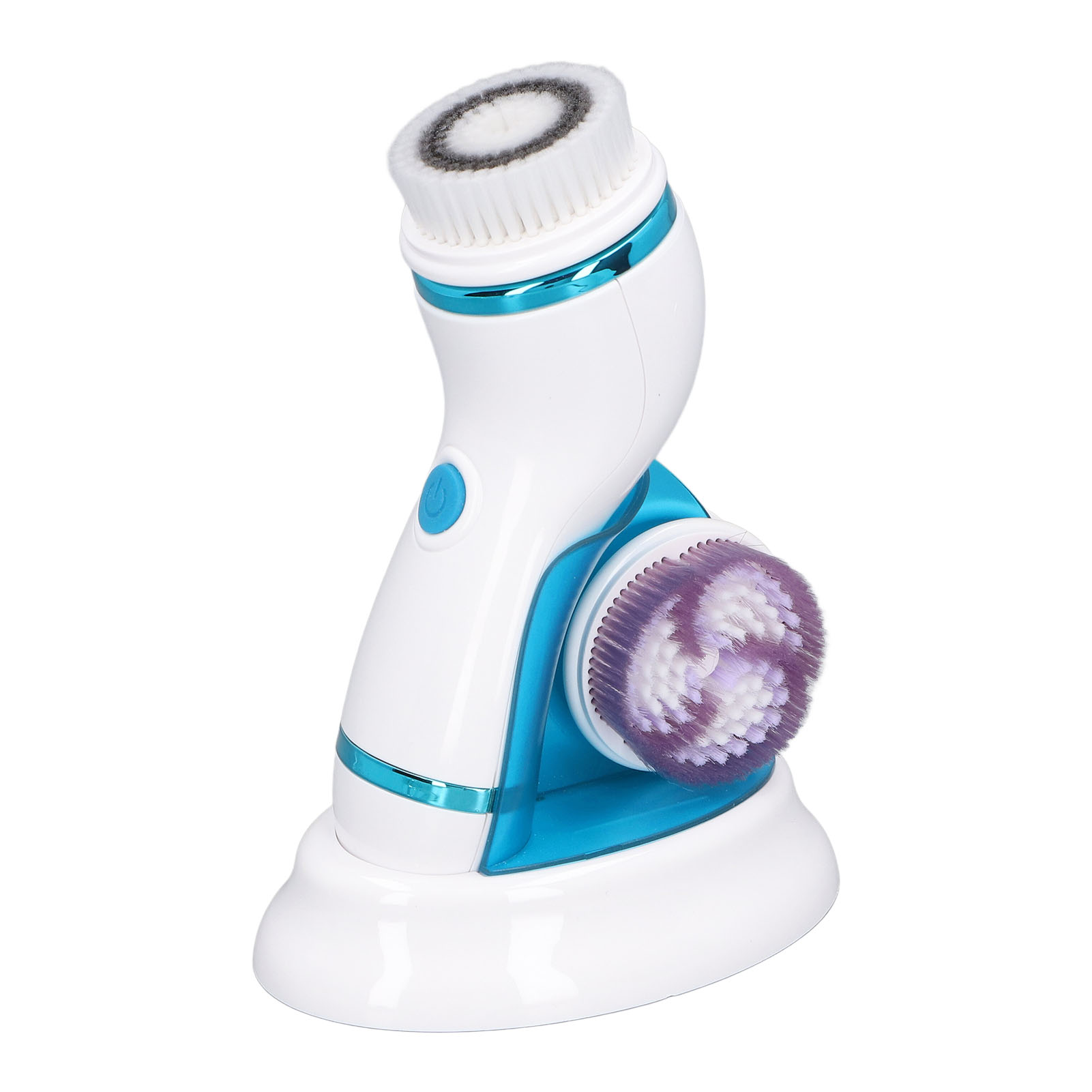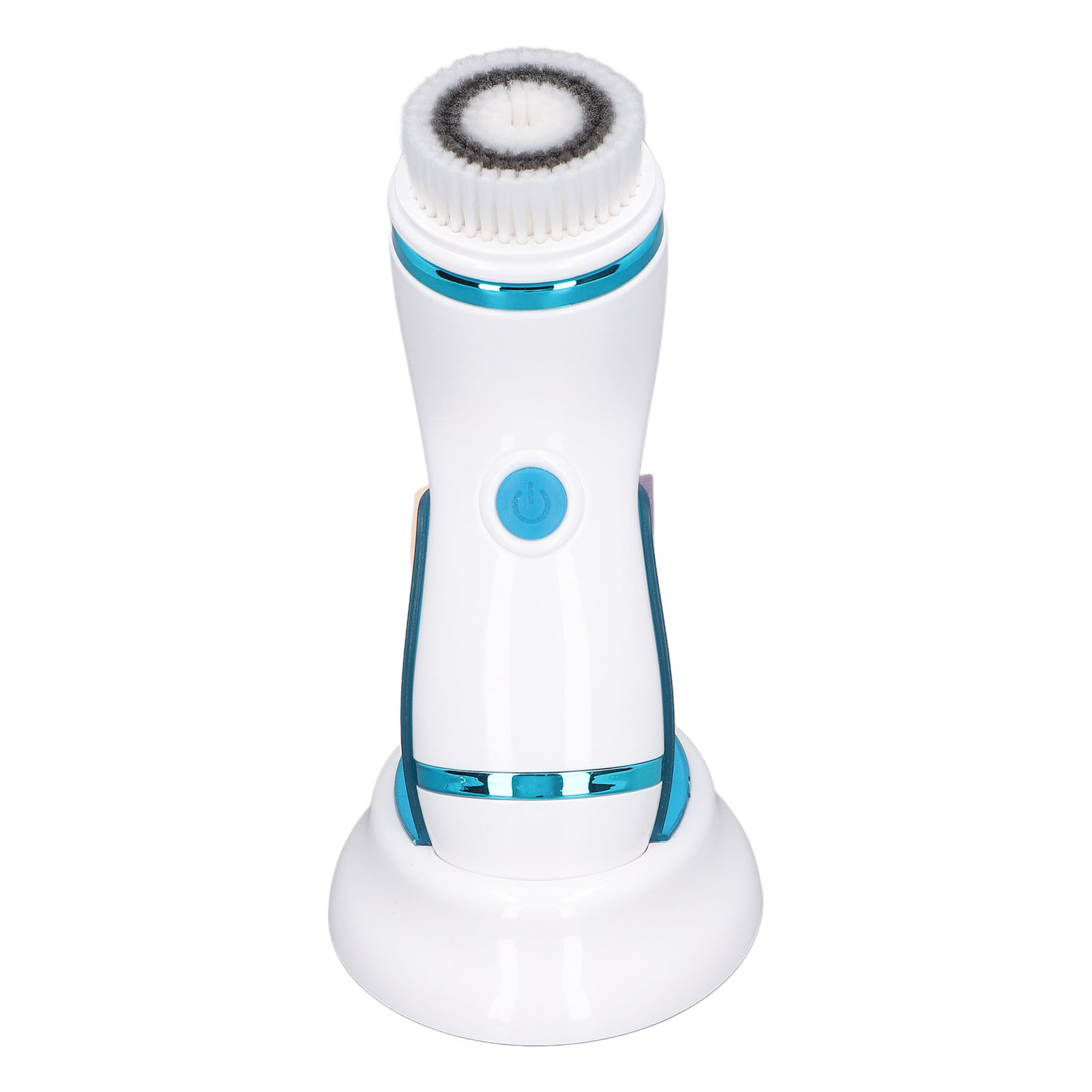 Facial Cleansing Brush Vibration Massage Promote Circulation Electric Face Wash Brush with 3 Heads Blue