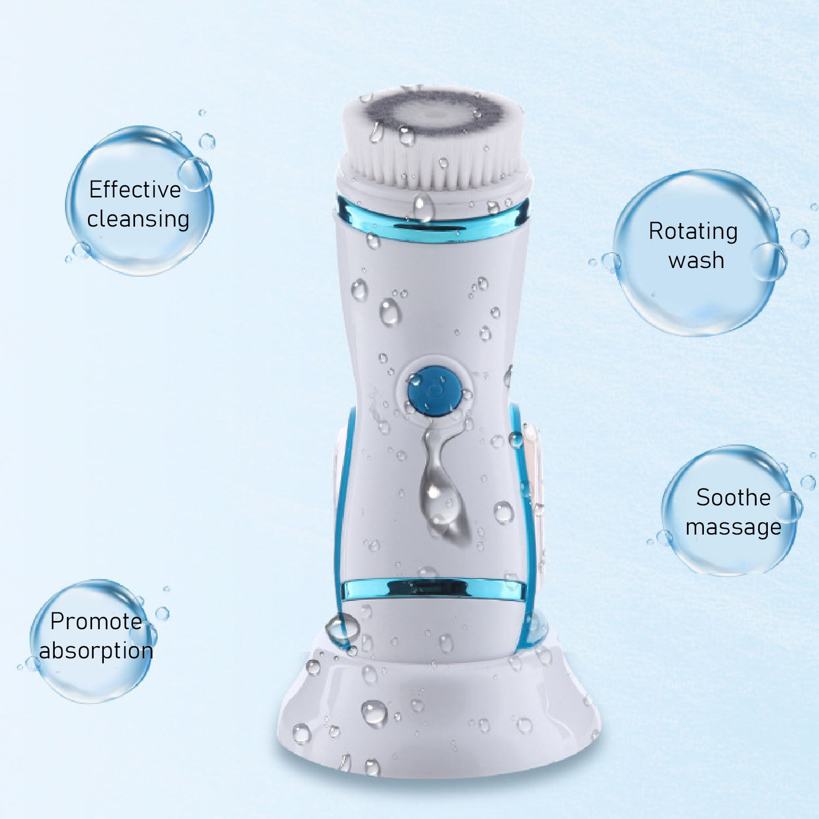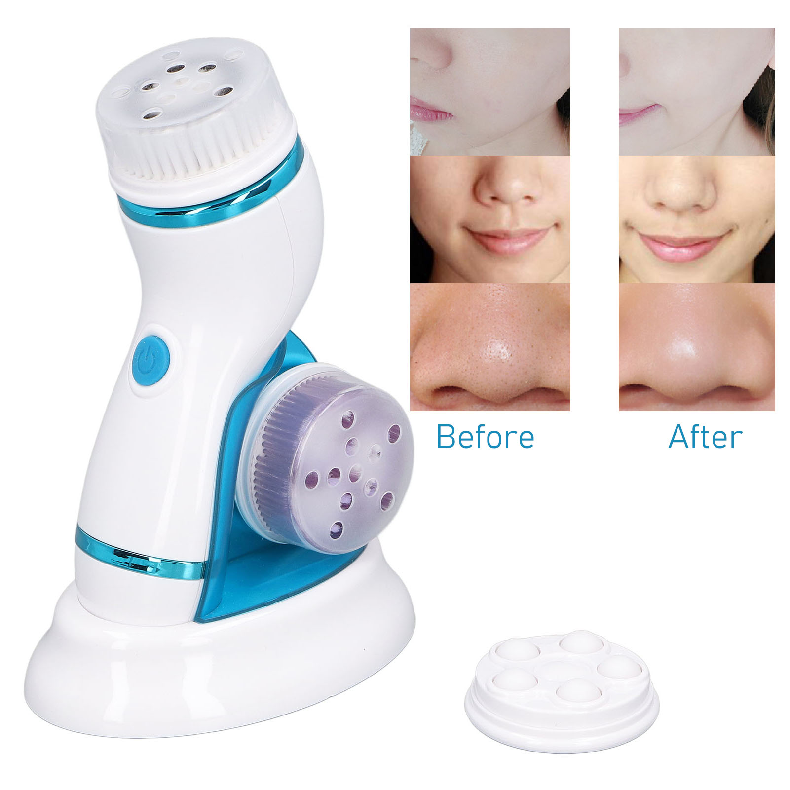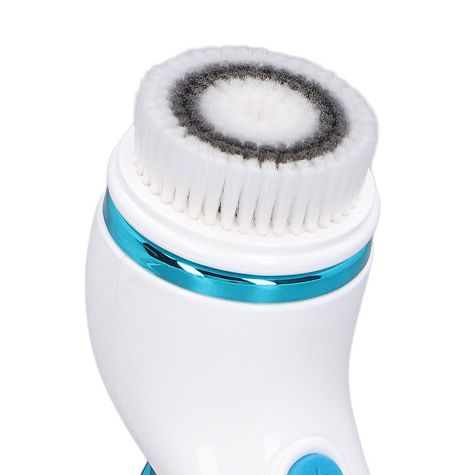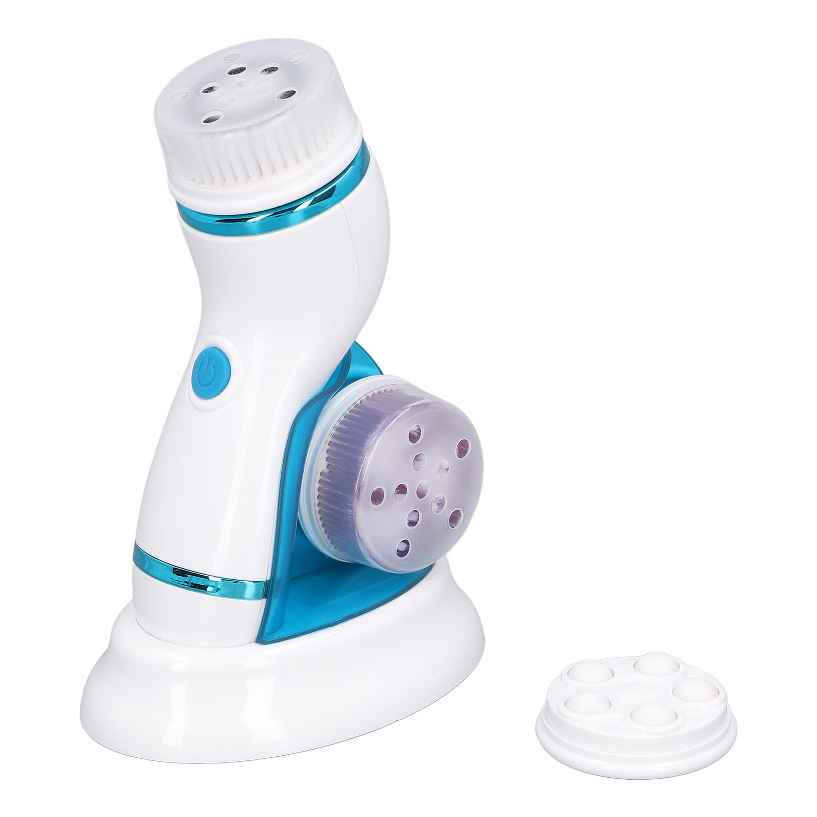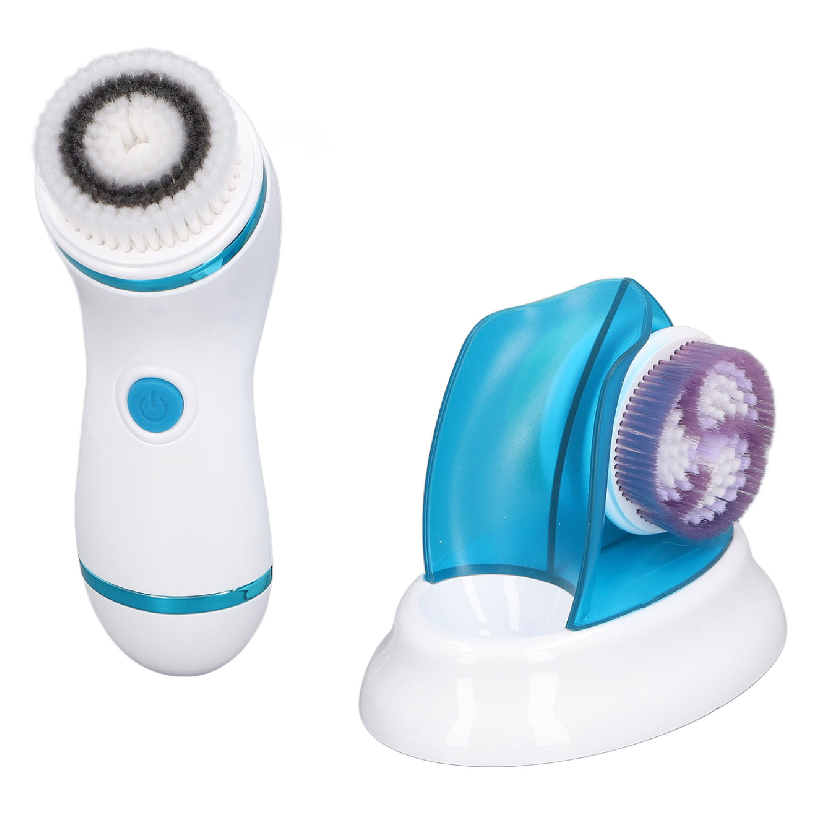 Facial Cleansing Brush Vibration Massage Promote Circulation Electric Face Wash Brush with 3 Heads Blue