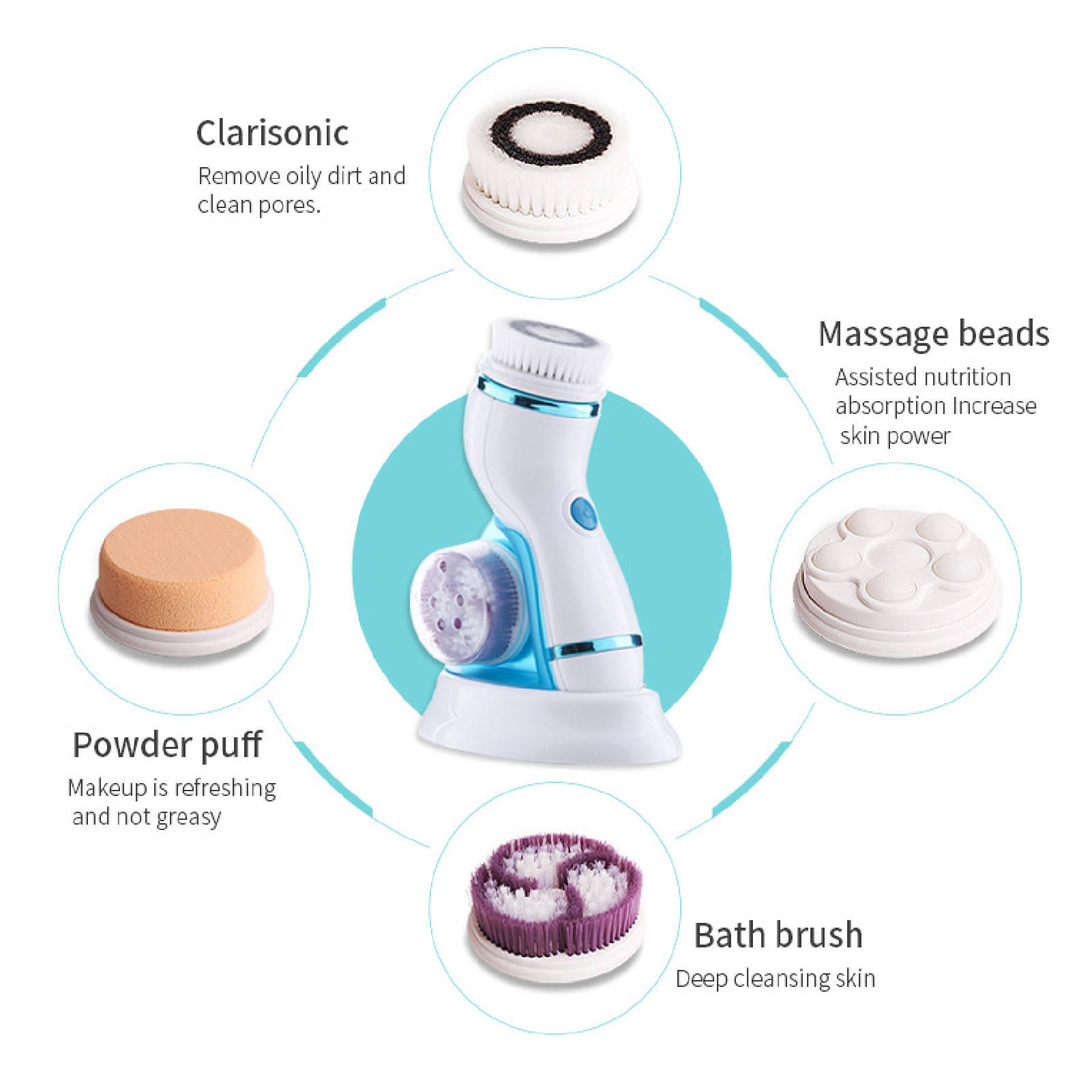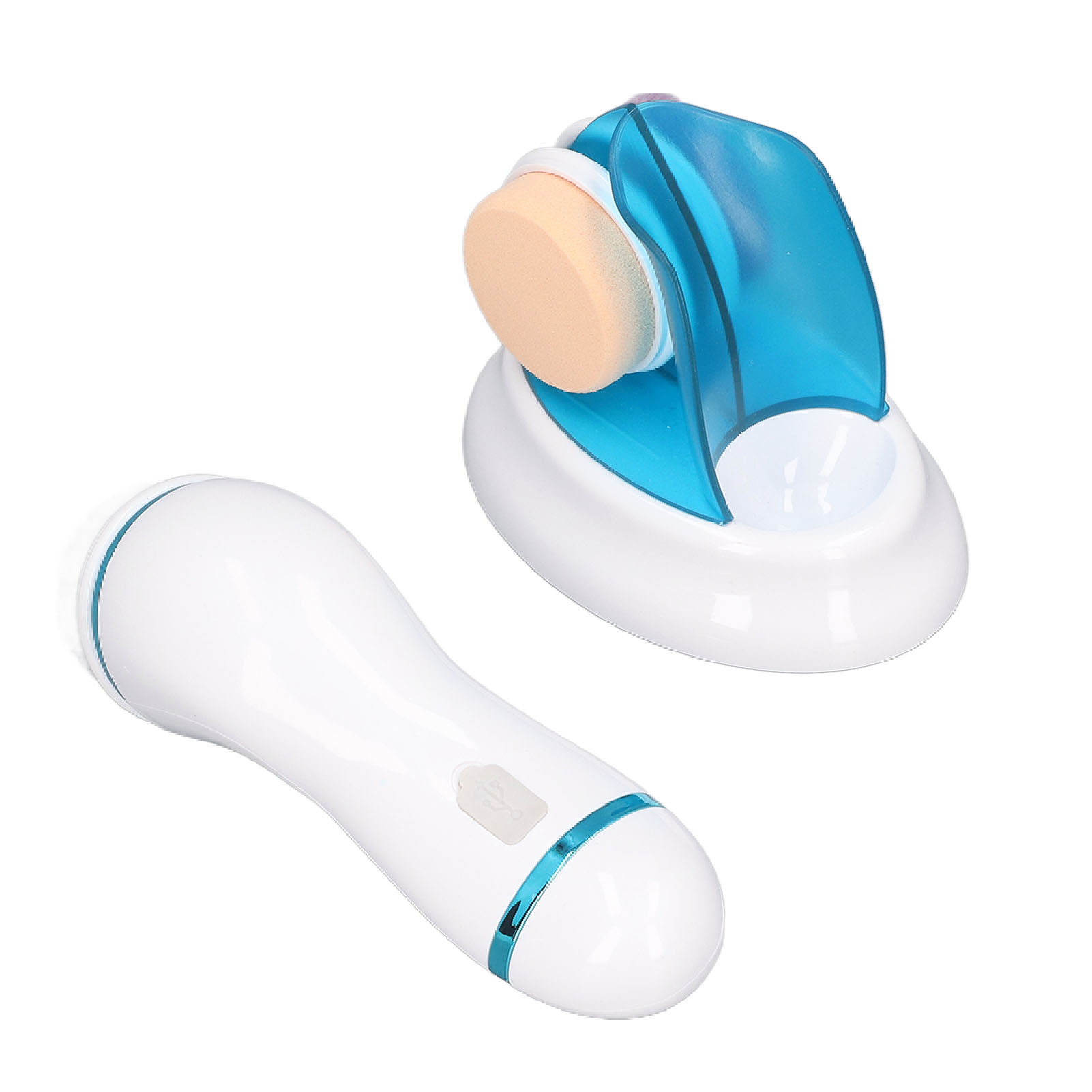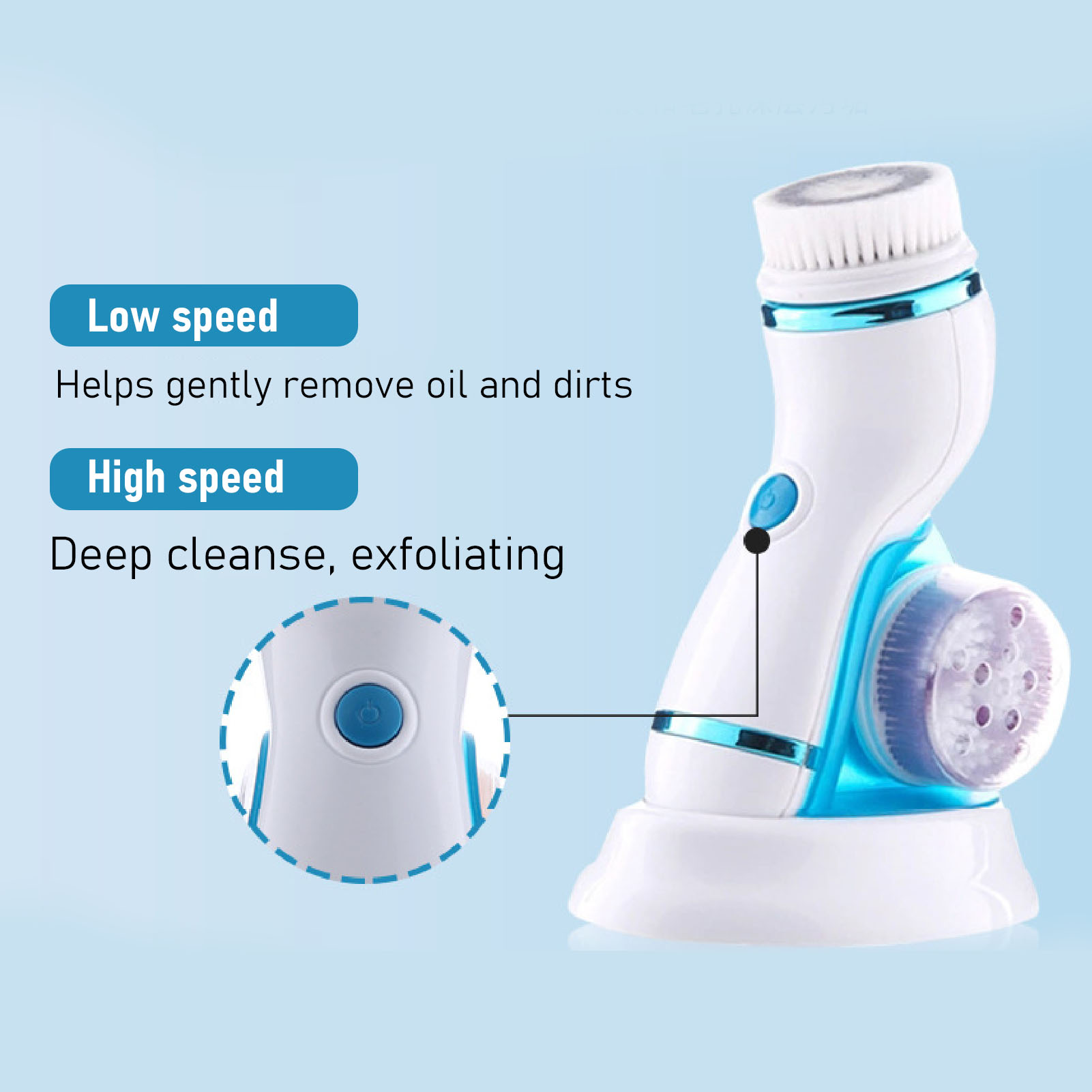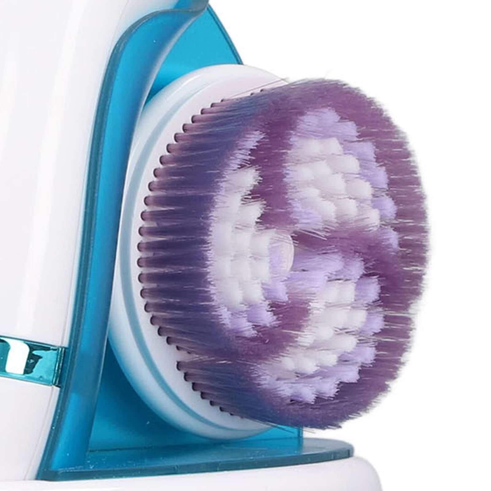 Facial Cleansing Brush Vibration Massage Promote Circulation Electric Face Wash Brush with 3 Heads Blue