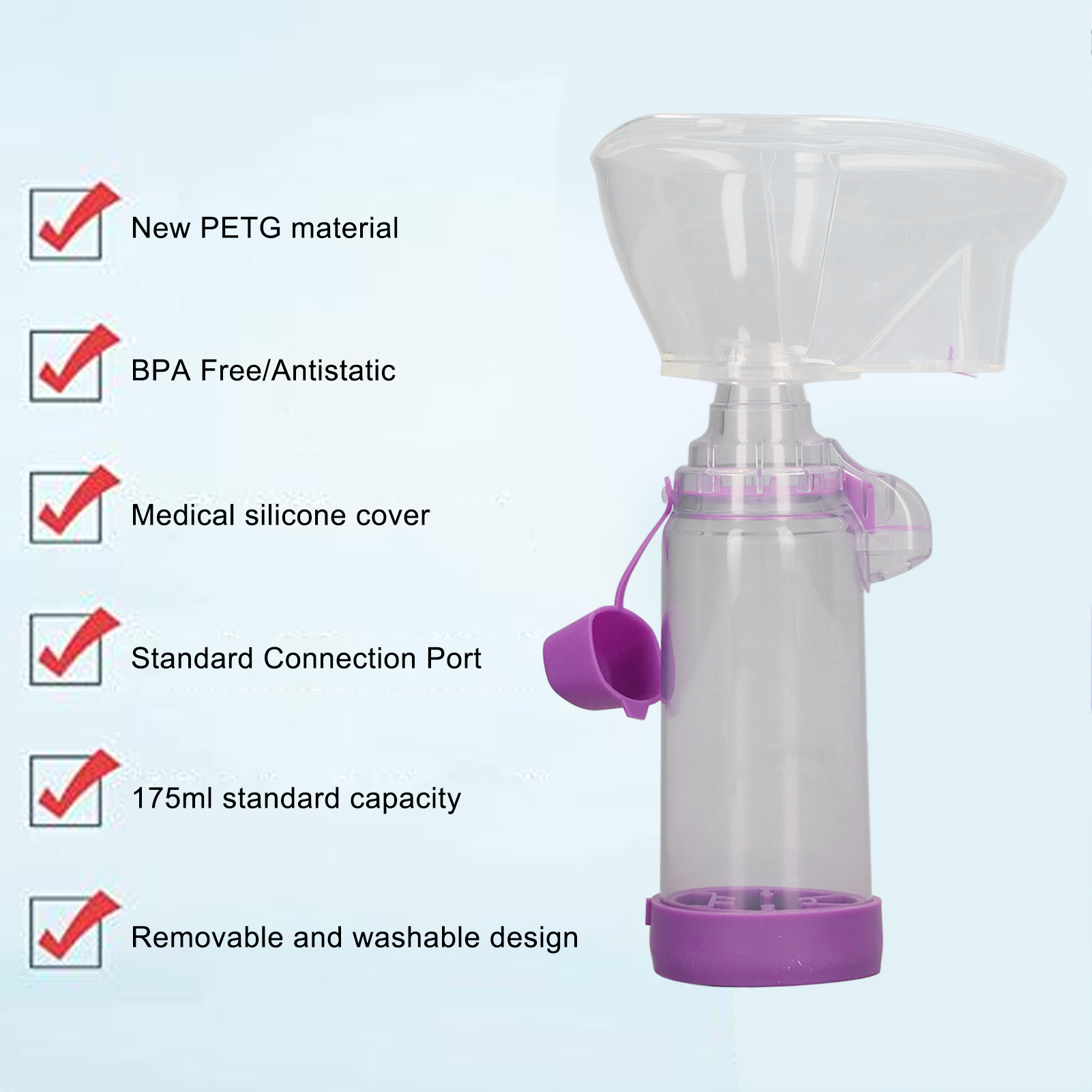 1、For Medicine Absorb: Increase amount of medicine absorbed by lungs by using inhaler spacer. Sealed around nose and mouth insuring no medication is wasted. 2、Disassembled And Cleaned: Removable for adapting to multiple brands in the market. Also for easy to clean, simply soak in warm and soapy water, then rinse. 3、Clear Chamber: With 175ml capacity, and anti static design, for holding enough medication allowing you to inhale many times, meeting daily need. 4、Portable Size: Inhaler spacers are compact and small, convenient for easy to carry, small enough to put in bag. Can use at home, at work, or while out. 5、Food Grade Silicone: Inhaler spacer is made of food grade silicone, which is sealed after production to ensure safety and cleanliness, will not damage health.