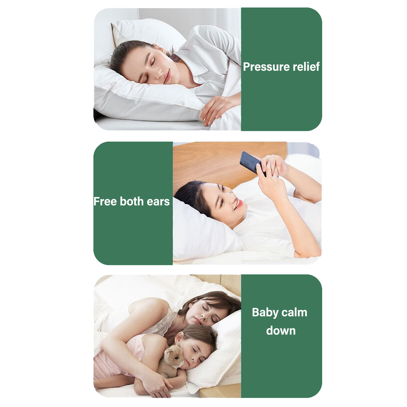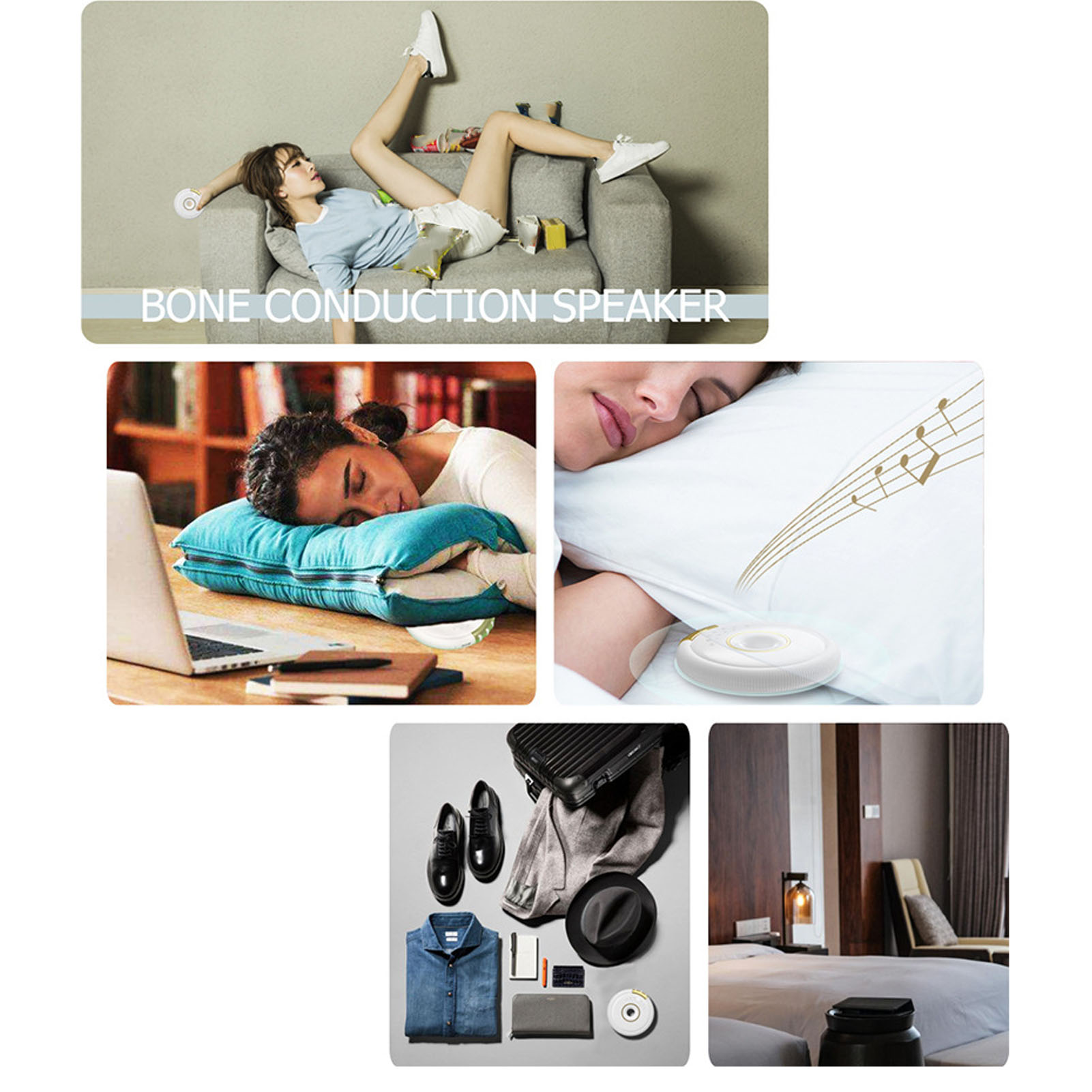 1、Bone Conduction: Using bone conduction technology, music is transmitted to the head through the pillow, enjoy clear sound quality while maintaining a comfortable sleeping. 2、Wireless Connection: Supports Bluetooth connection, making it easy for you to connect your phone or other devices for music playback without the hassle of cables. 3、Fast Sleep Aid: Pillow speaker built in relaxing music to help you fall asleep quickly, relieve stress, improve sleep quality, and let you wake up energized every day. 4、Versatile Usage: Bluetooth pillow speaker suitable for sleep, relaxation, travel, and other scenarios, allowing you to enjoy music and quiet moments anytime, anywhere. 5、Excellent Gift: Bone conduction pillow speaker is a special and practical gift to your family, friends or anyone who needs to improve their sleep quality.