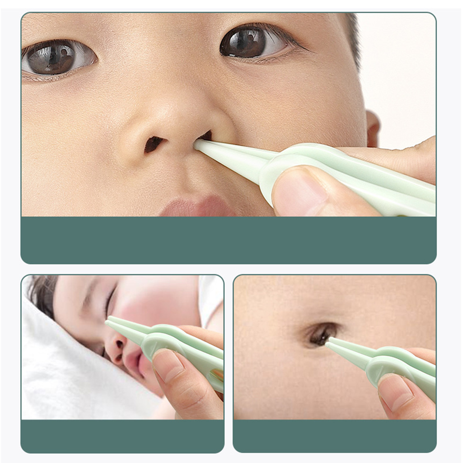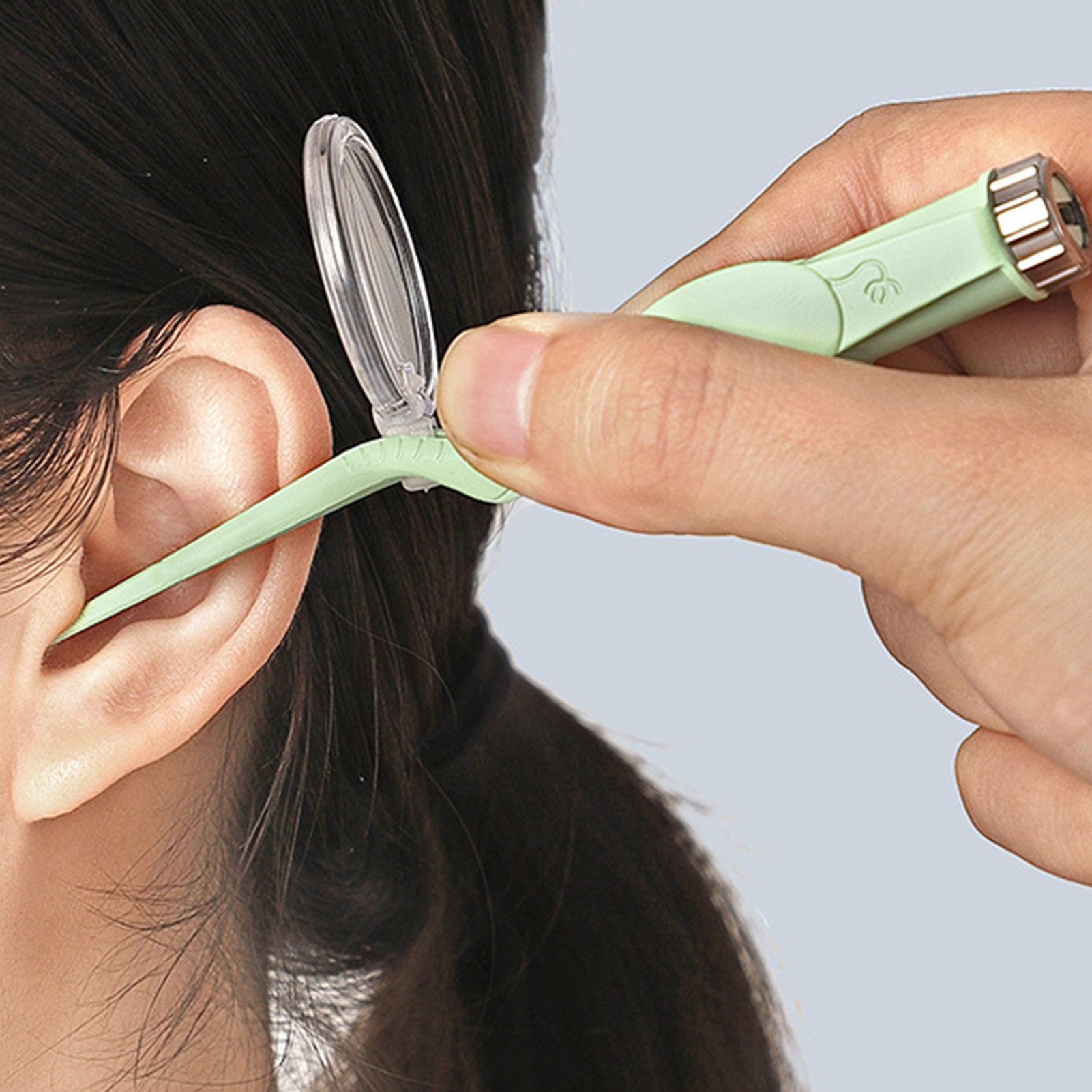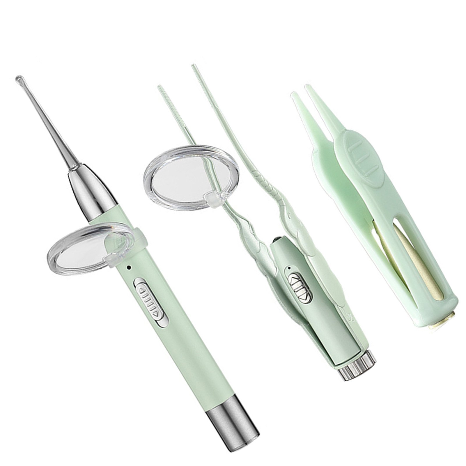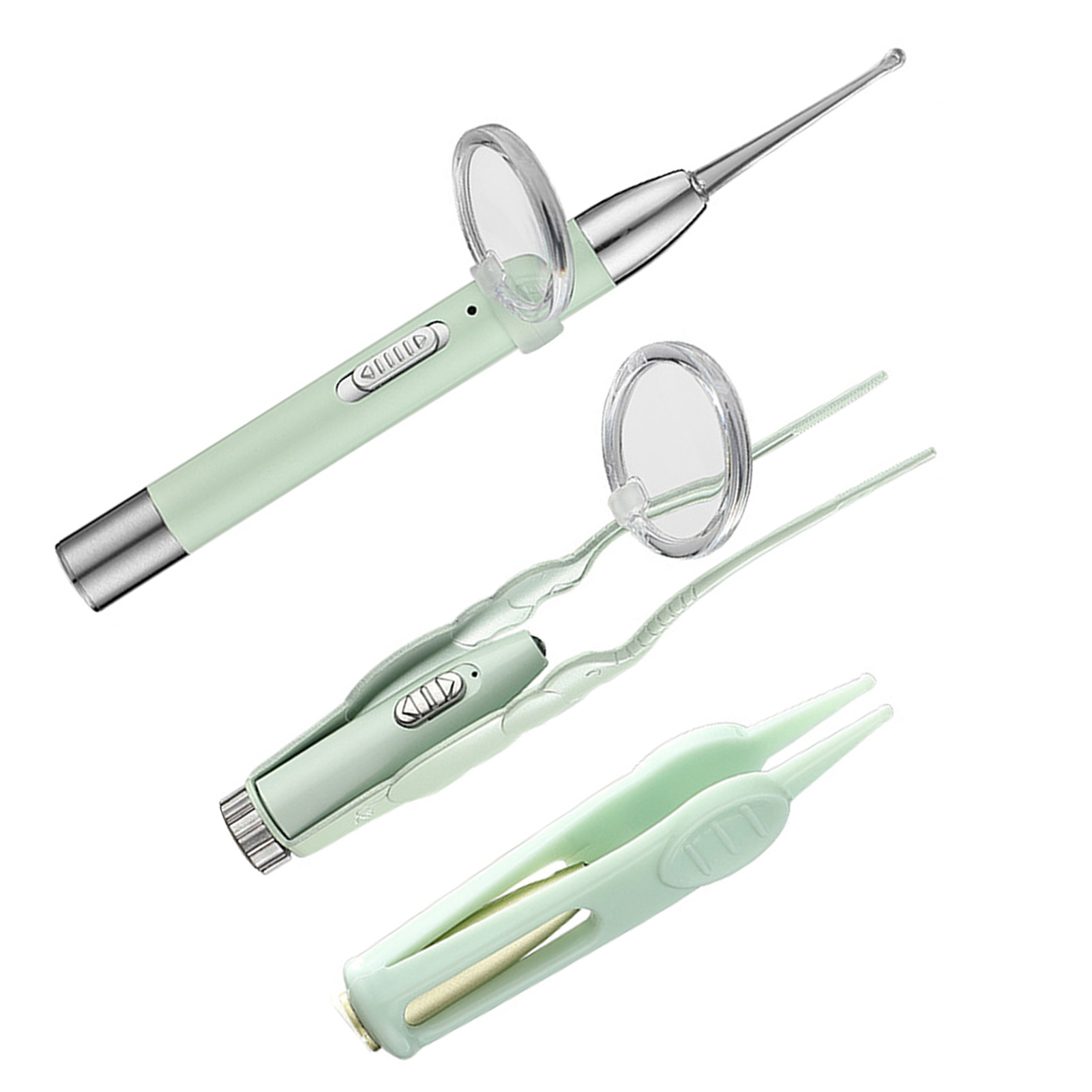 LED Lighted Earpick Set Ear Wax Removal Noseclip Forceps Bright Lighting Ear Care Kit for Children Light Green