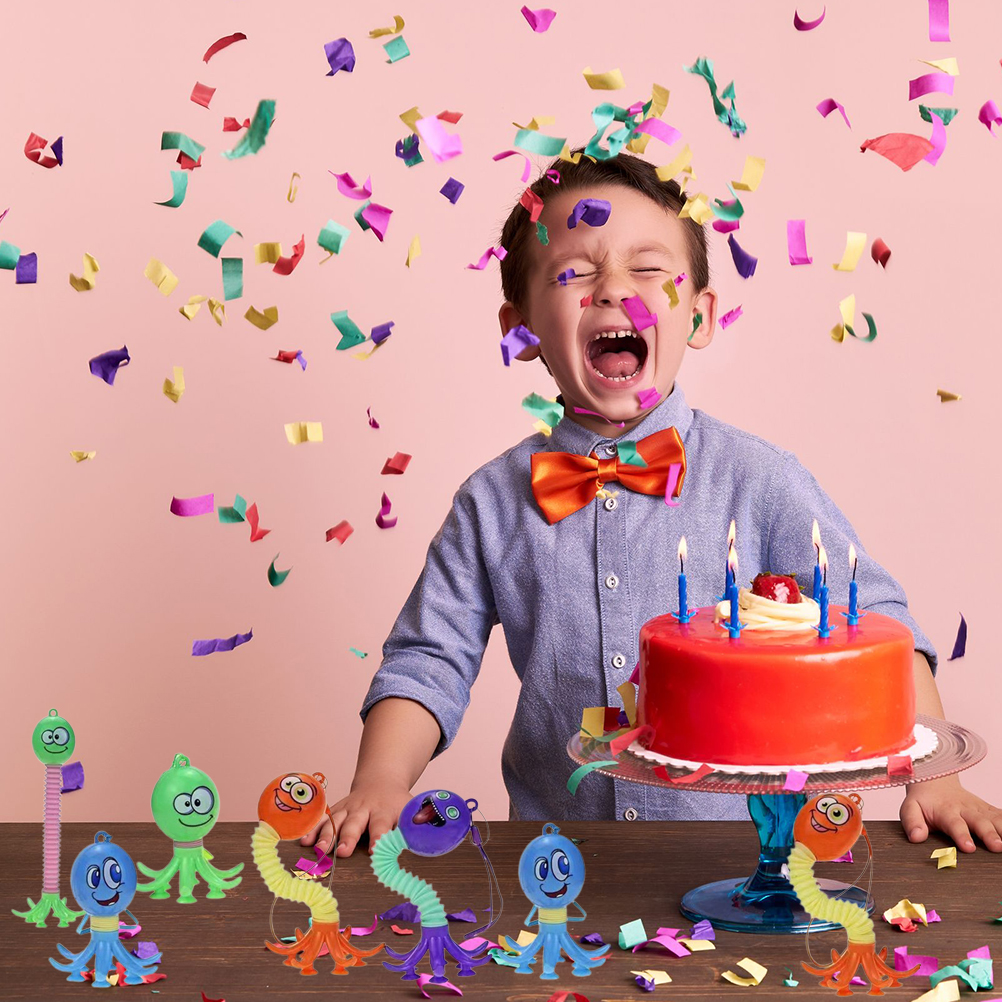 1、1. Cute design: cute octopus models, classic cartoon animal images. The child can use it to create as many shapes as he wants and it will improve the child's fine motor skills and imagination. 2、2. Sensory toys: A telescopic hose is added in the middle, and the octopus head can be rotated. You can DIY stretch, twist, and change the shape of your octopus at will. This will help calm the sensory child and is also great for children with autism, adults with anxiety, and children with ADHD or ADHD, and is a great stress reliever toy. 3、3. Fun toys for children: The body of this spring octopus is made of popular tubes, which can be retracted and deformed freely. The head and tail of the octopus can be rotated. Now, come and design your own octopus. 4、4. Creative toys: Fun and practical sensory toys that can change various shapes, allowing your little one to freely explore designs, stimulate your child's creative thinking, and help our kids have a little extra fun. 5、5. High-quality material: The spring octopus is made of high-quality ABS, which meets American safety standards, the tube is durable, thick, and elastic, and can withstand a lot of indecision, bounce, stretching, pulling, and bending, you don't have to worry about the toy breaking. 6、6. A great gift: These octopuses are a great deal and the packaging is very nice. Great for Kids Birthday Party Gifts, School Class Rewards, Treasure Box Prizes, Carnival Prizes, Piñata Fillers, Christmas Stocking Gifts, Christmas Gifts, Party Return Gifts, and Children's Day Gifts.