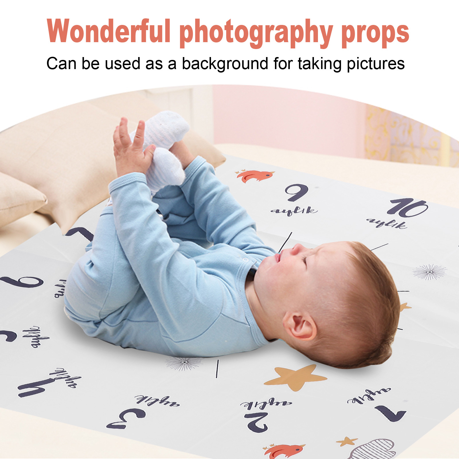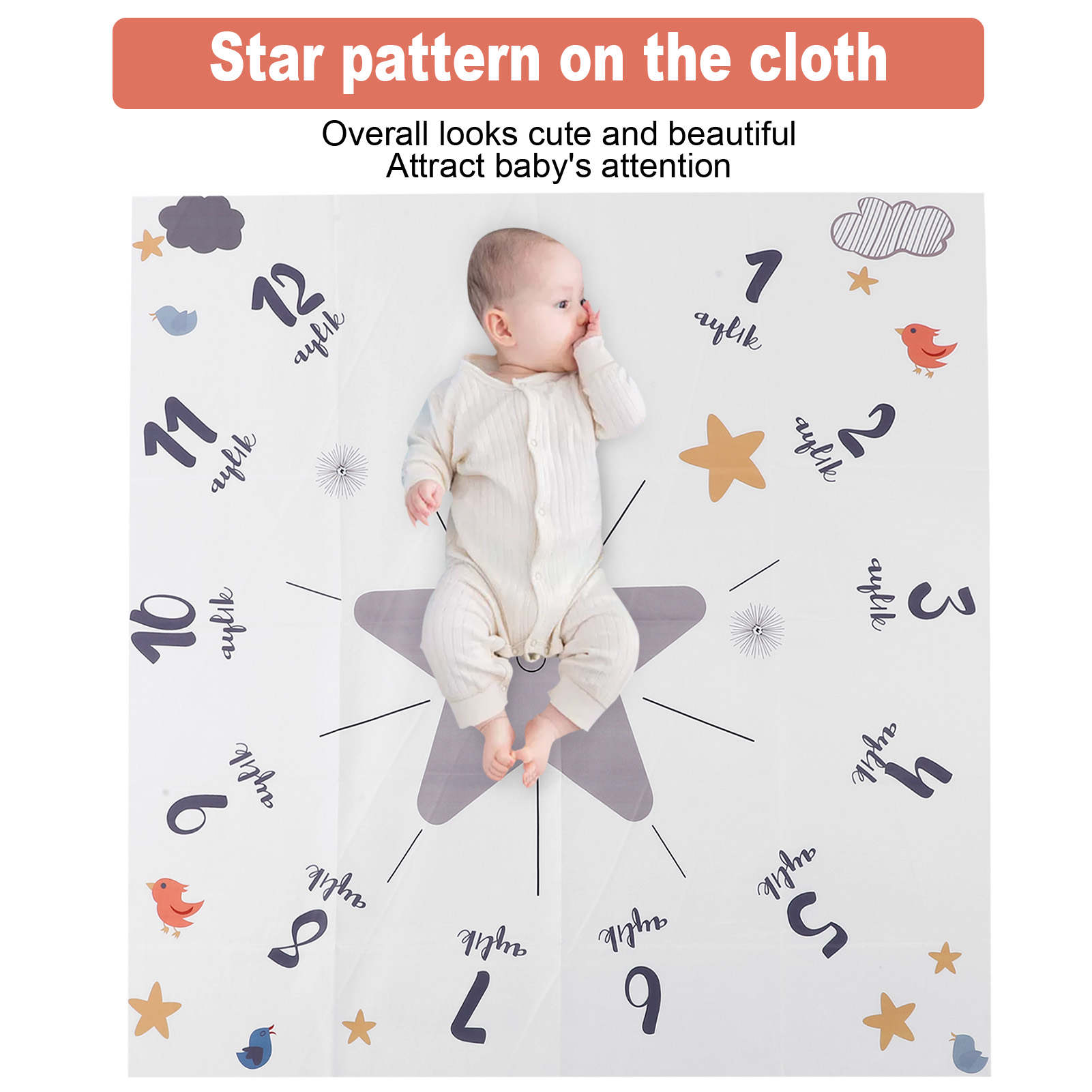 1、Made of high quality polyester cotton, soft and skin‑friendly, comfortable to use, stable and durable. 2、Wonderful photography props, can be used as a background for taking pictures, convenient and practical. 3、Star pattern on the cloth, bright color, overall looks cute and beautiful, attract baby's attention. 4、Foldable design, light weight and portable, easy to store and carry, suitable for travel use. 5、It can also be used as baby game mat, easy to clean and reusable, important accessory.