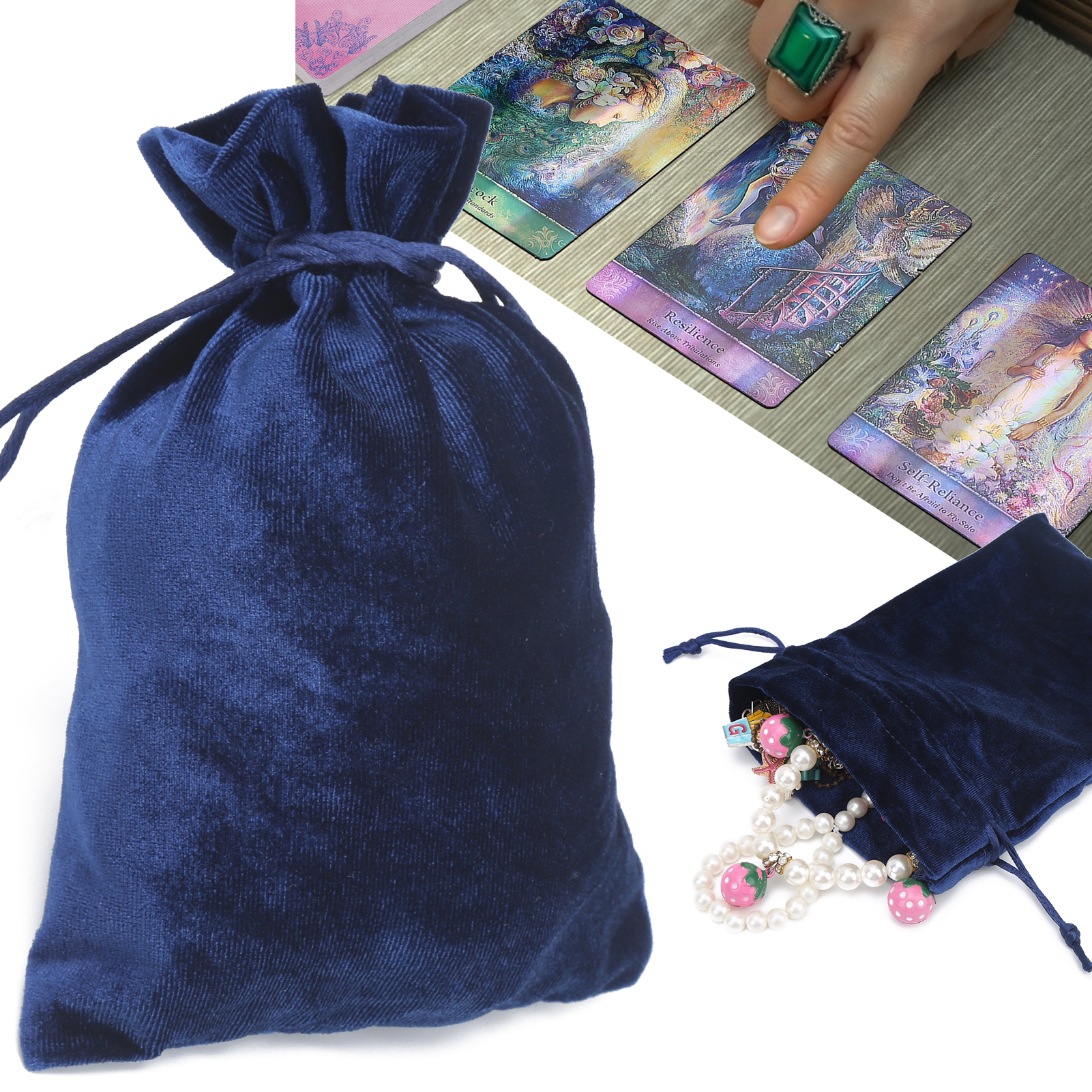 Velvet Tarot Bag Drawstring Storage Pouch Bag for Playing Cards Jewelry Coins AccessoryBlue